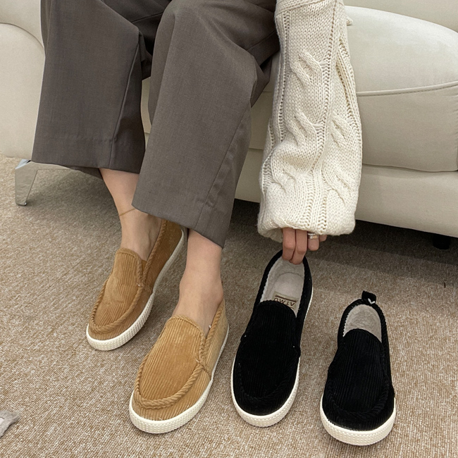 밤비 코듀로이 양털안감 겨울 밴딩 슬립온