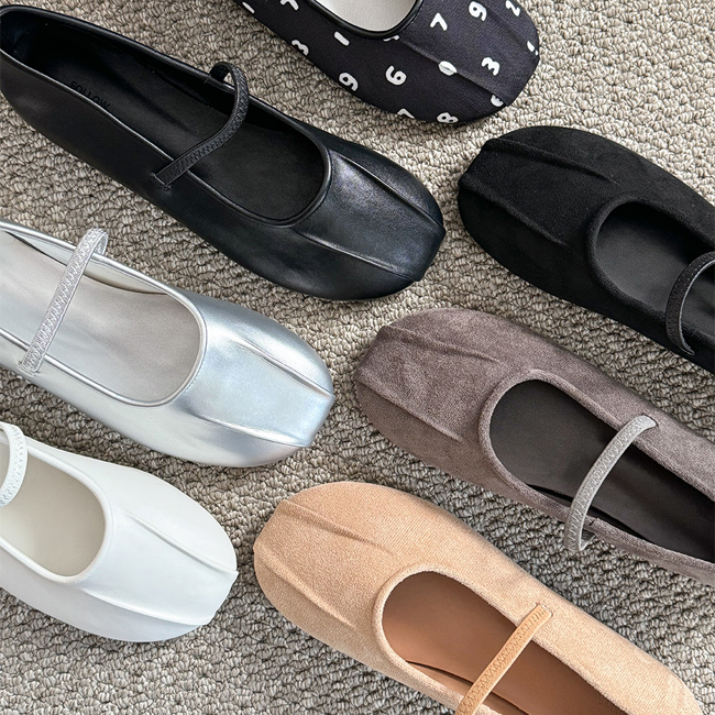 셀레나 라운드코 주름 밴딩 플랫슈즈
