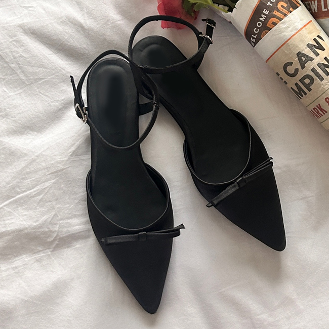 크랜 스틸레토 새틴 공단 리본 플랫슈즈