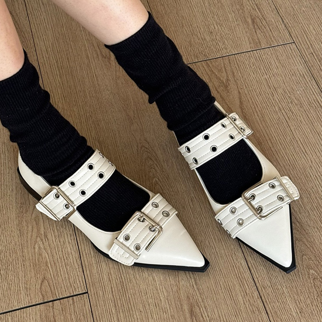 코이치 스틸레토 와이드 버클 벨트 메리제인 플랫슈즈