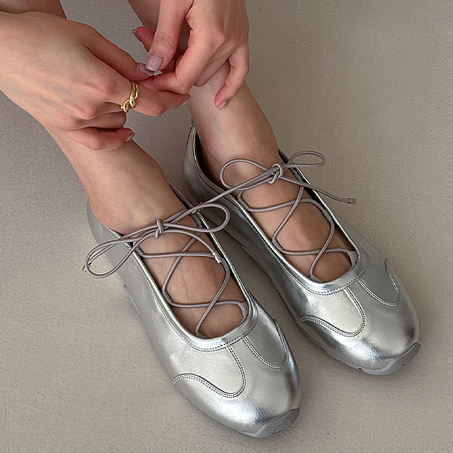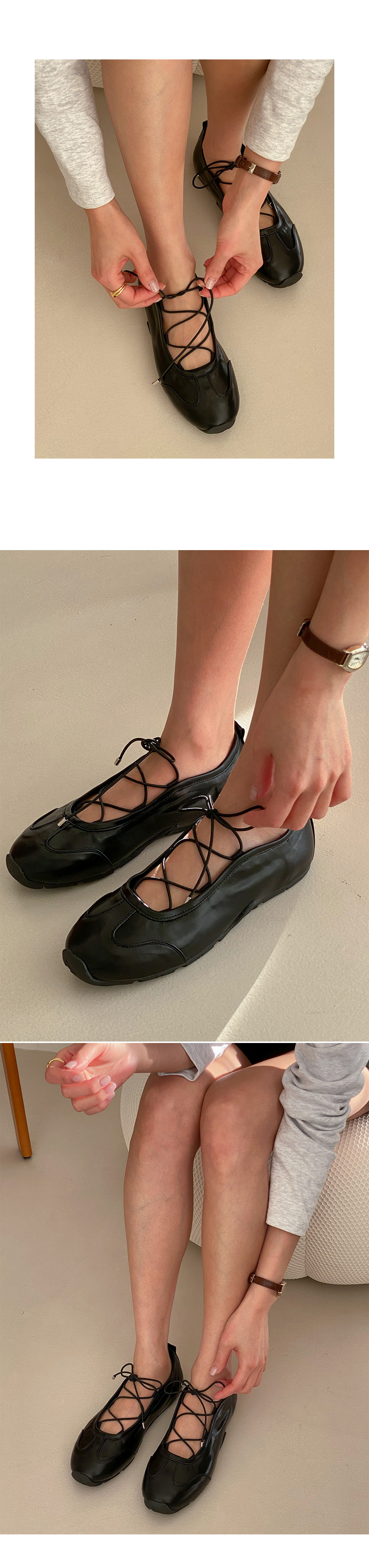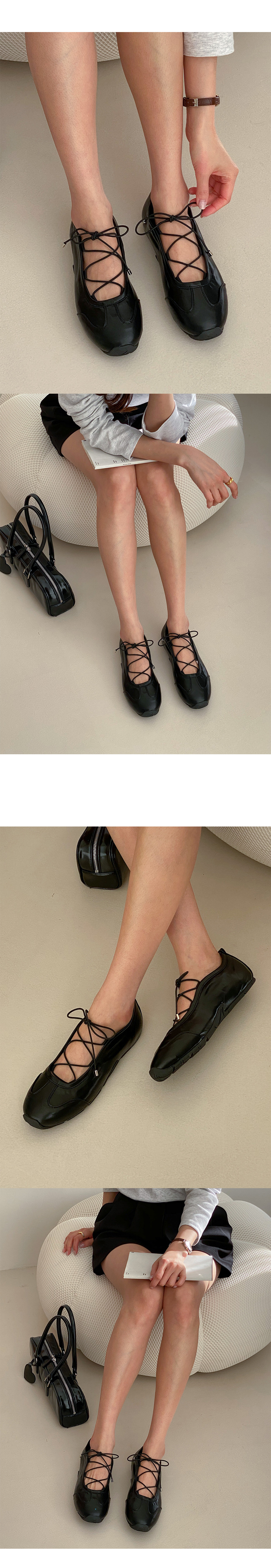 소프티 레이스업 스트랩 발등오픈 플랫 스니커즈