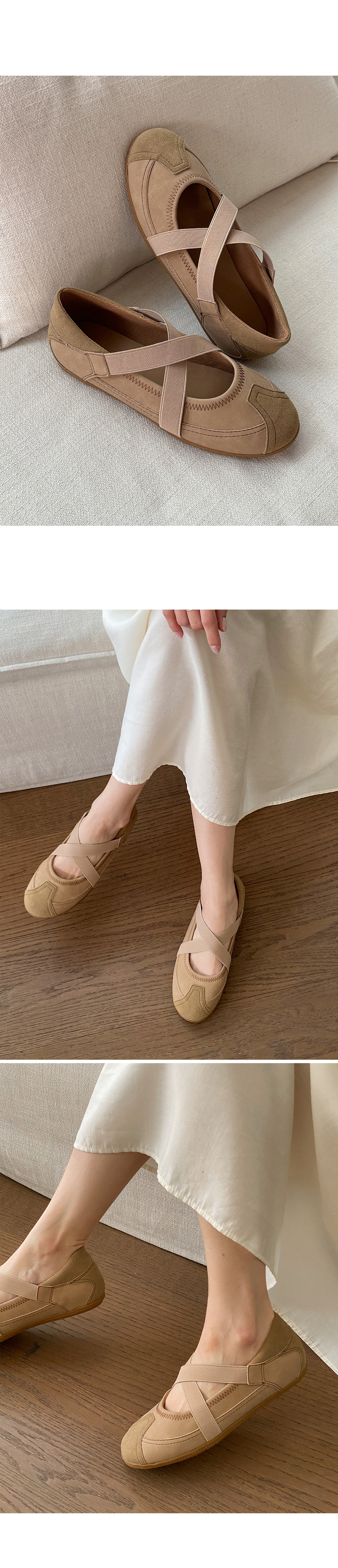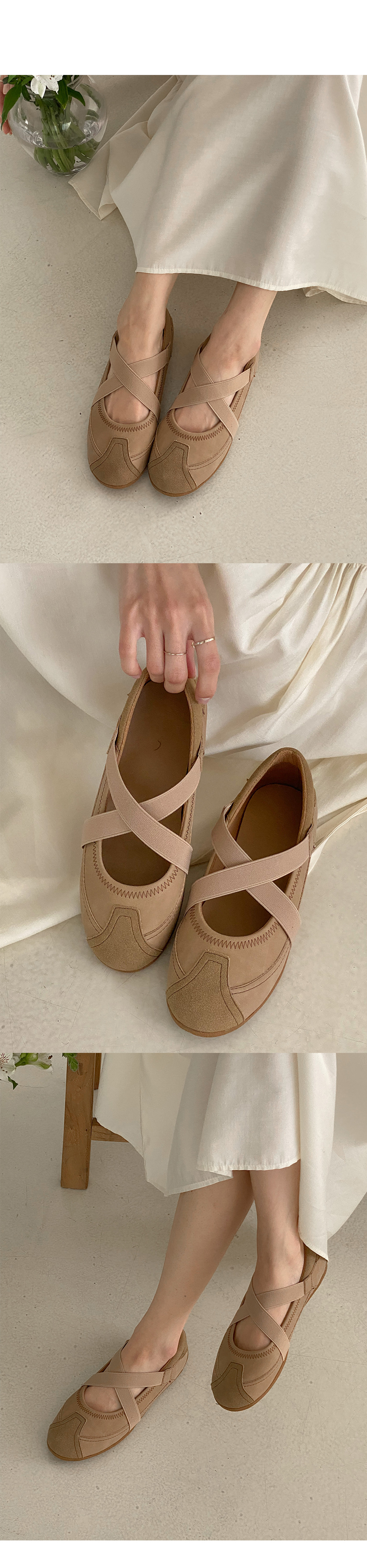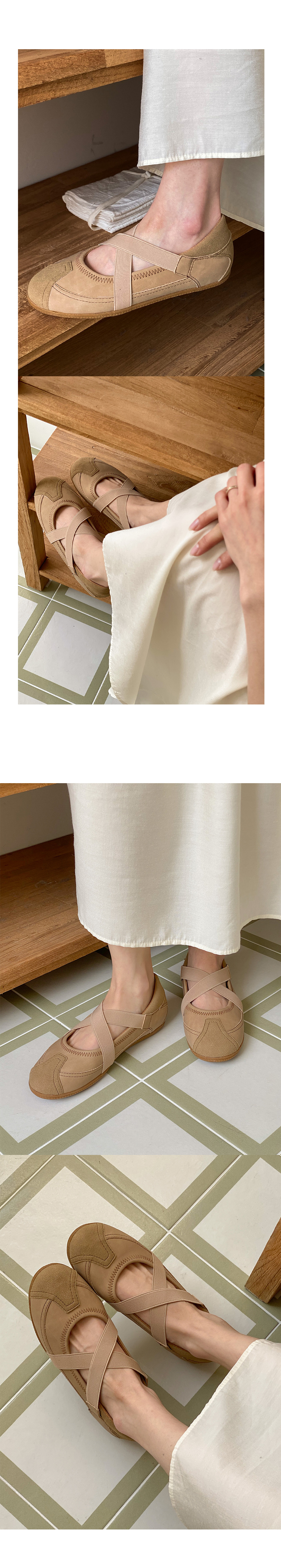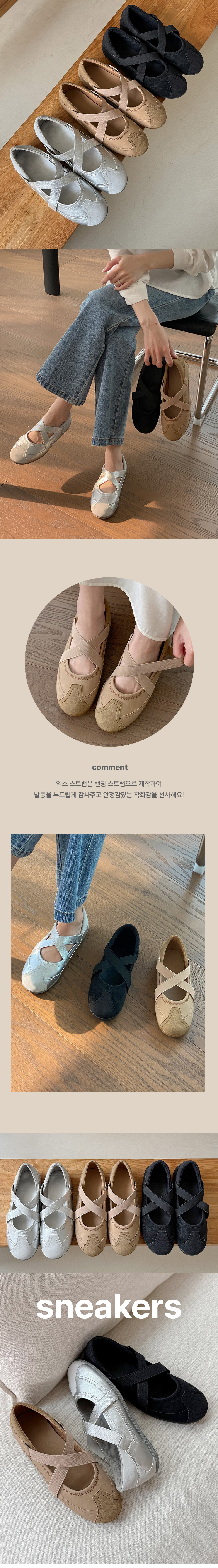 스위타 크로스 밴딩 스트랩 스웨이드 플랫 스니커즈