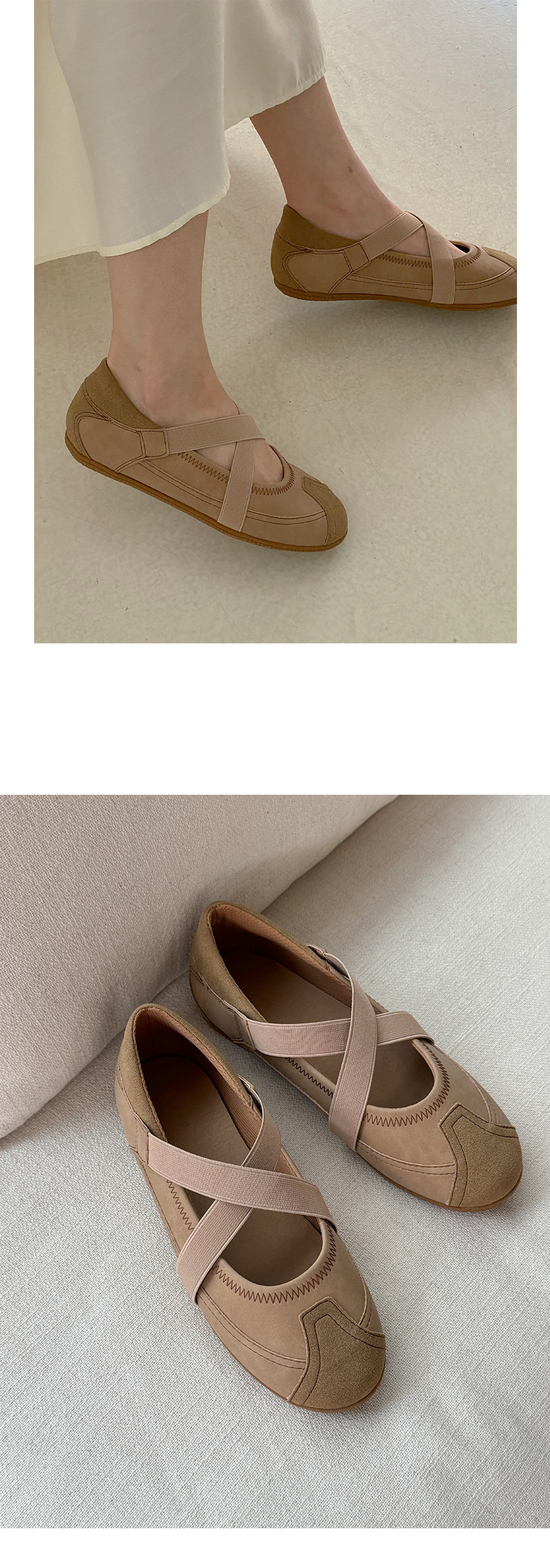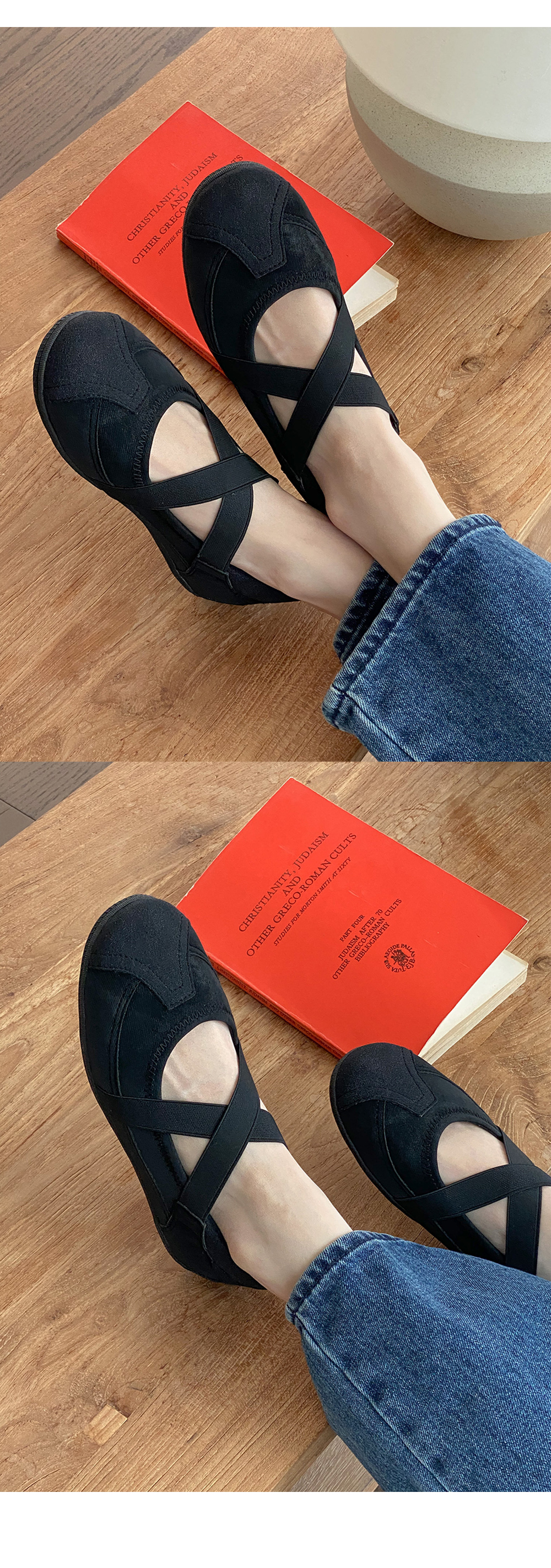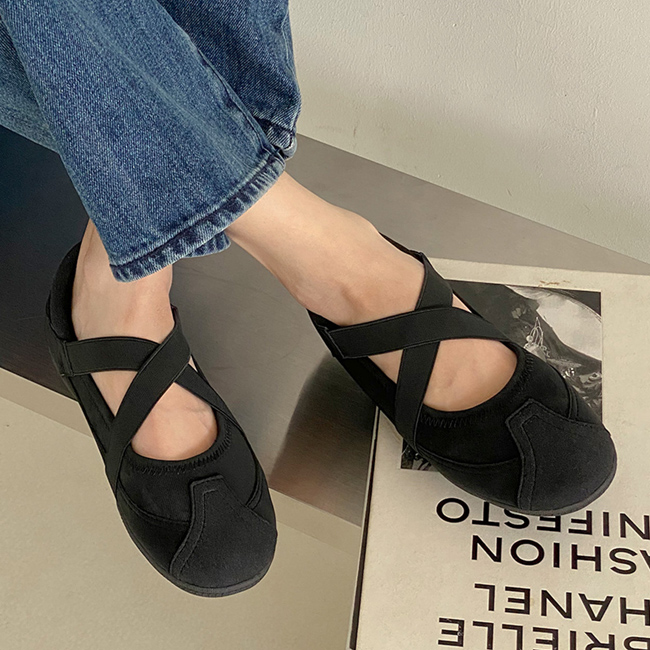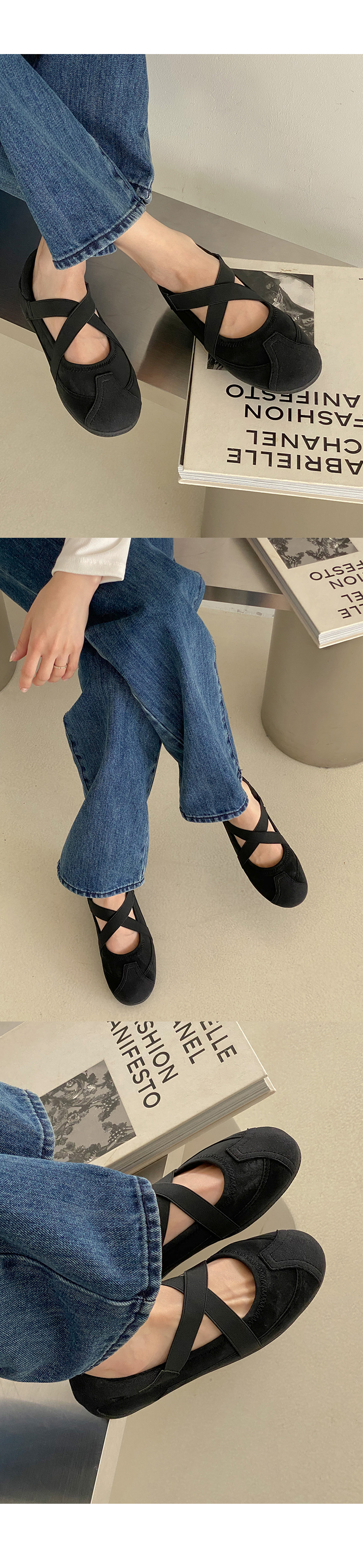 스위타 크로스 밴딩 스트랩 스웨이드 플랫 스니커즈