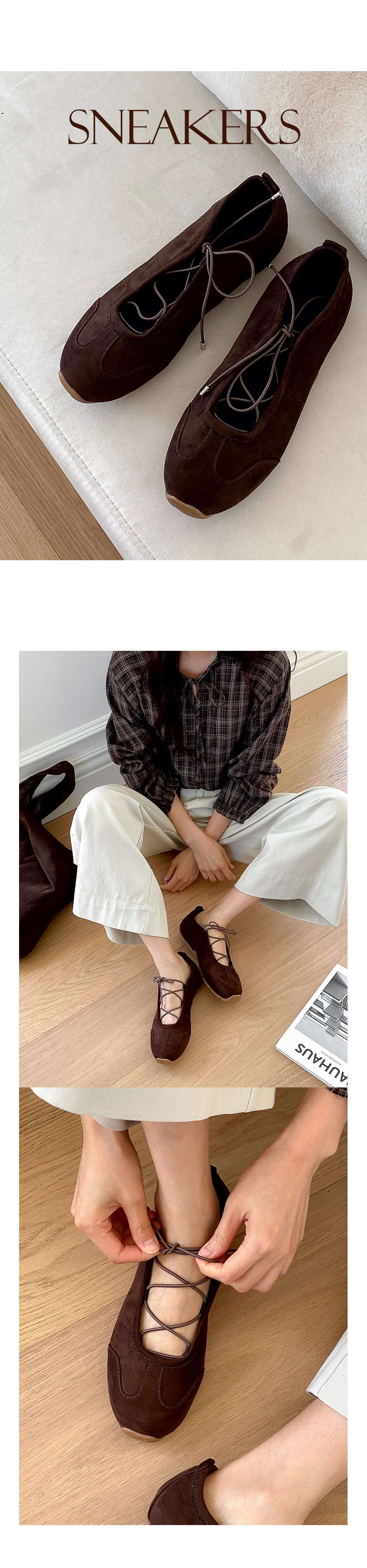 [발편한신발🩰] 제이프 스웨이드 발레코어 밴딩 스트랩 플랫 스니커즈