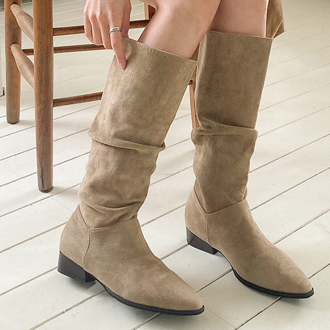 아르이 스웨이드 슬라우치 주름 셔링 롱부츠