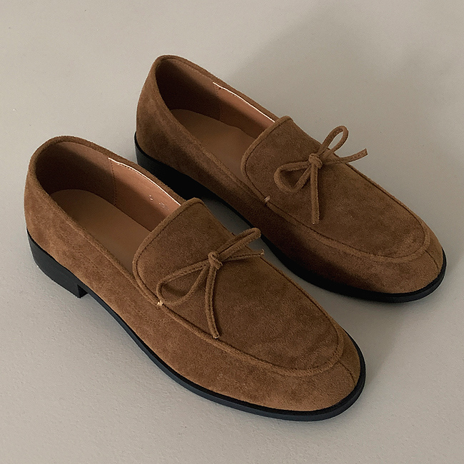 브렌토 모던 둥근코 리본 스웨이드 로퍼