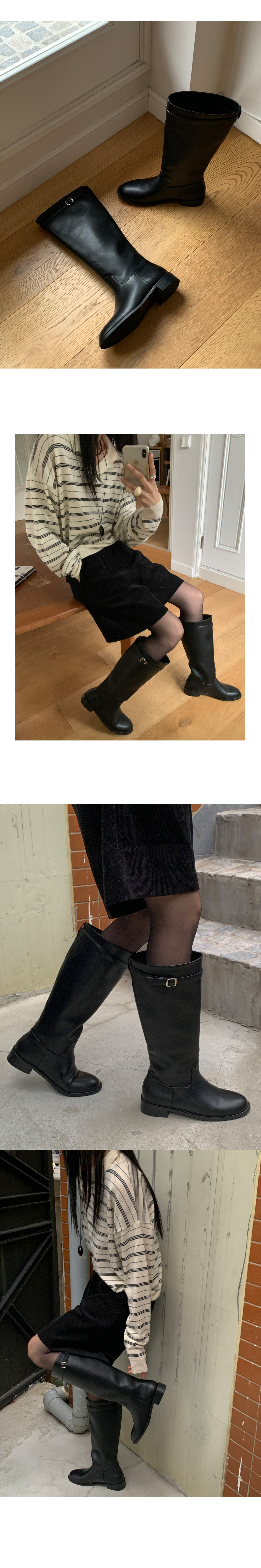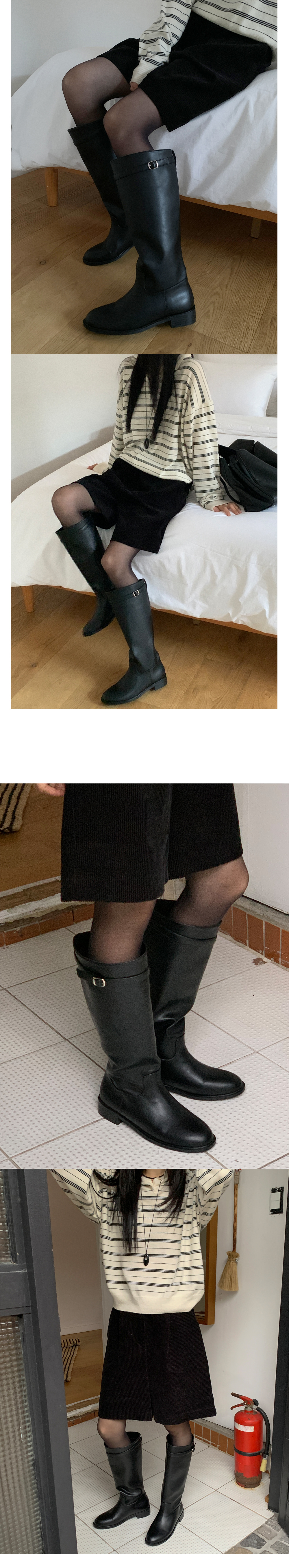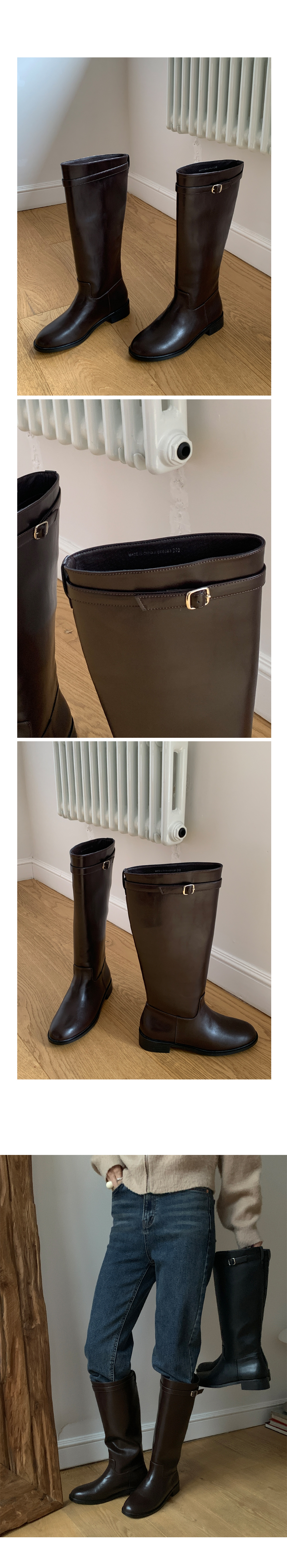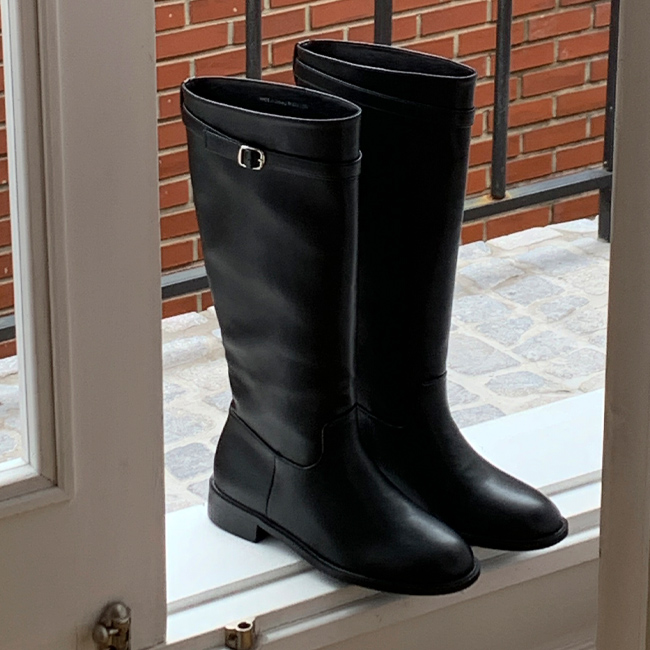 [230-255 벨트 탈착가능] 브레티 둥근코 통넓은 통굽 버클 롱부츠
