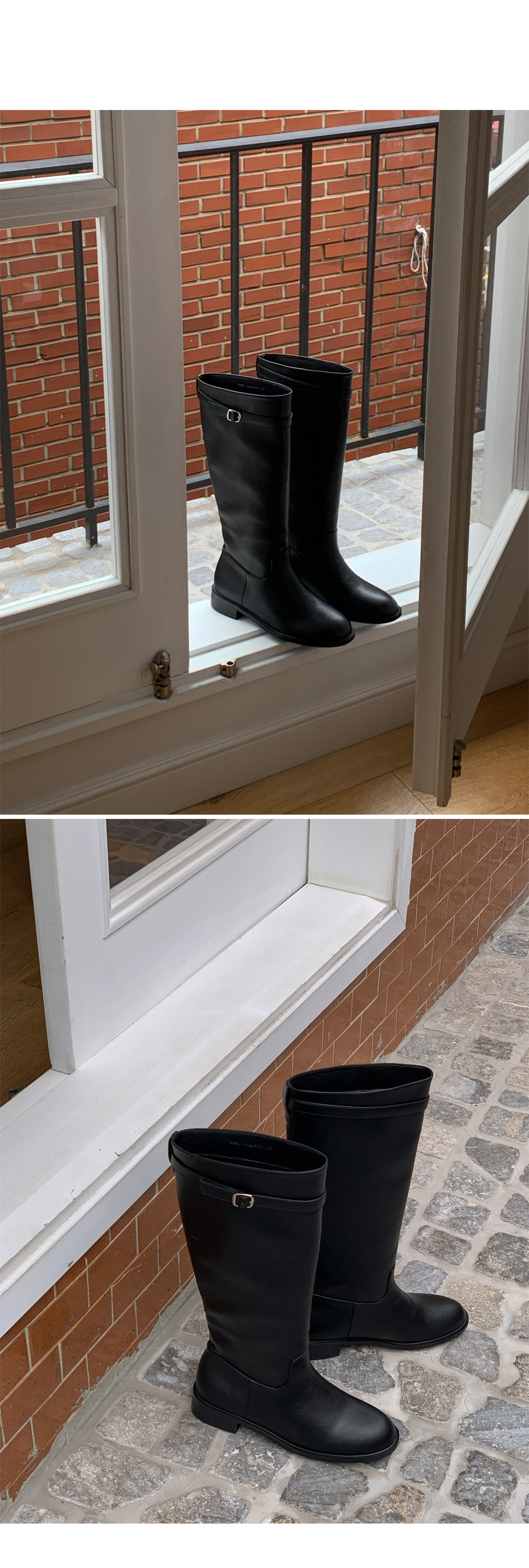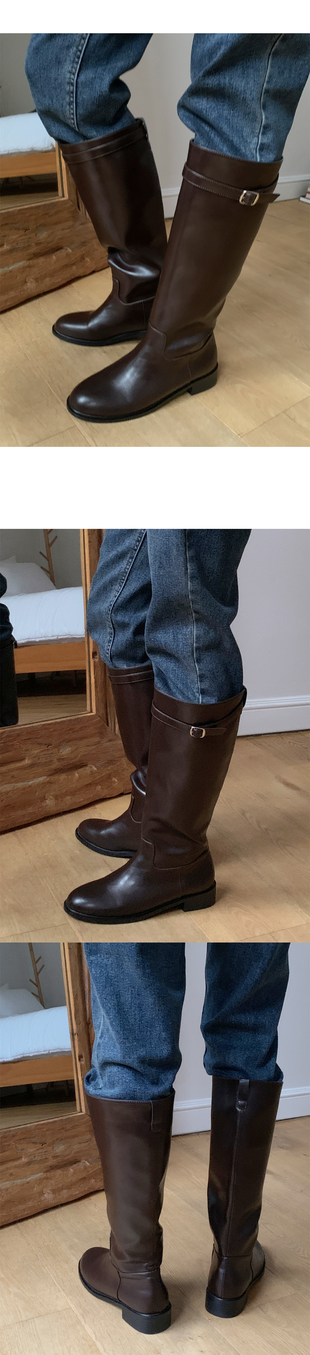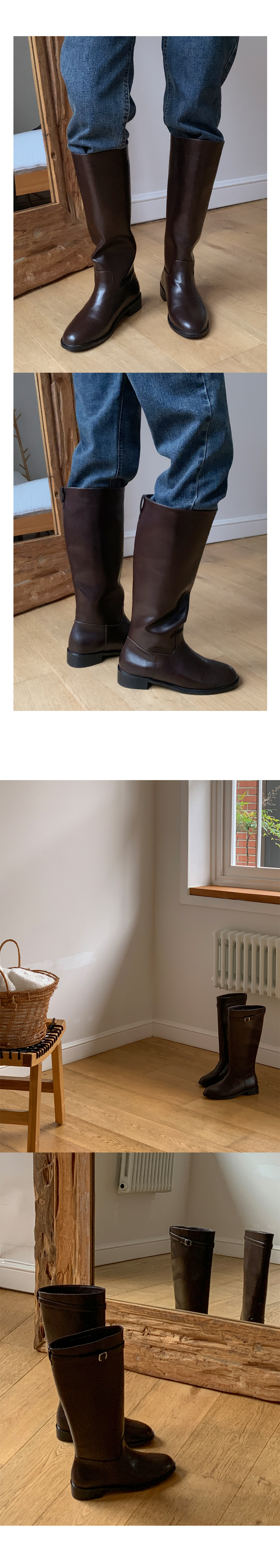 [230-255 벨트 탈착가능] 브레티 둥근코 통넓은 통굽 버클 롱부츠
