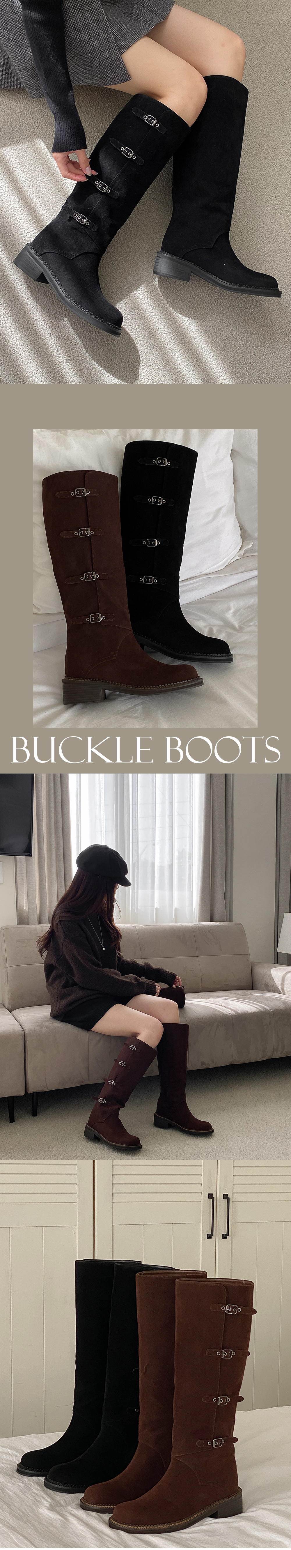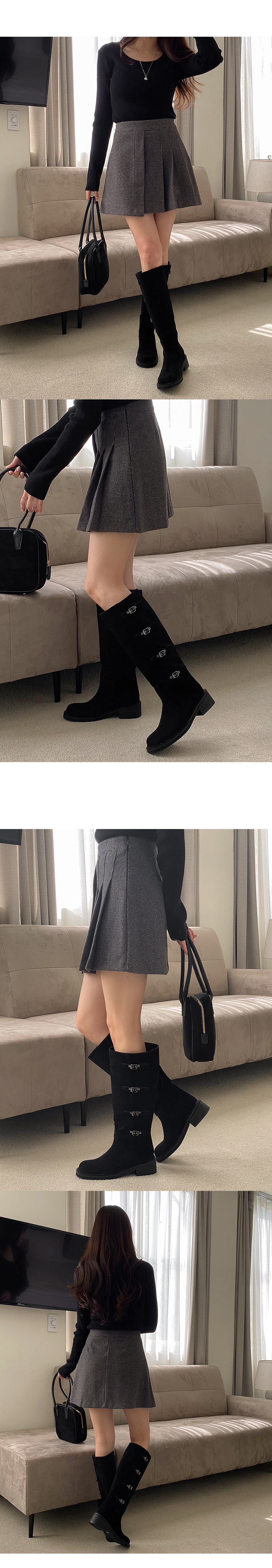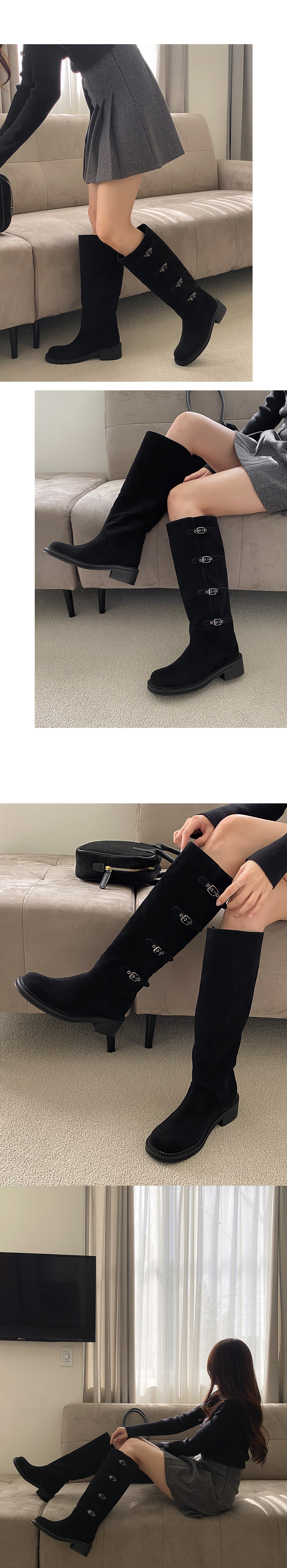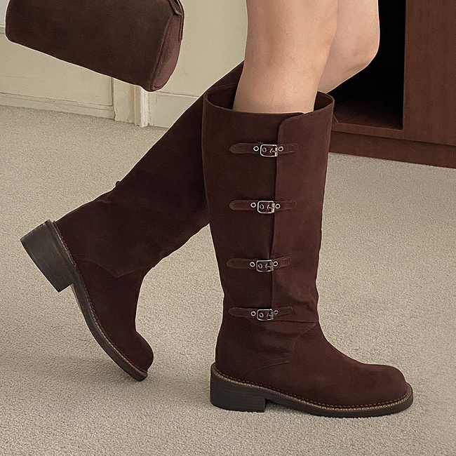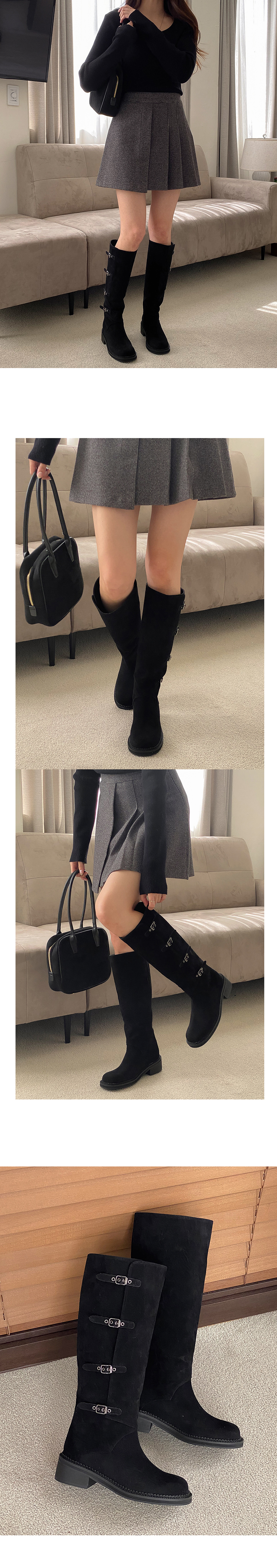 하이븐 고퀄리티 둥근코 벨트 버클 통굽 스웨이드 롱부츠