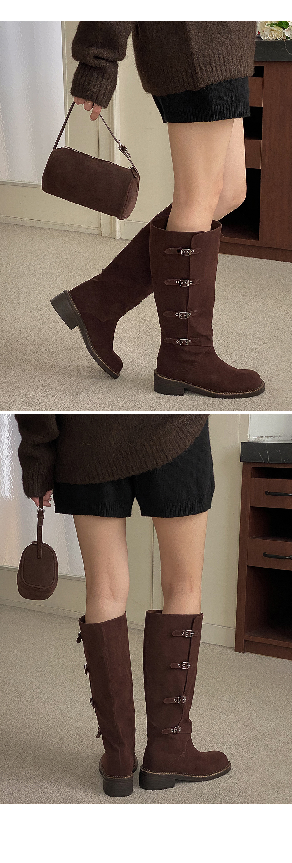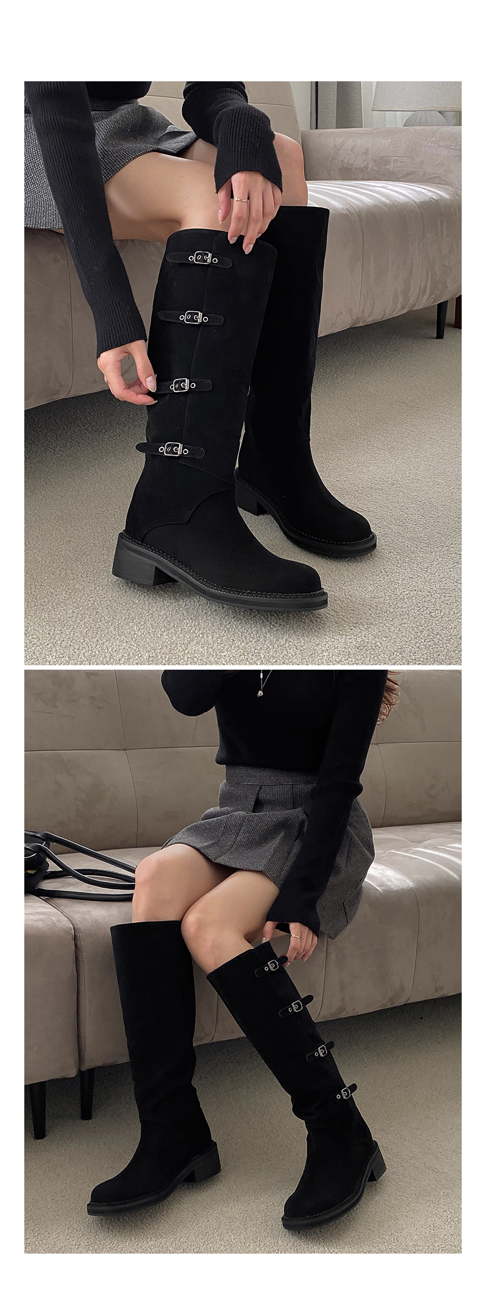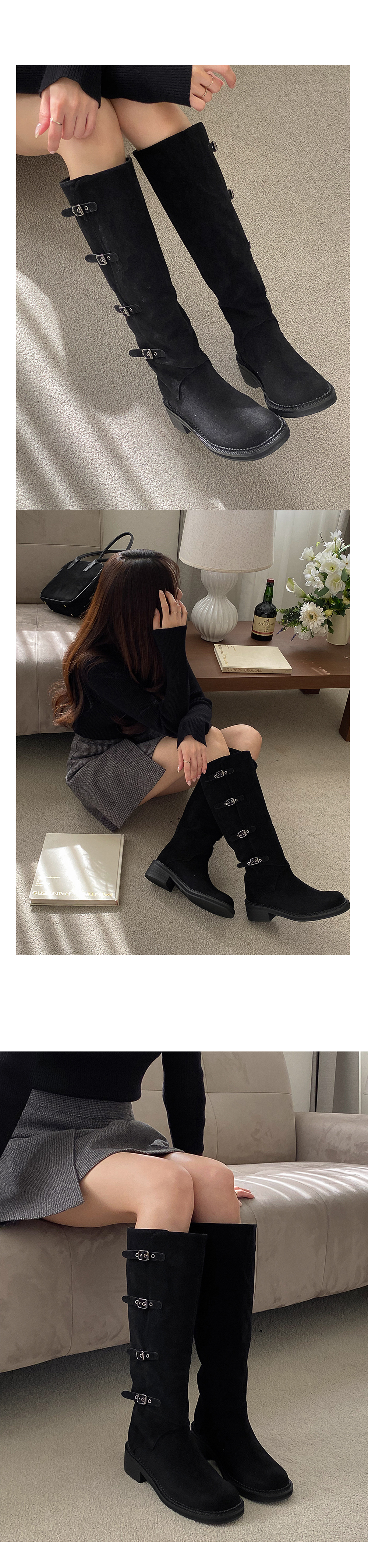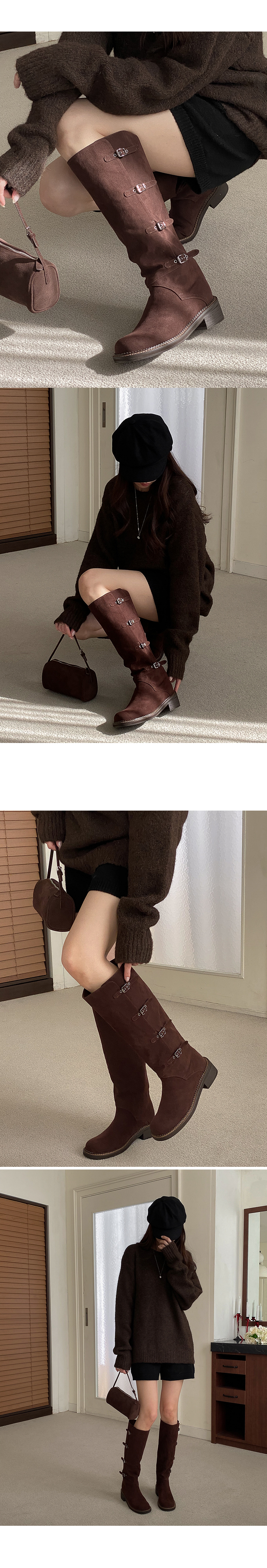 하이븐 고퀄리티 둥근코 벨트 버클 통굽 스웨이드 롱부츠