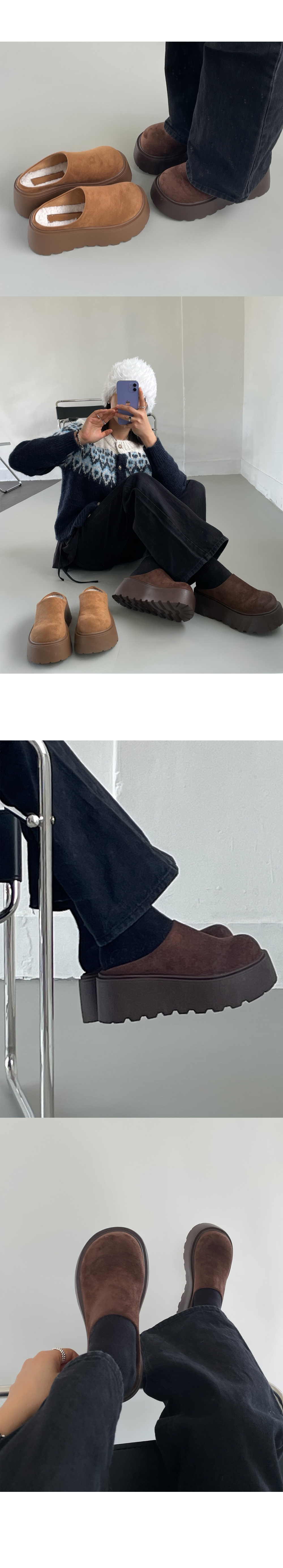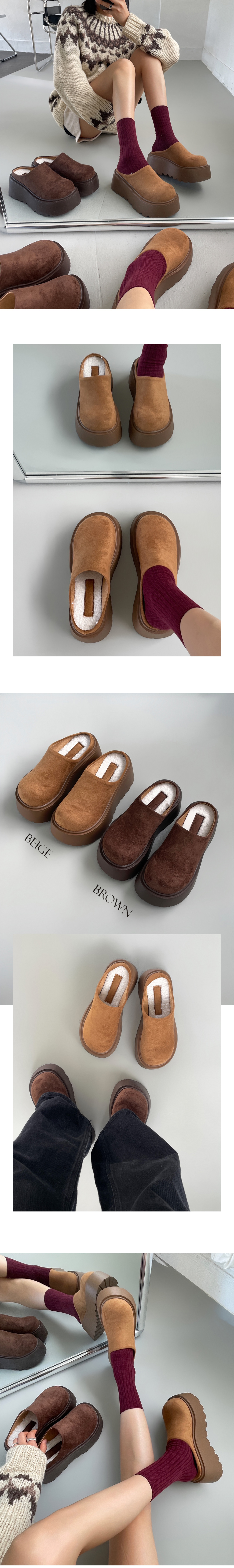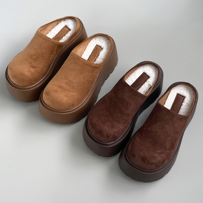 마엔 키높이 통굽 스웨이드 뽀글이 안감 털신 슬리퍼