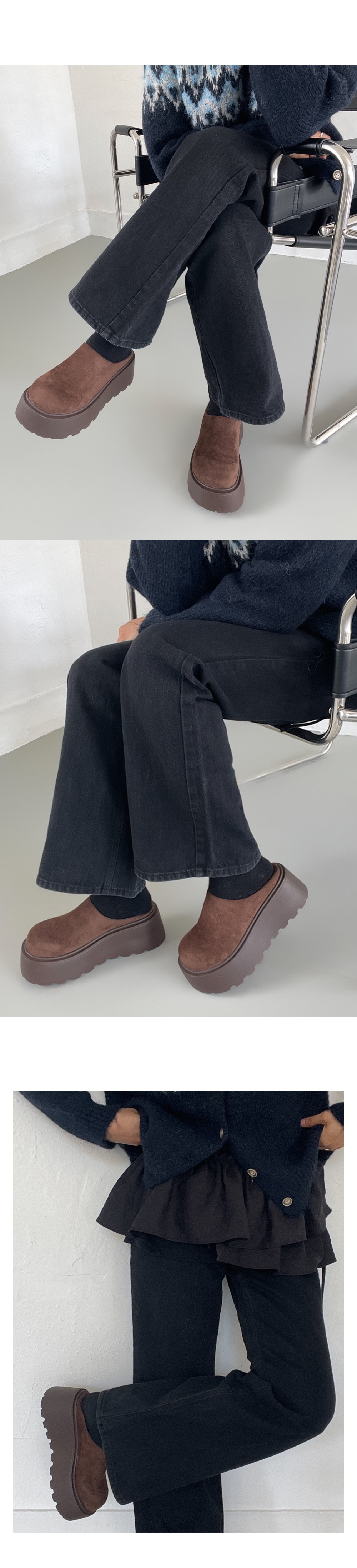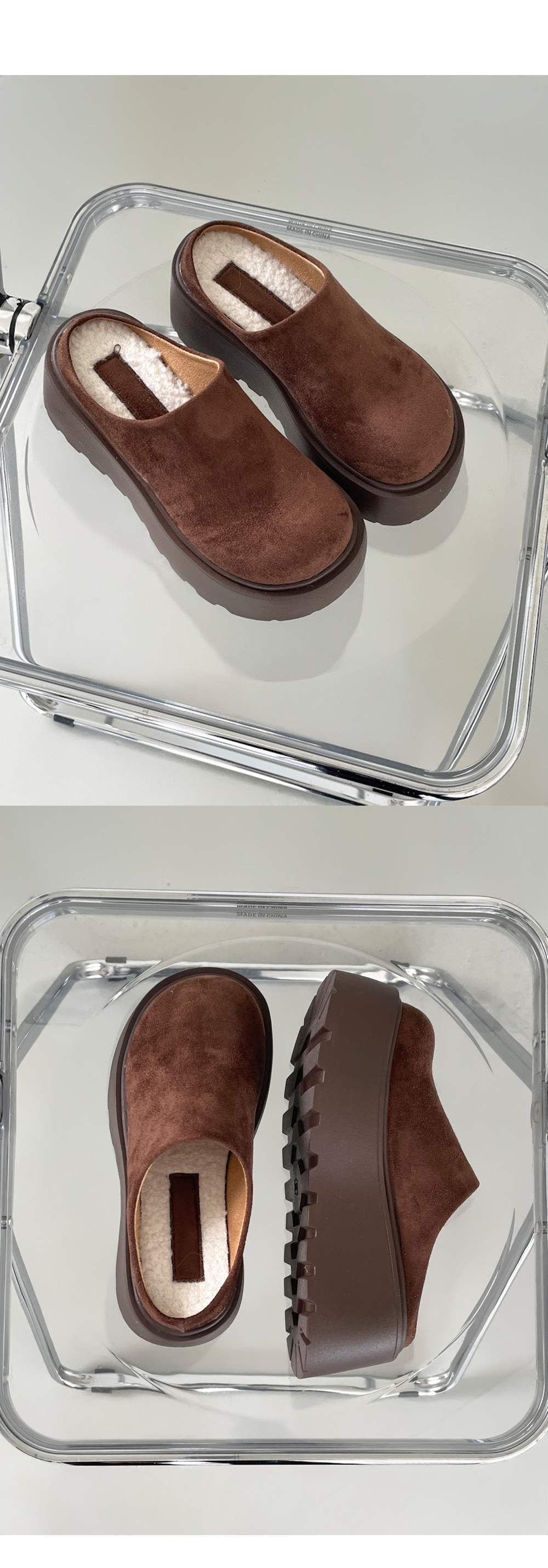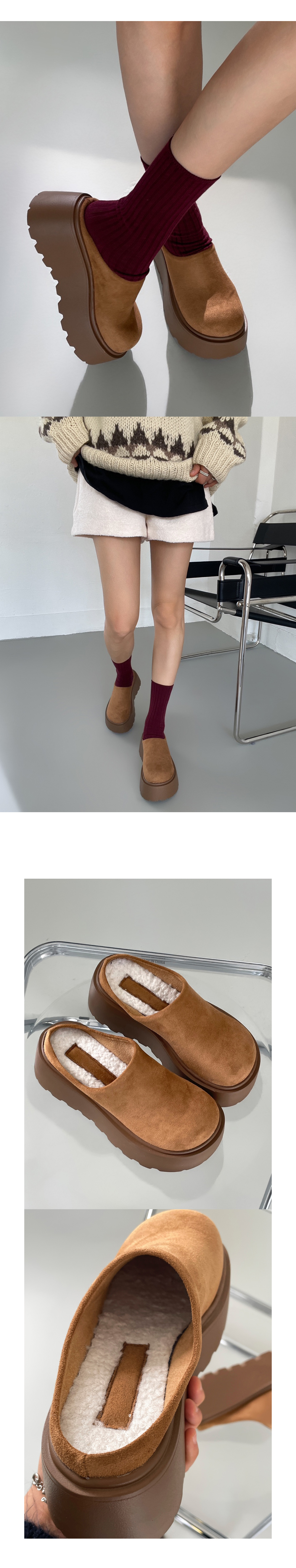 마엔 키높이 통굽 스웨이드 뽀글이 안감 털신 슬리퍼