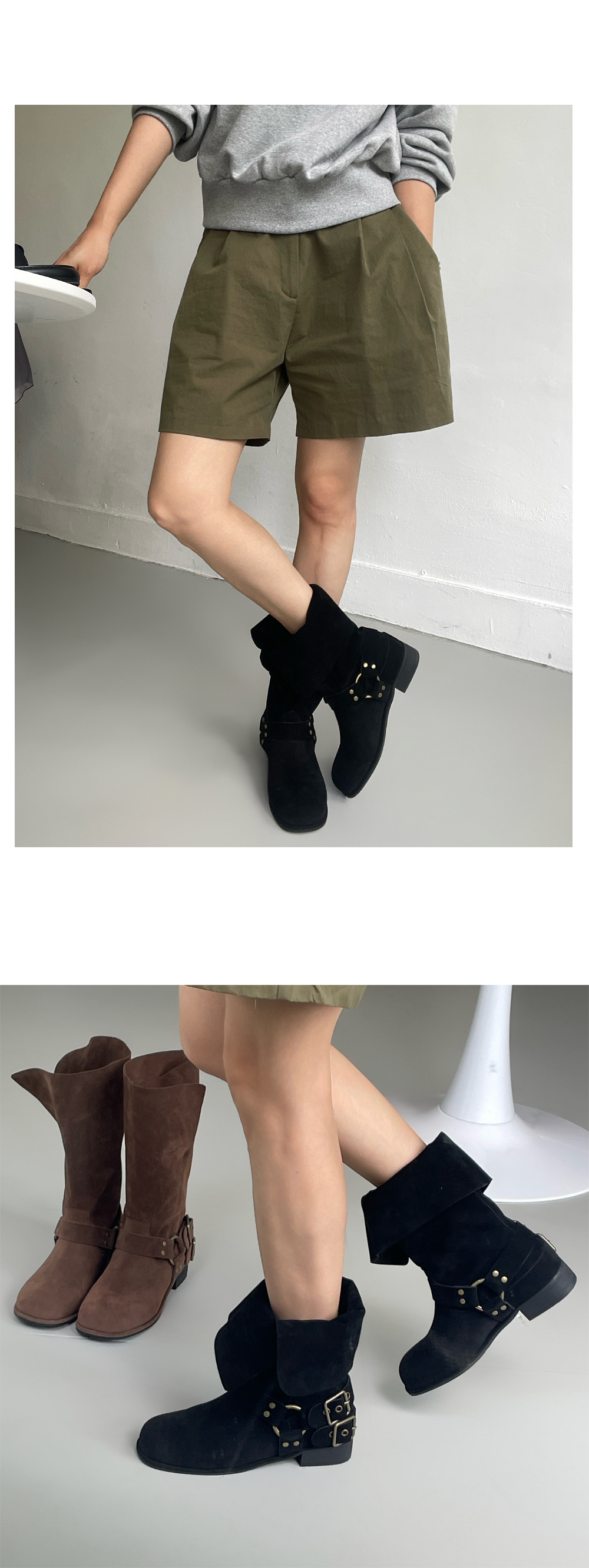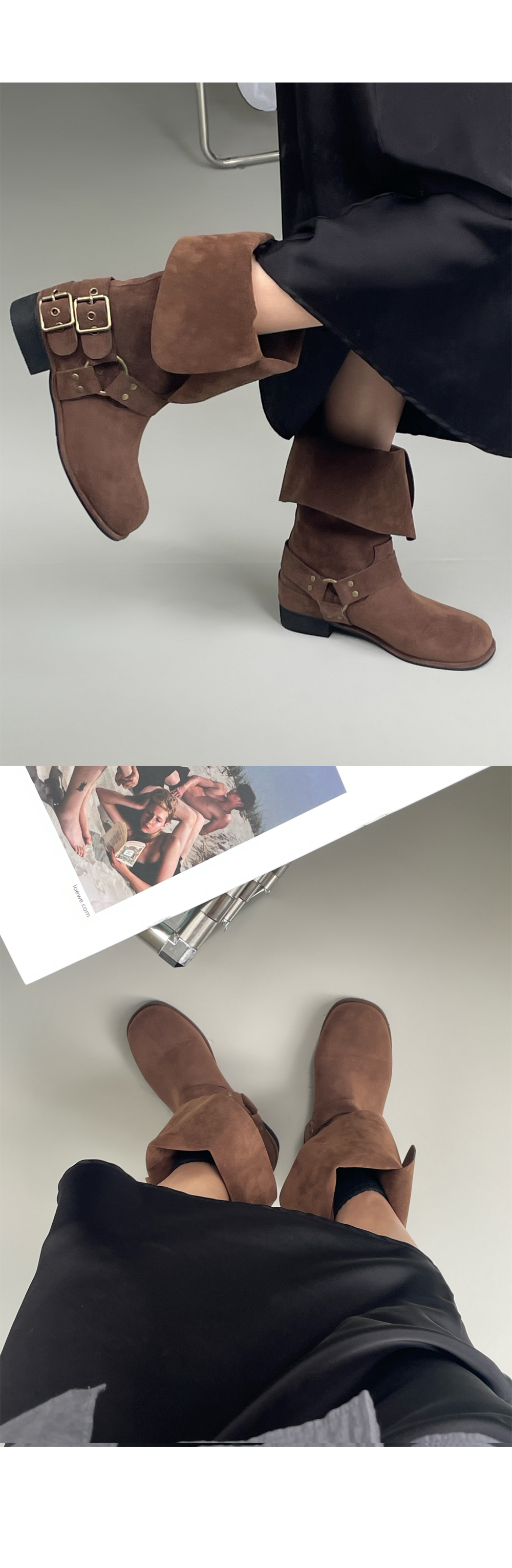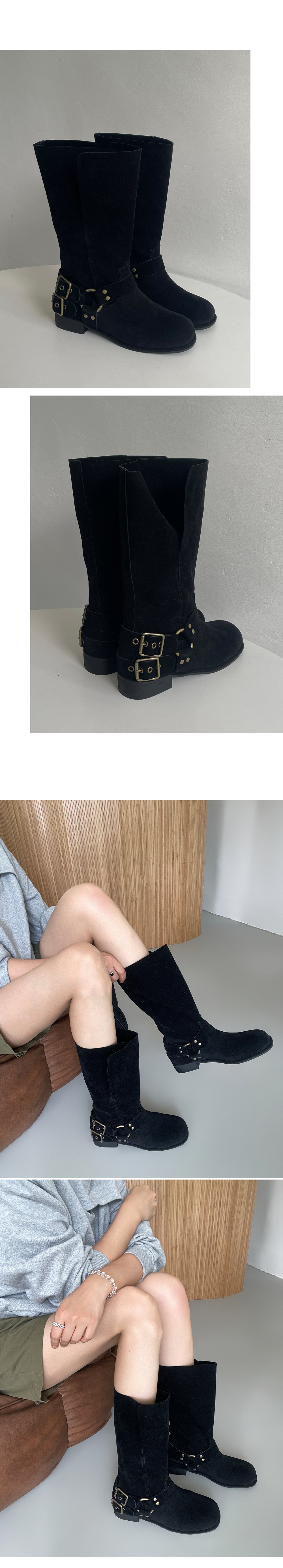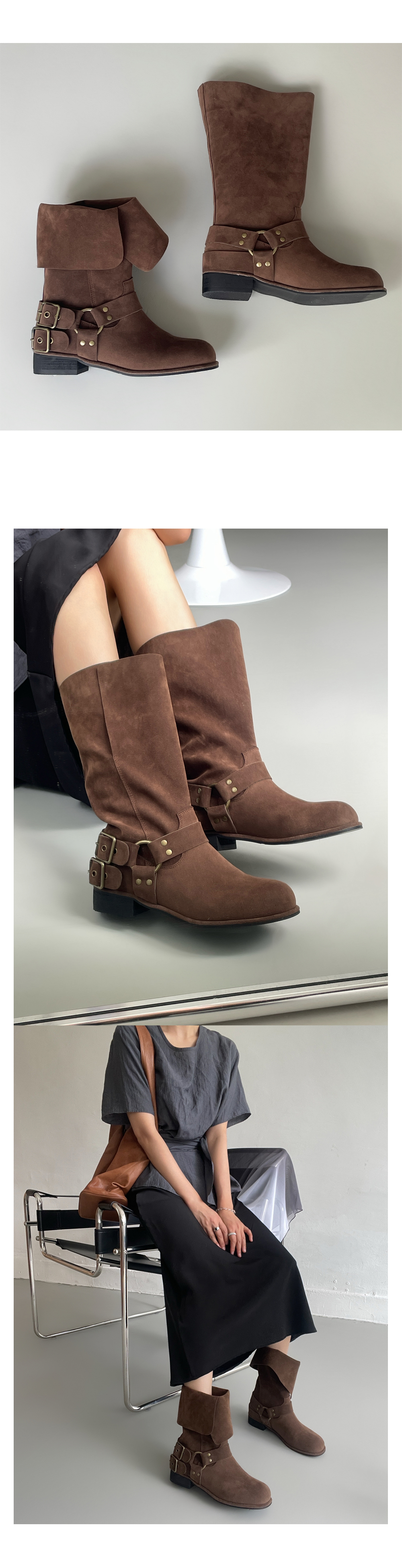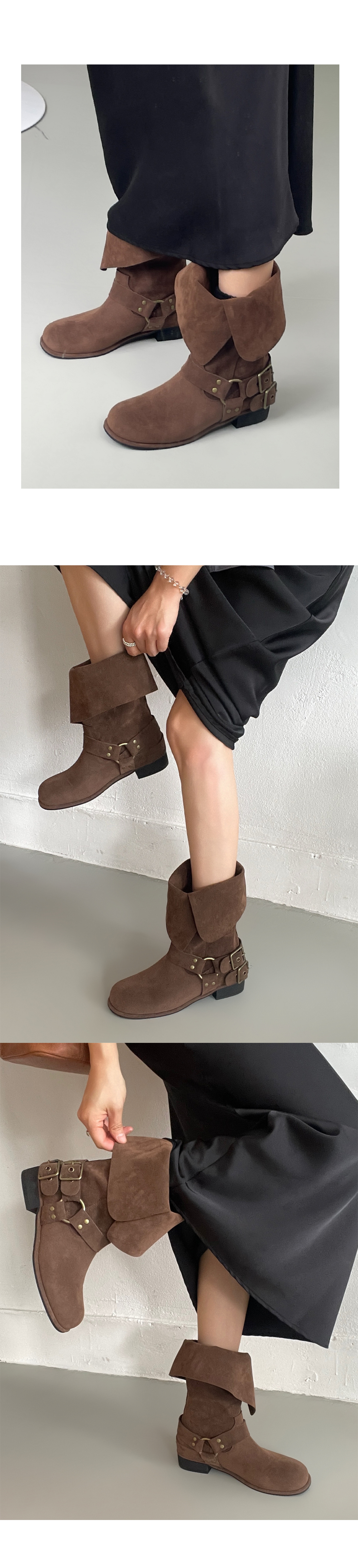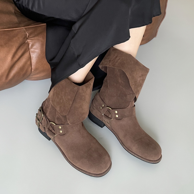 로번 바이커 버클 투웨이 통굽 스웨이드 미들부츠