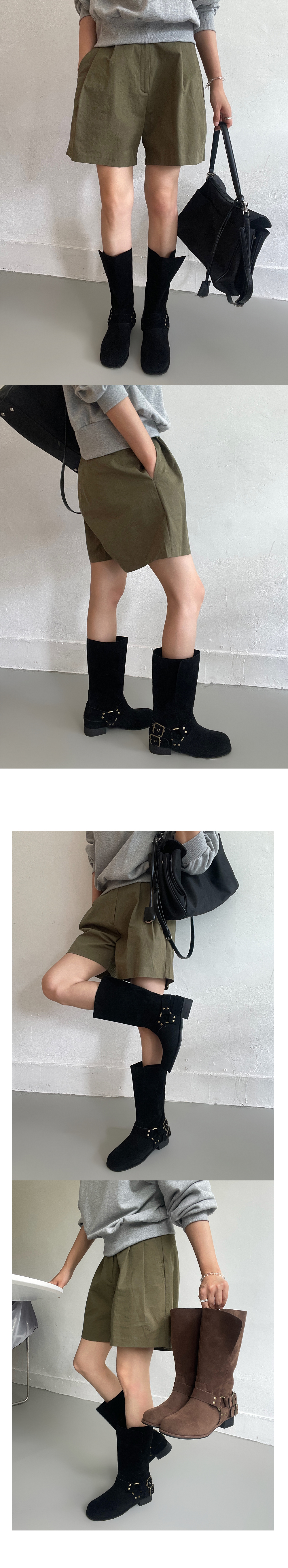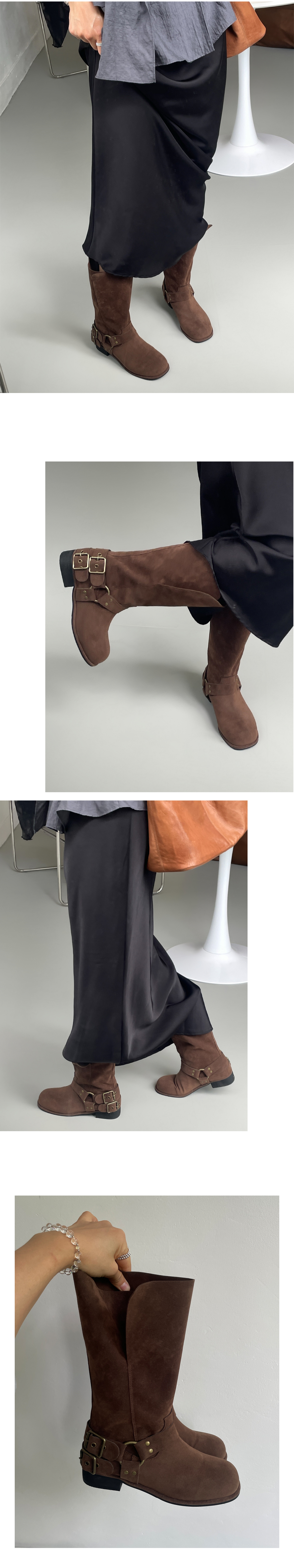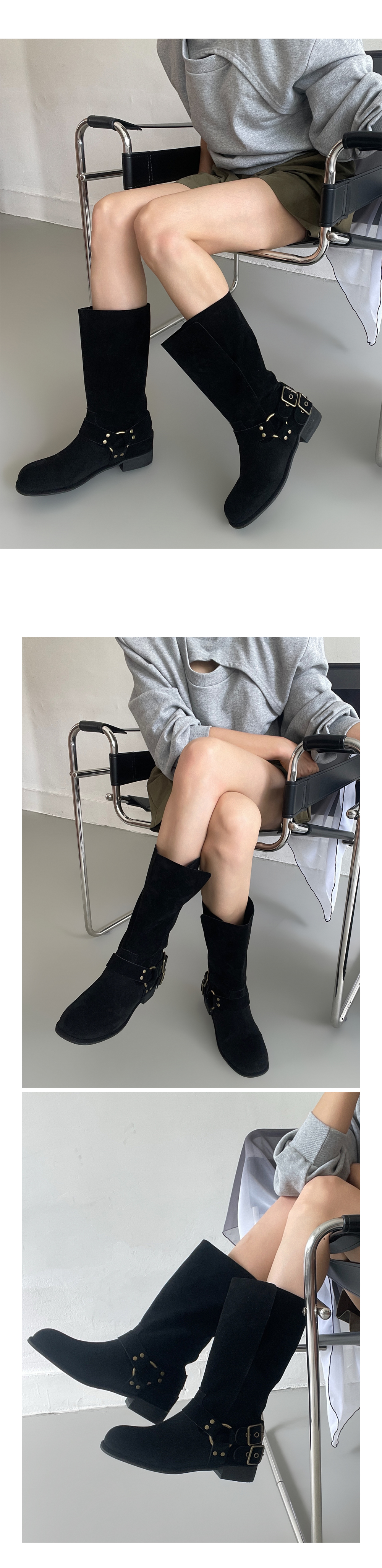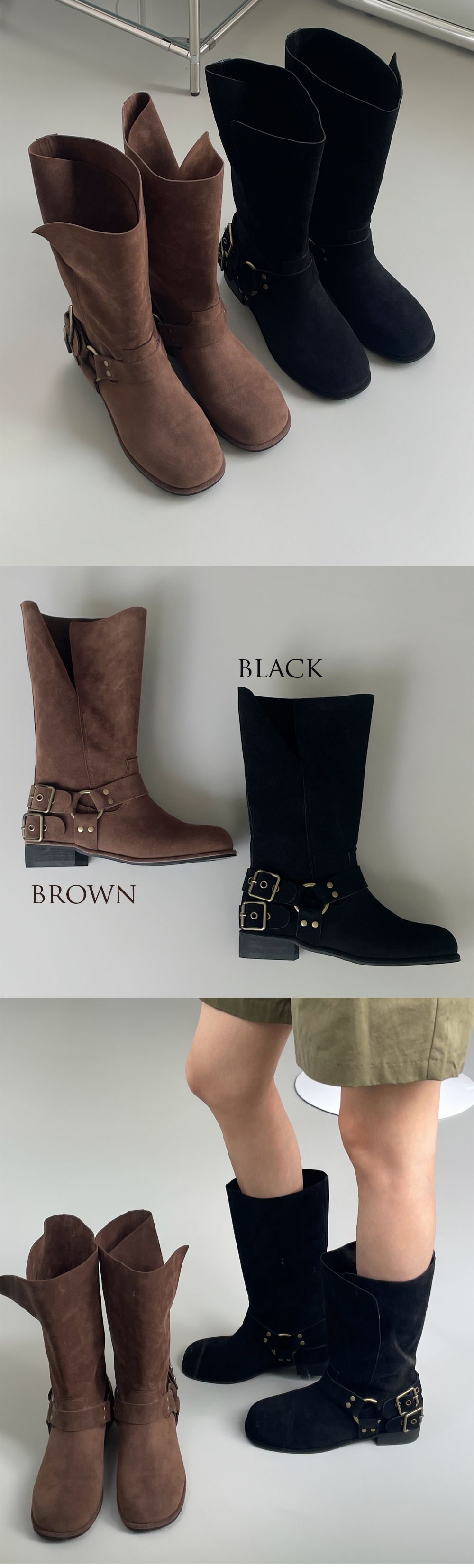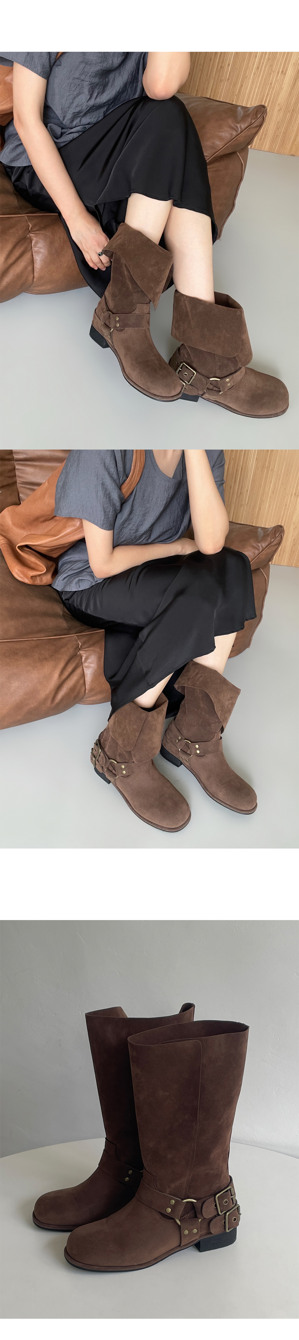 로번 바이커 버클 투웨이 통굽 스웨이드 미들부츠
