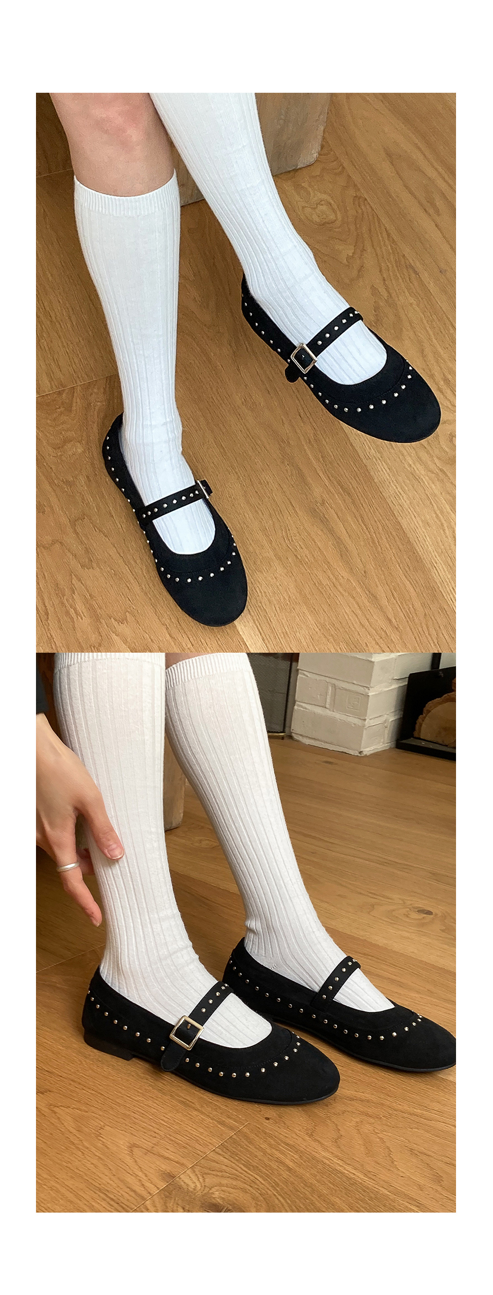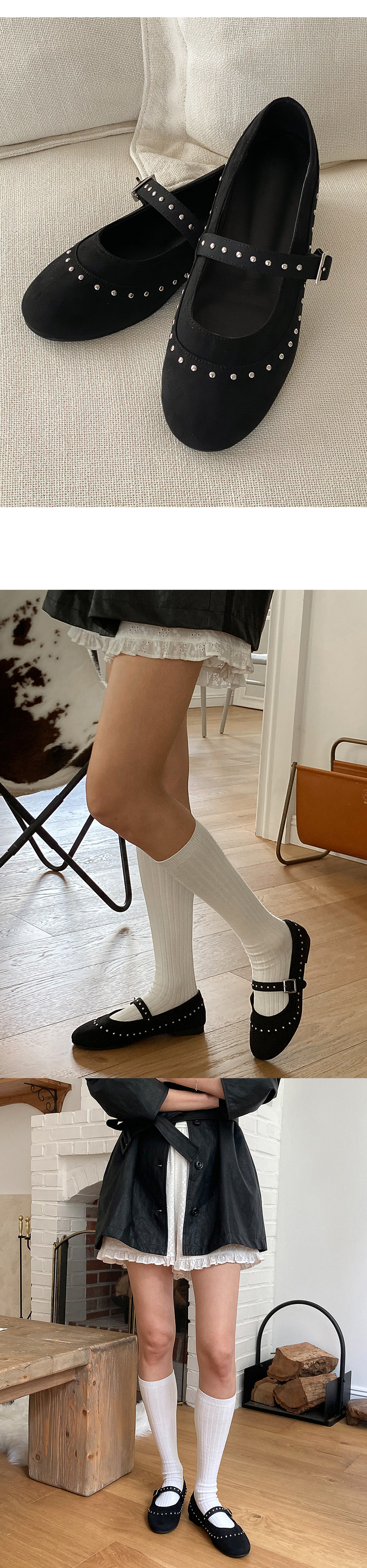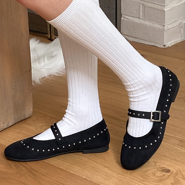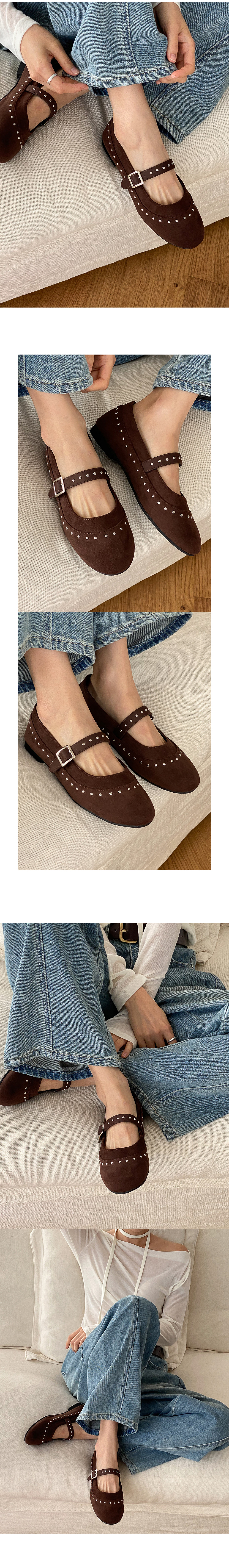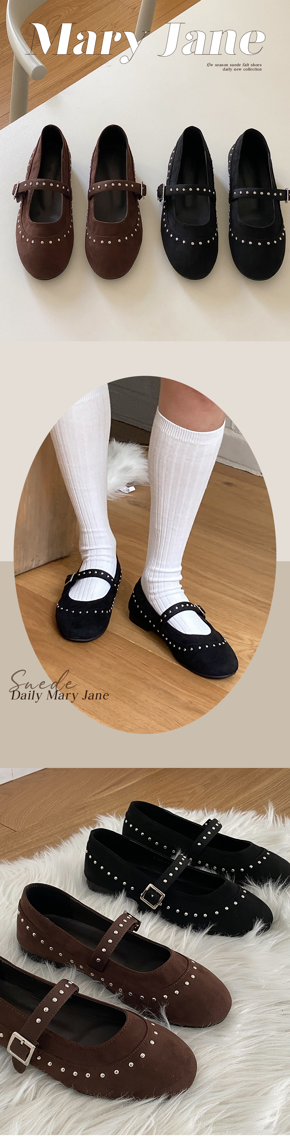 마카 찡 스터드 스웨이드 메리제인 플랫슈즈