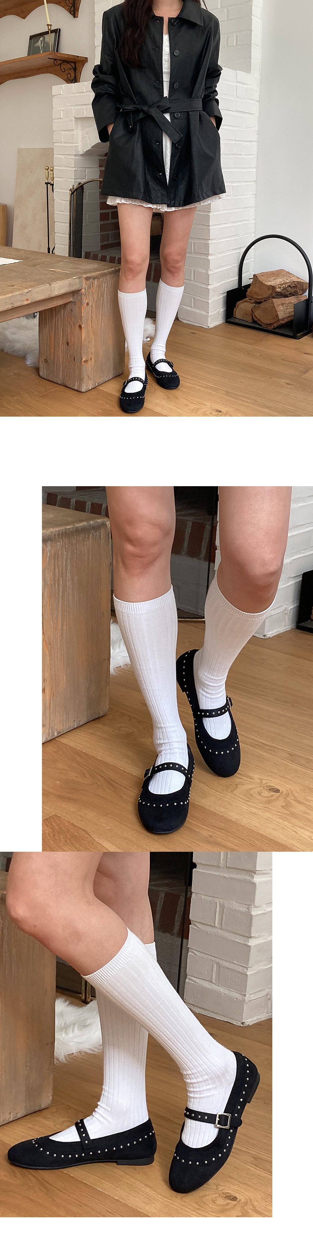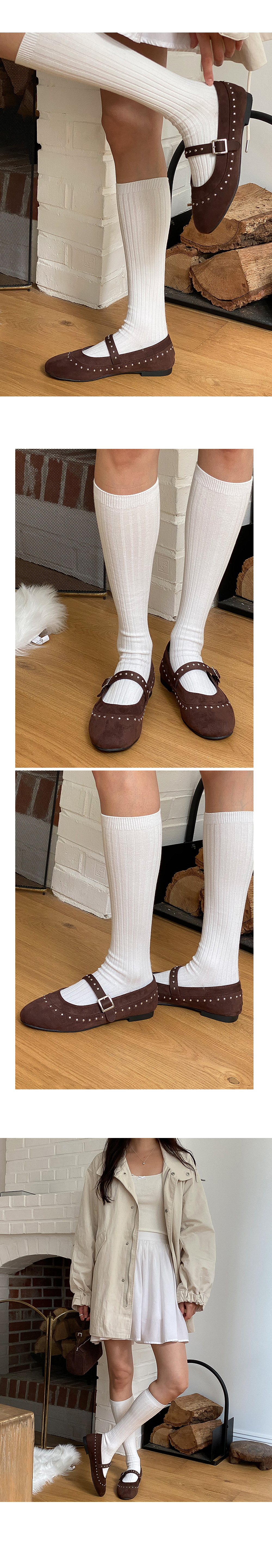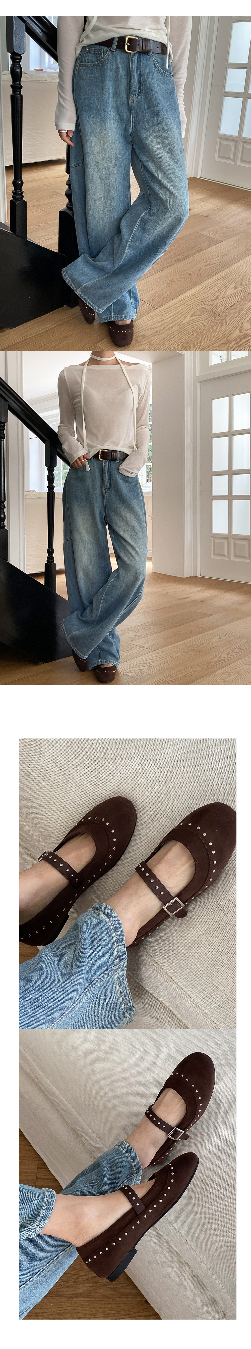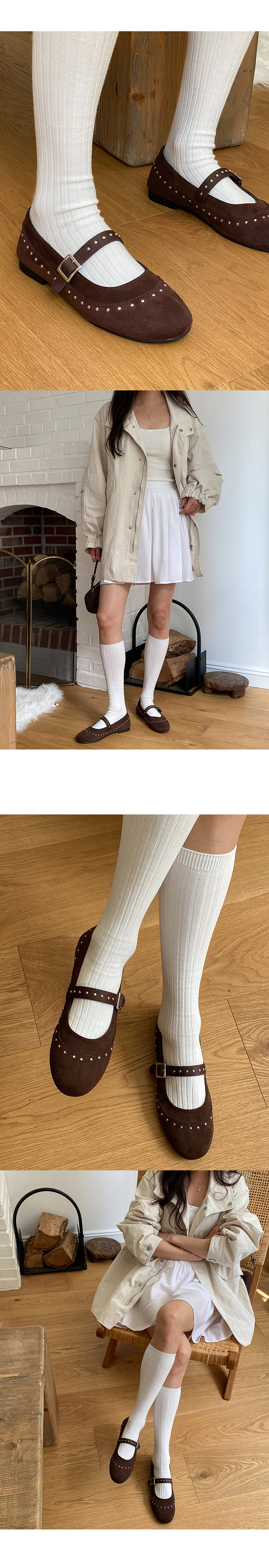 마카 찡 스터드 스웨이드 메리제인 플랫슈즈