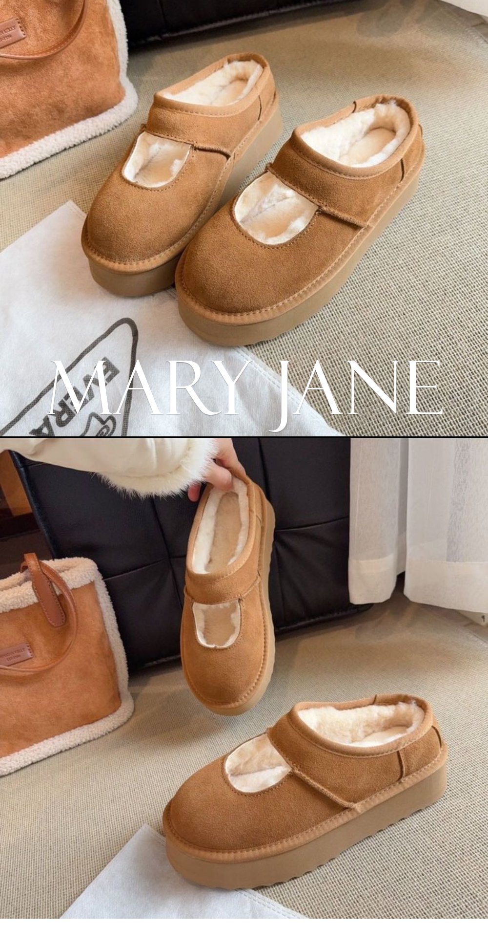 제인 스웨이드 키높이 통굽 어그 메리제인 슬리퍼