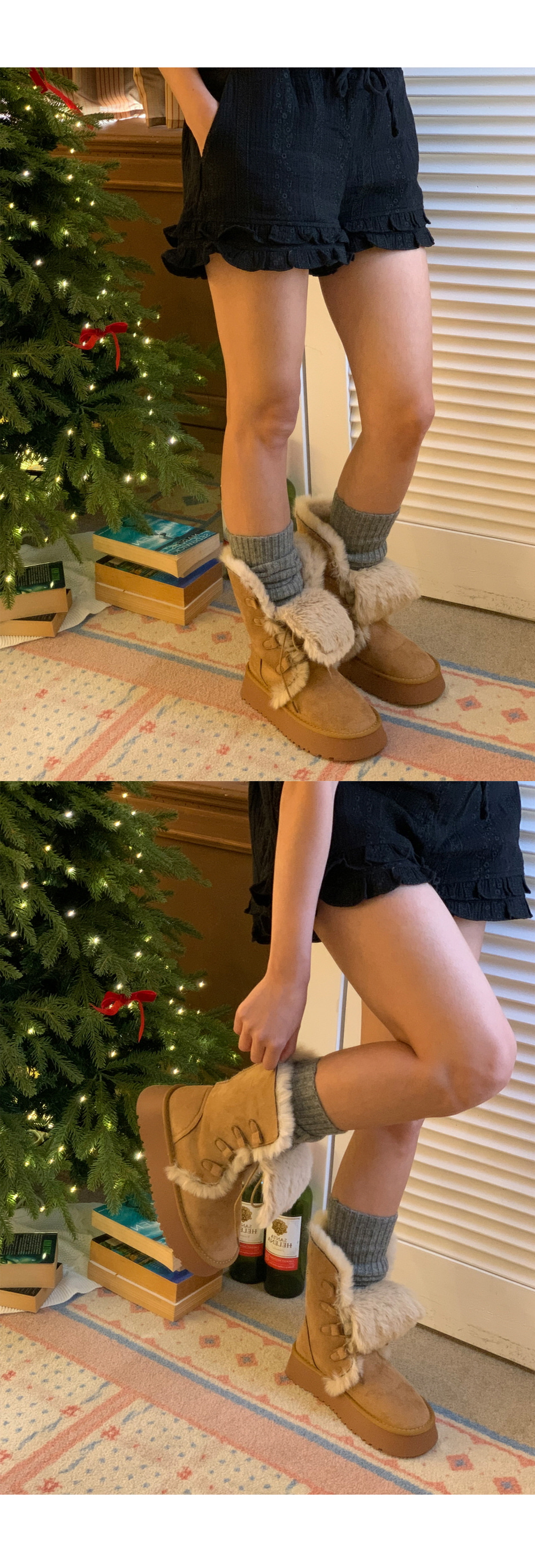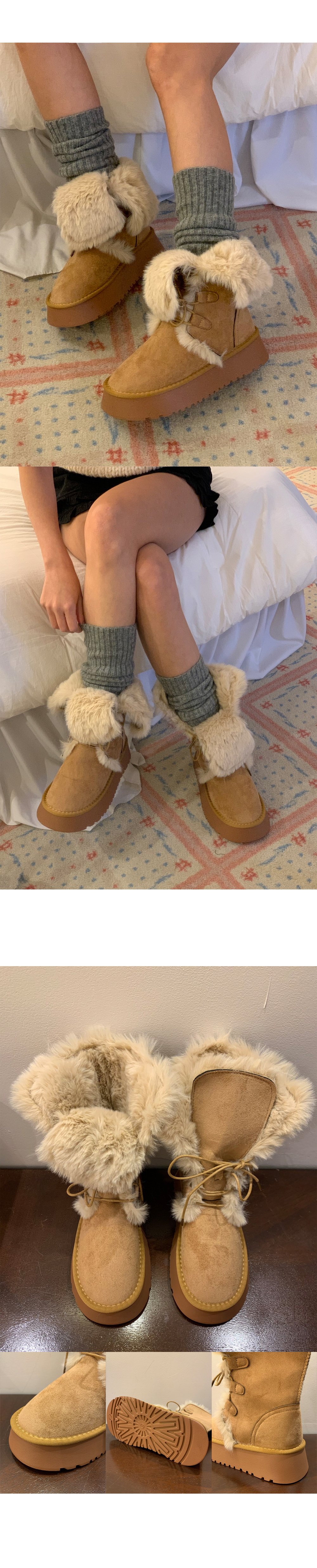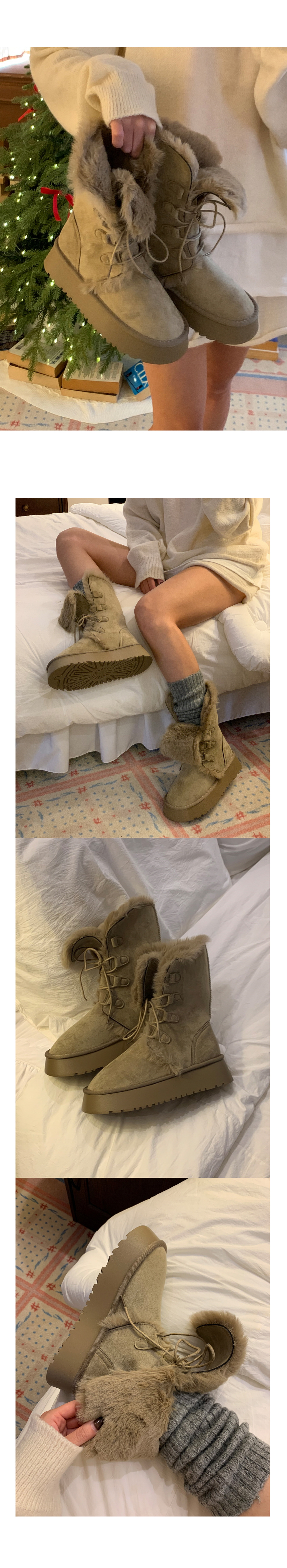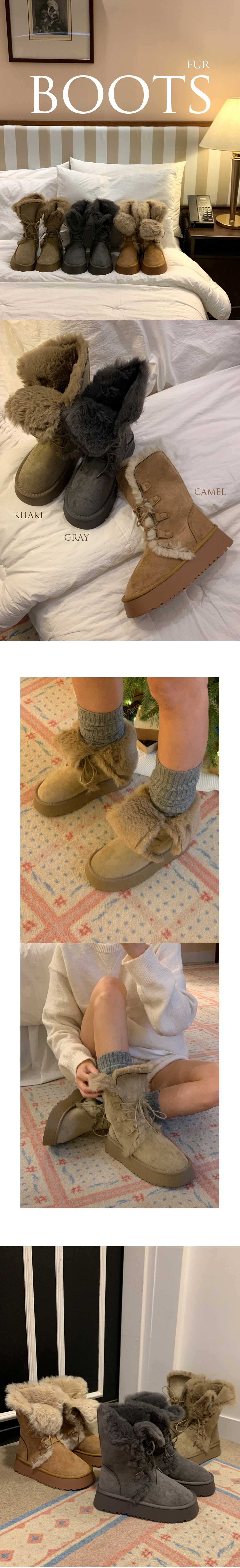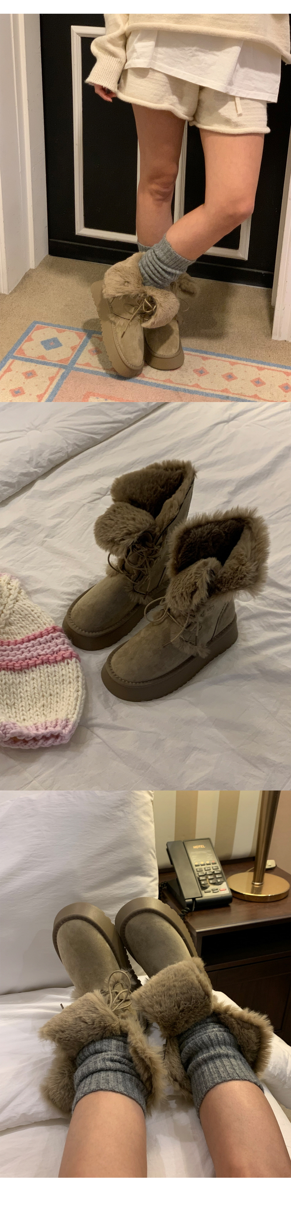 베어비 레이스업 방한화 털안감 스웨이드 폴딩 어그 통굽 워커 미들부츠