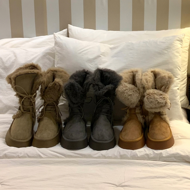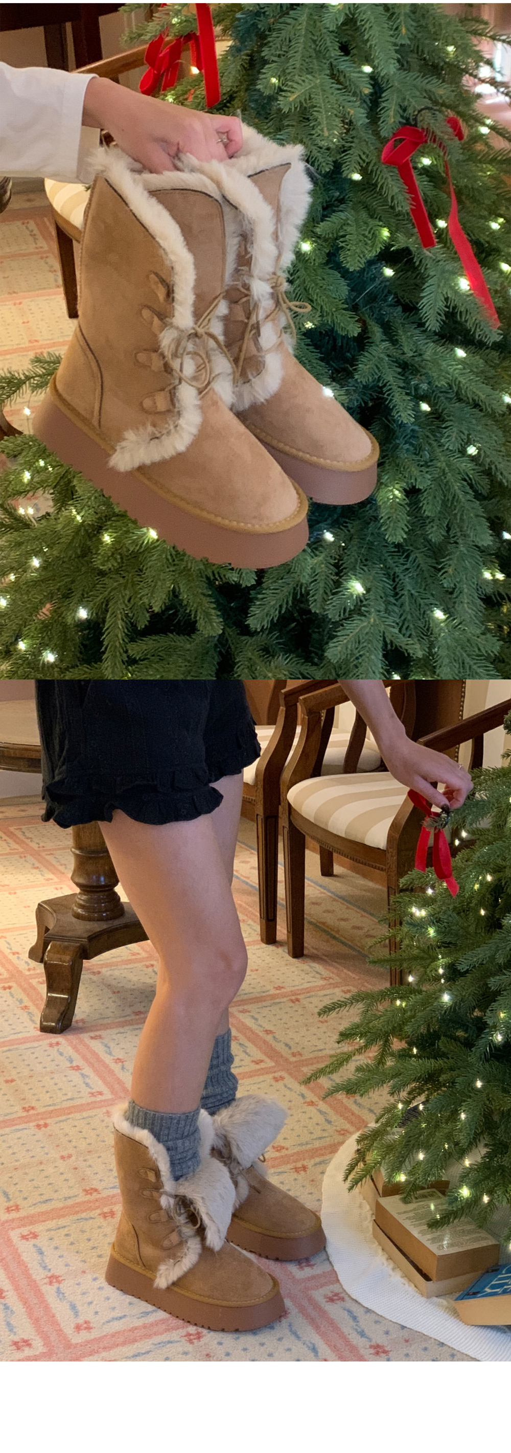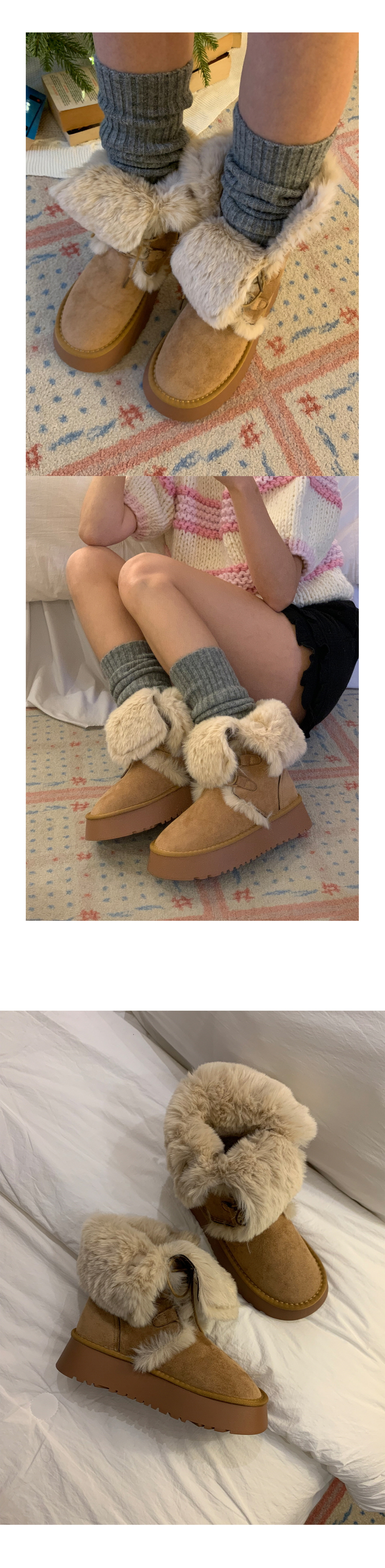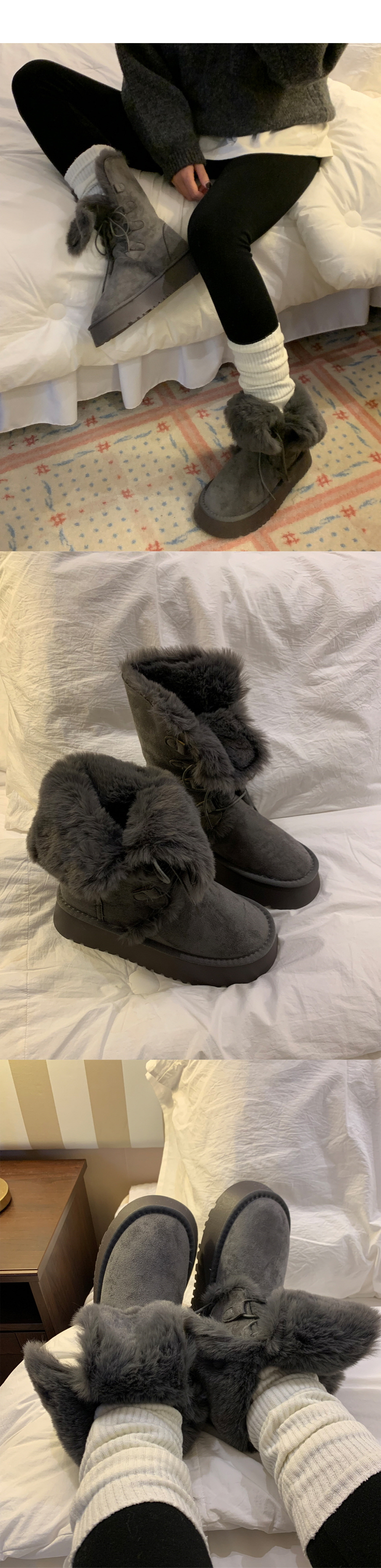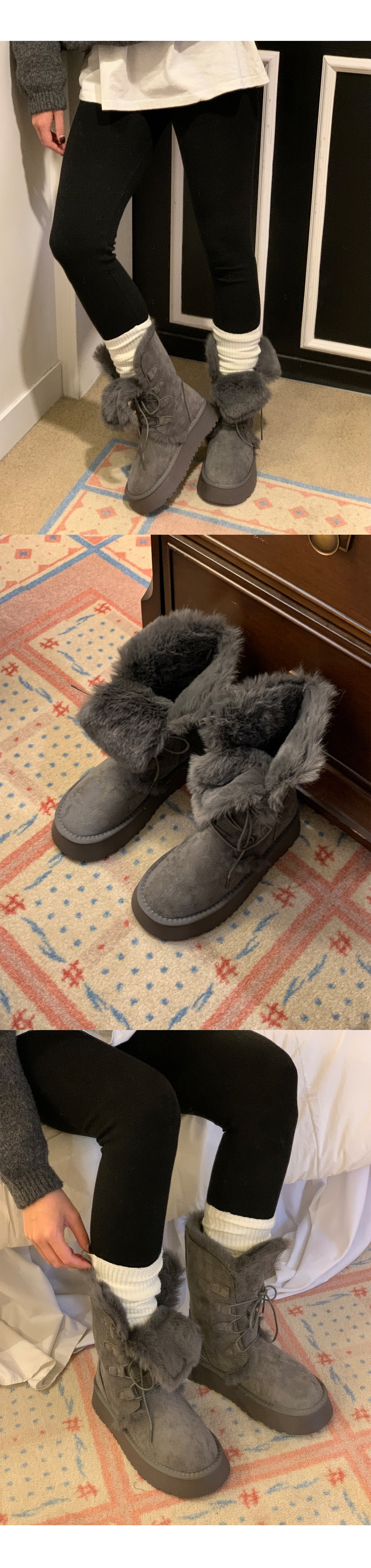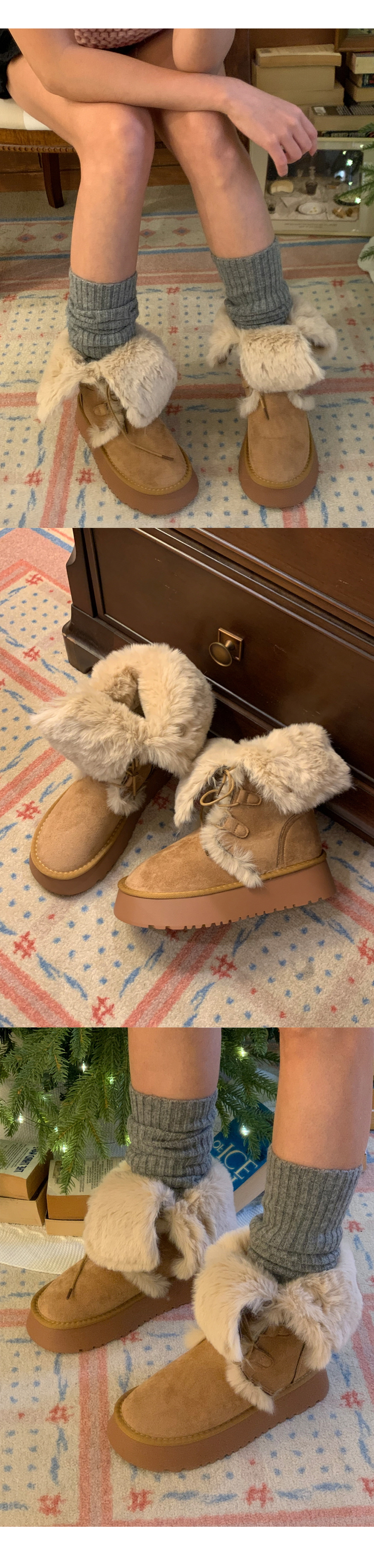 베어비 레이스업 방한화 털안감 스웨이드 폴딩 어그 통굽 워커 미들부츠