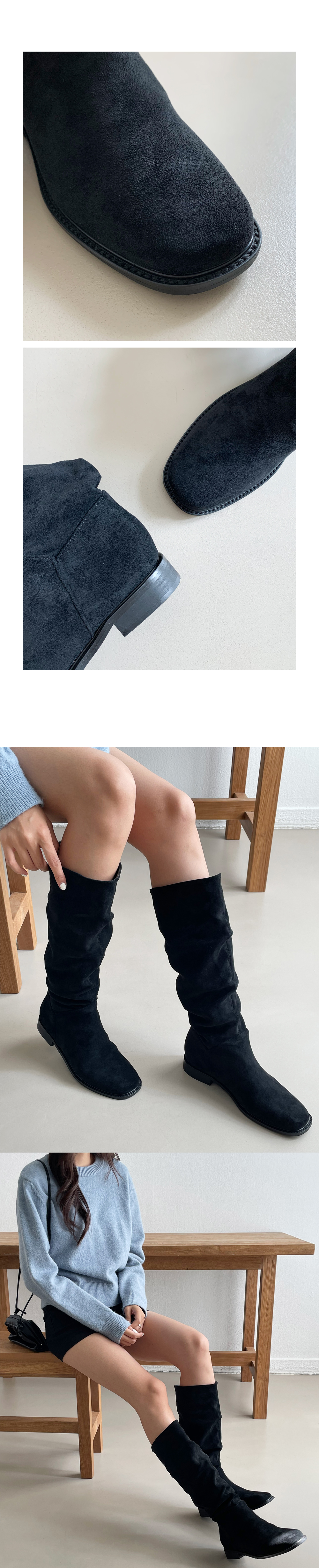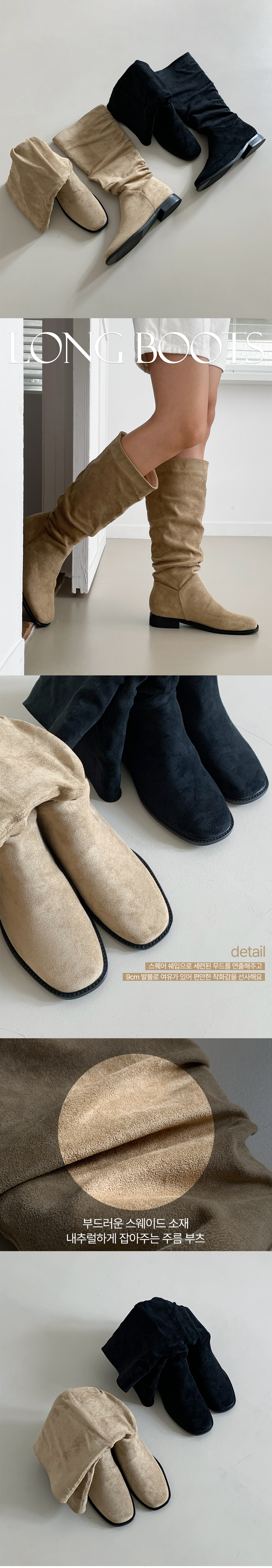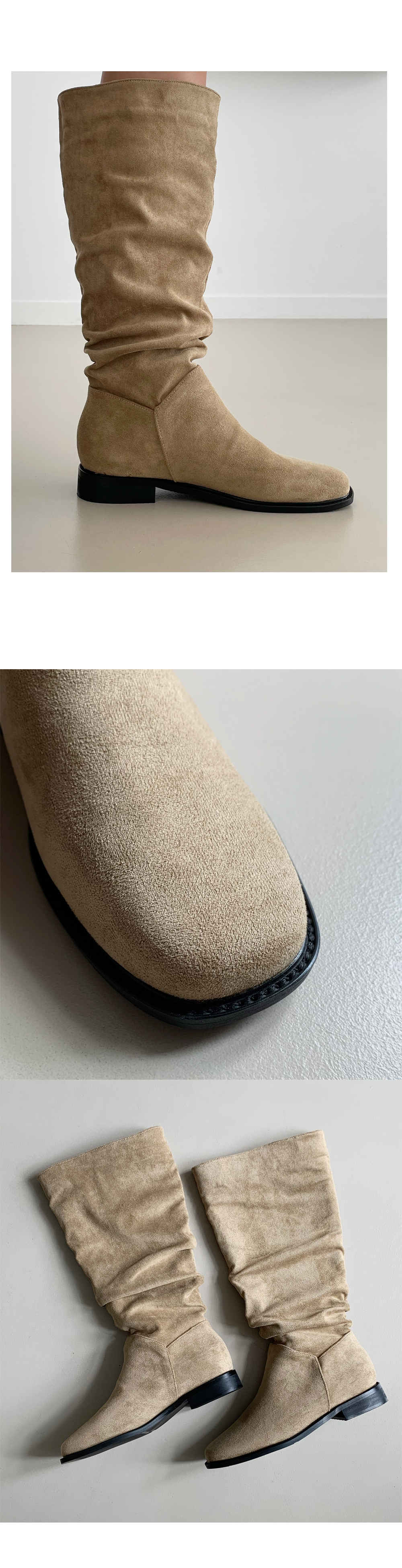 덴더 스퀘어 슬라우치 주름 셔링 스웨이드 롱부츠