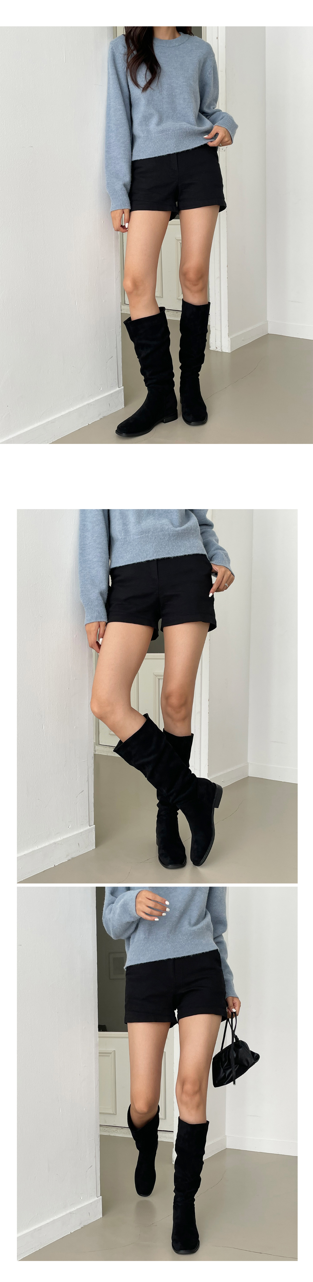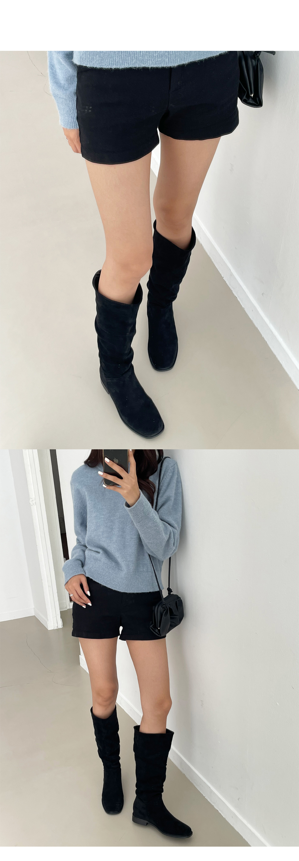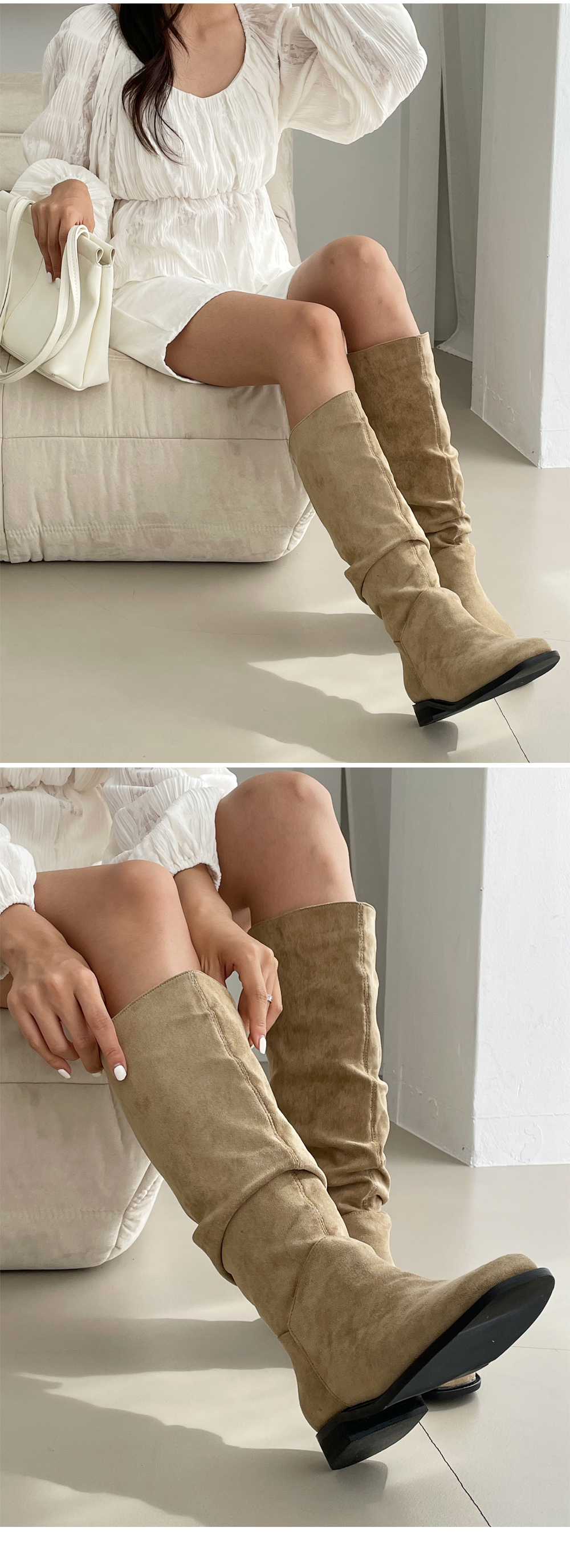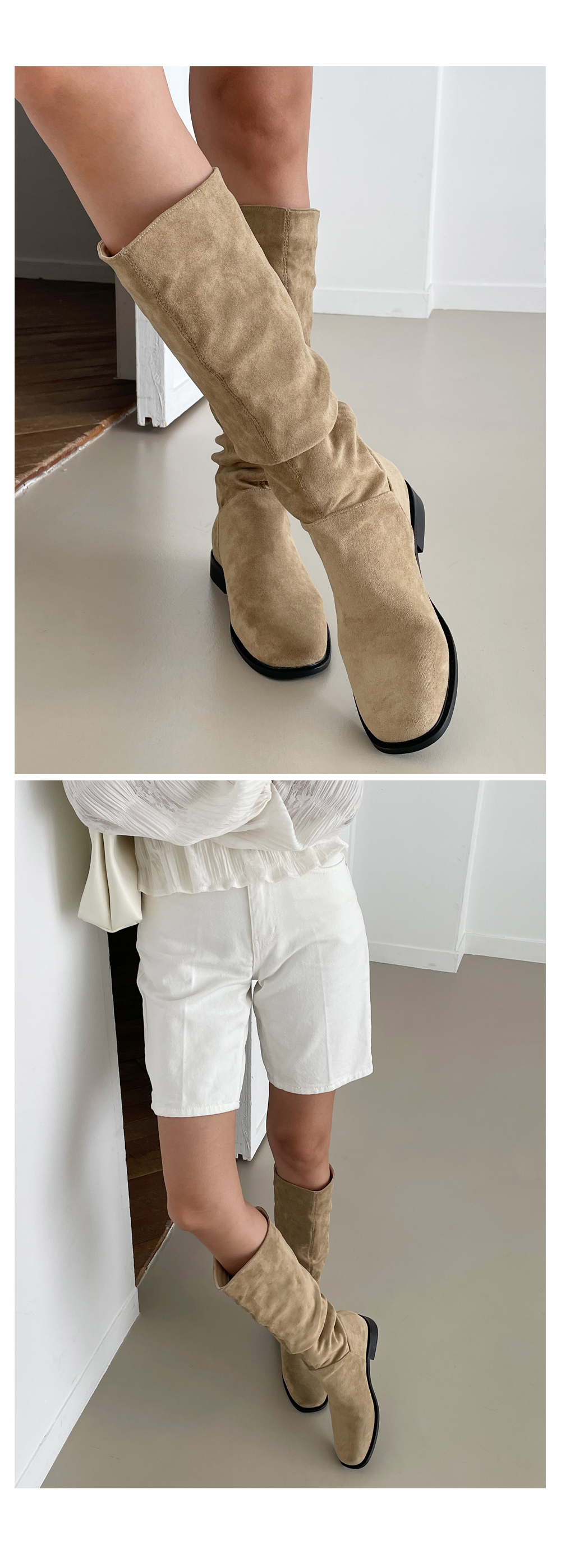 덴더 스퀘어 슬라우치 주름 셔링 스웨이드 롱부츠
