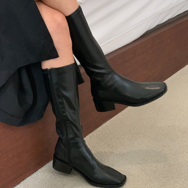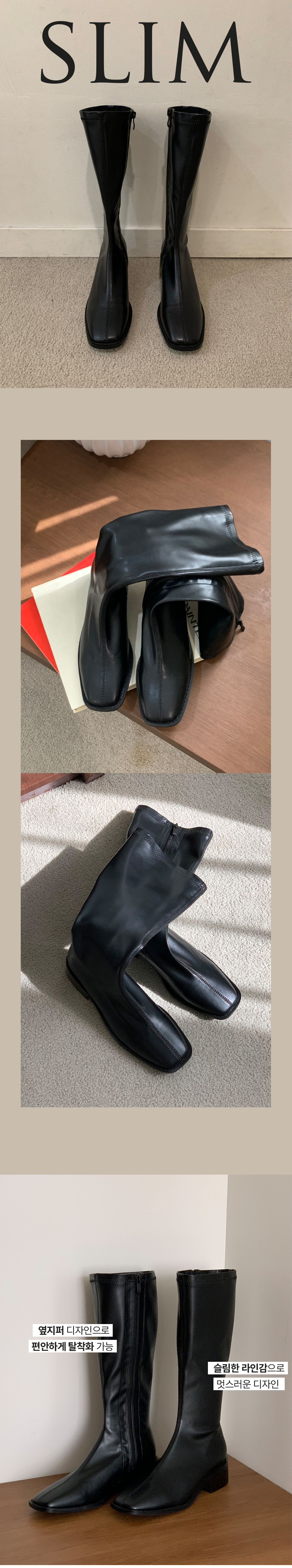 겔리브 스퀘어 베이직 슬림핏 옆지퍼 롱부츠