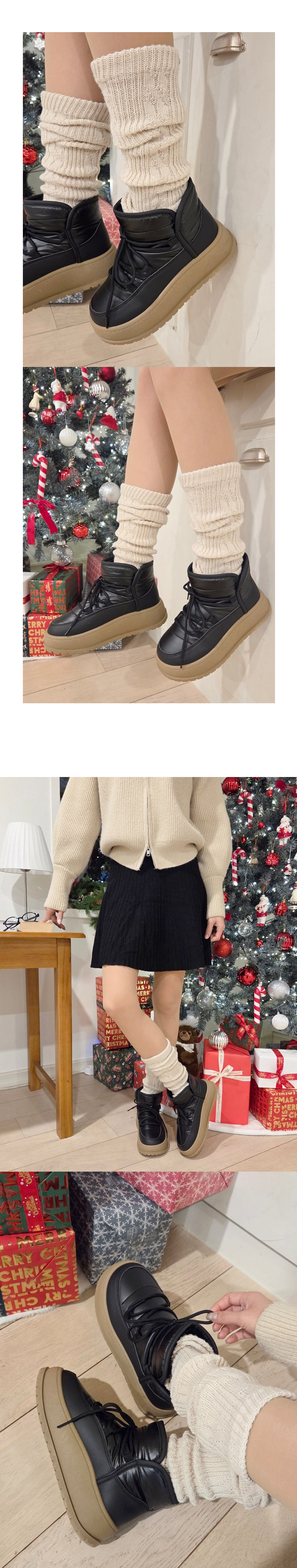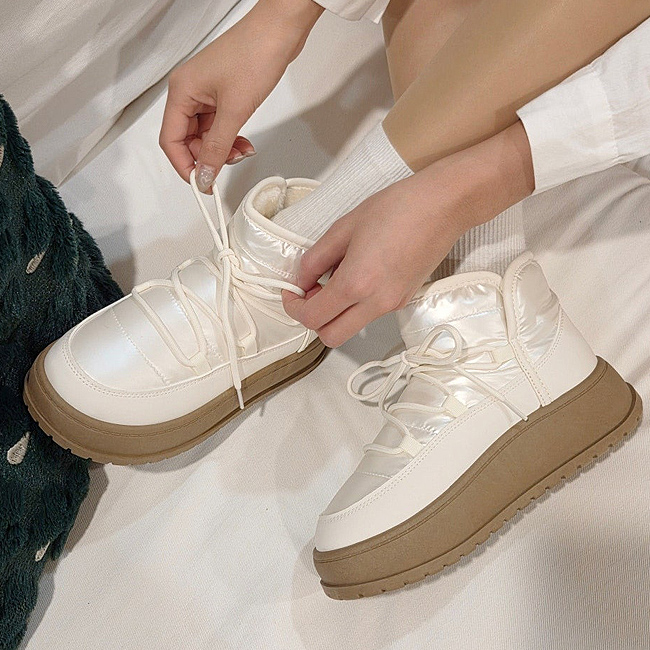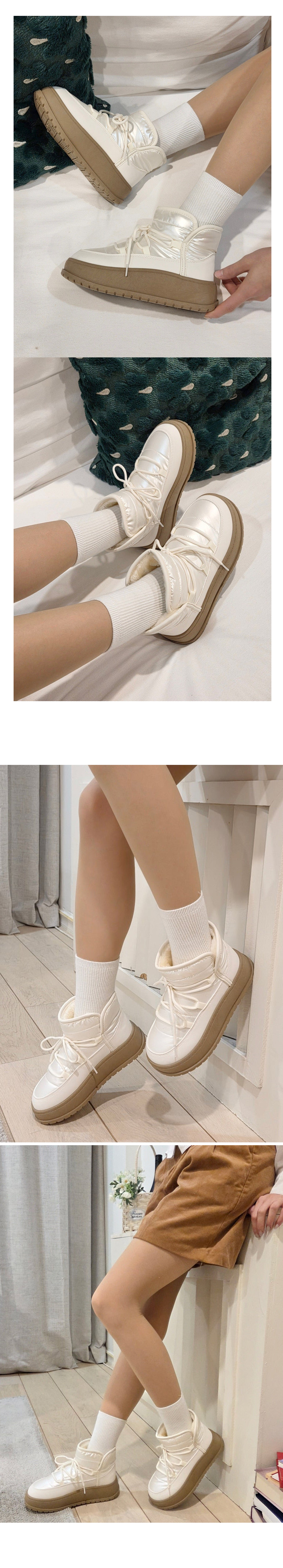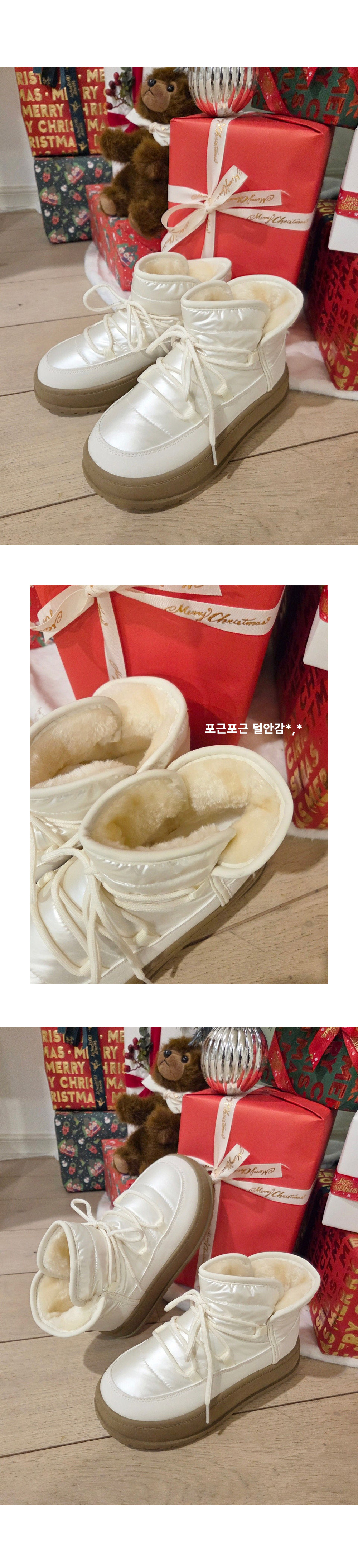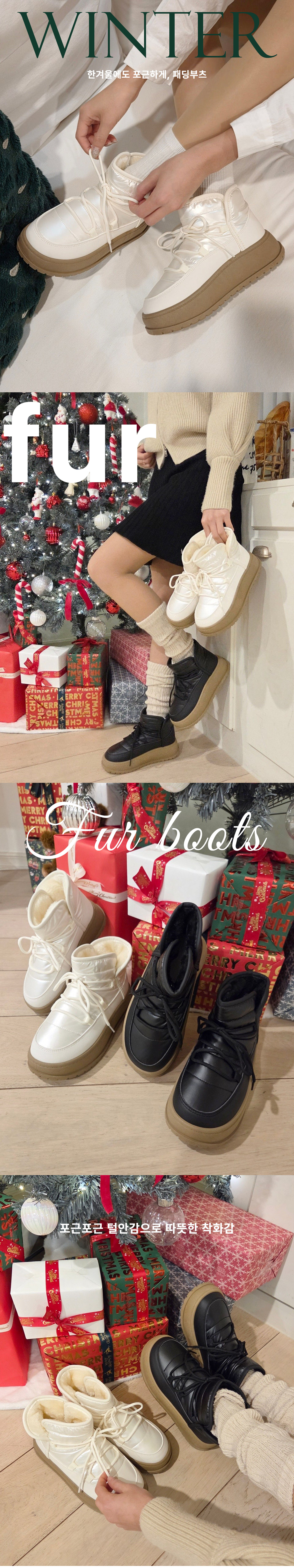 플랜 털안감 방한화 겨울 털신발 통굽 패딩부츠 앵클부츠