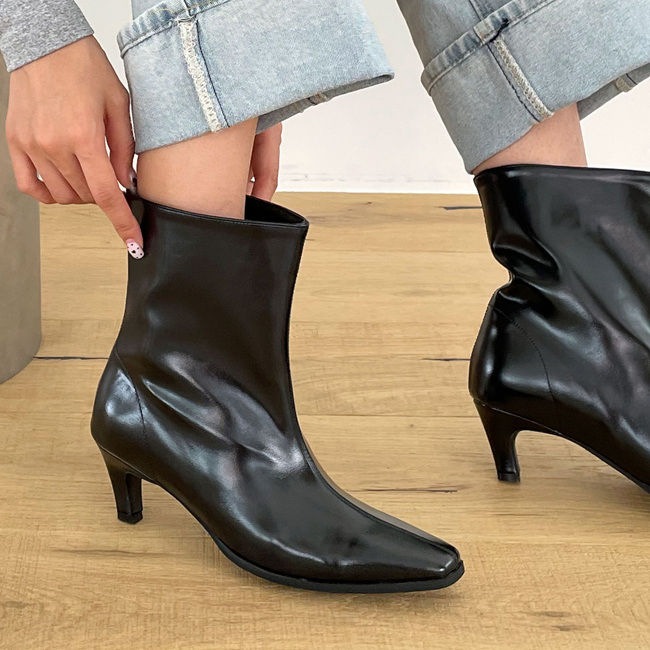 에이트 통넓은부츠 스퀘어 스틸레토 앵클부츠