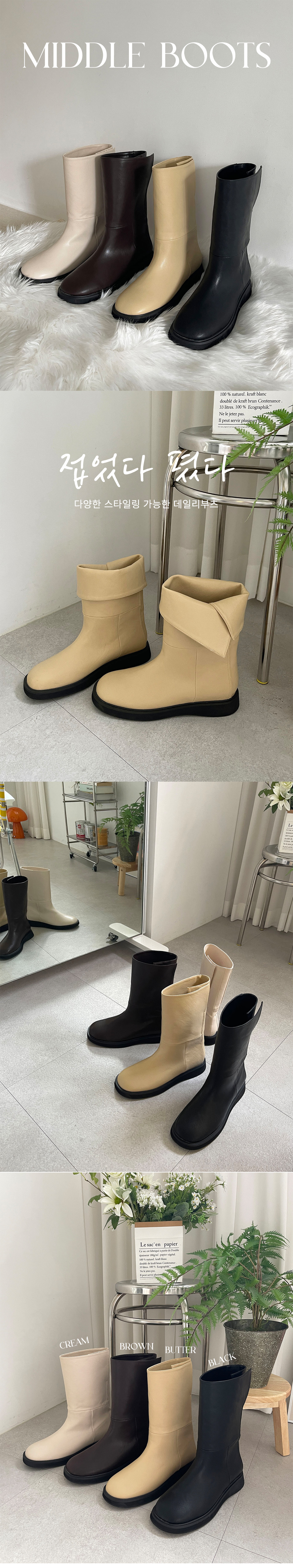 루아드 둥근코 투웨이 슬릿 폴딩 숏 미들부츠