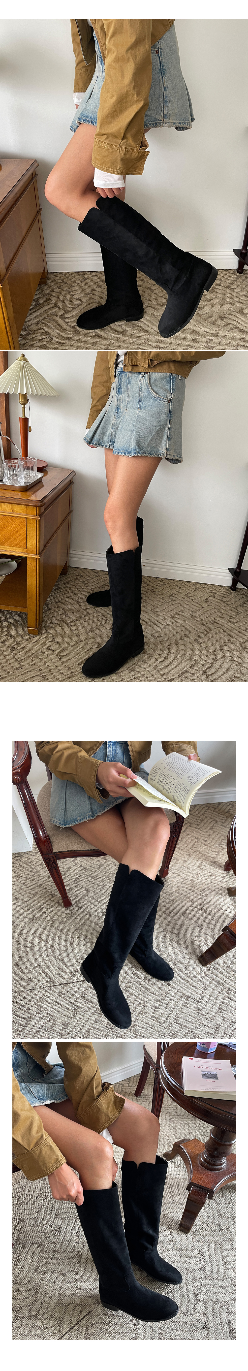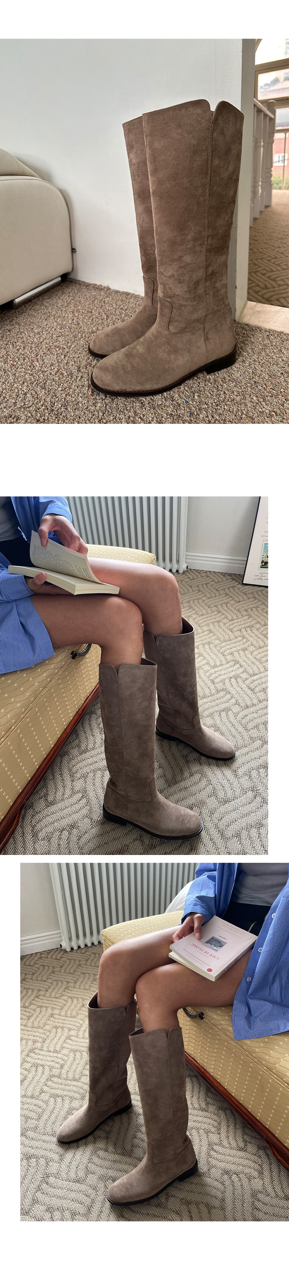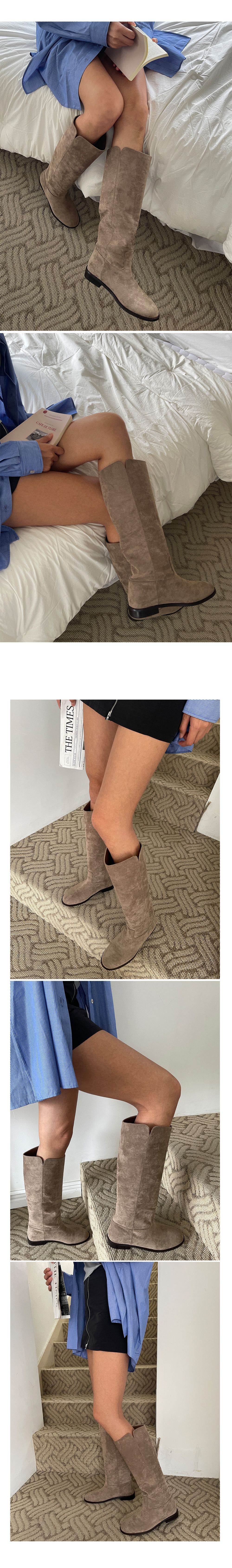 오브아 통넓은부츠 슬릿 옆트임 스웨이드 낮은굽 롱부츠