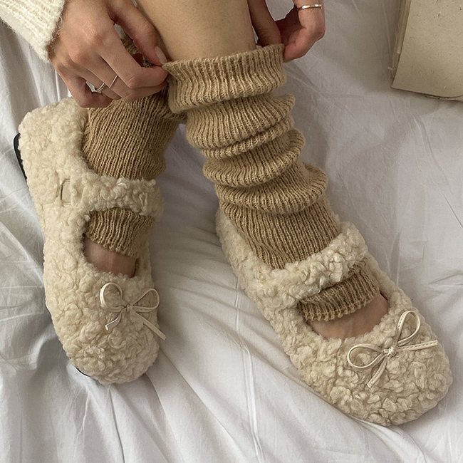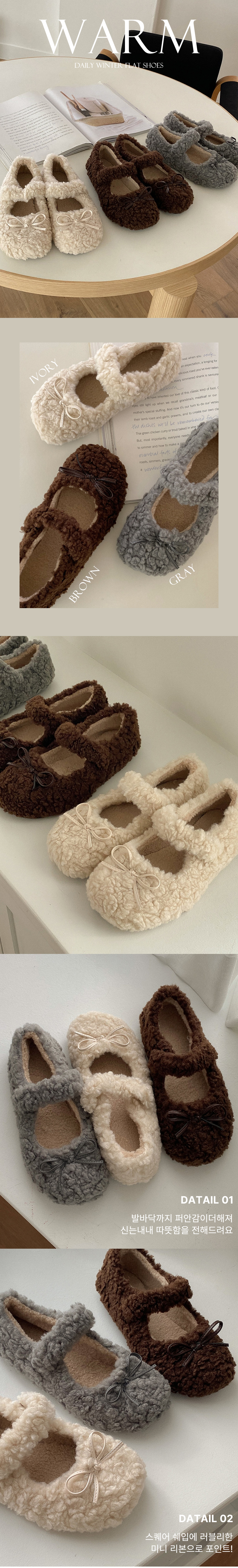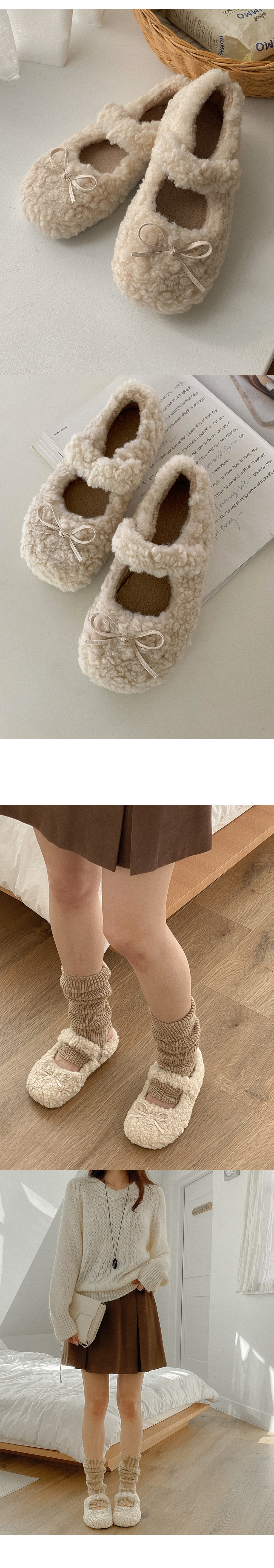 [겨울신발☃털신발] 러브라브 리본 뽀글이 메리제인 털단화 플랫슈즈