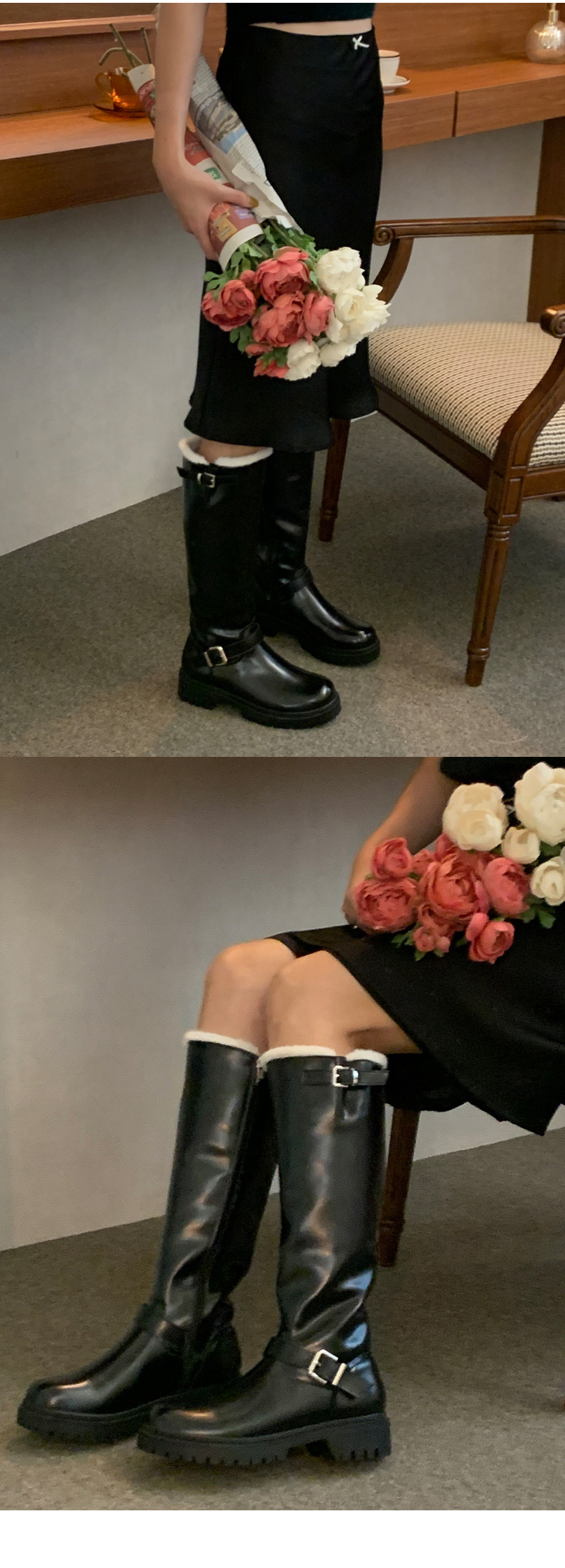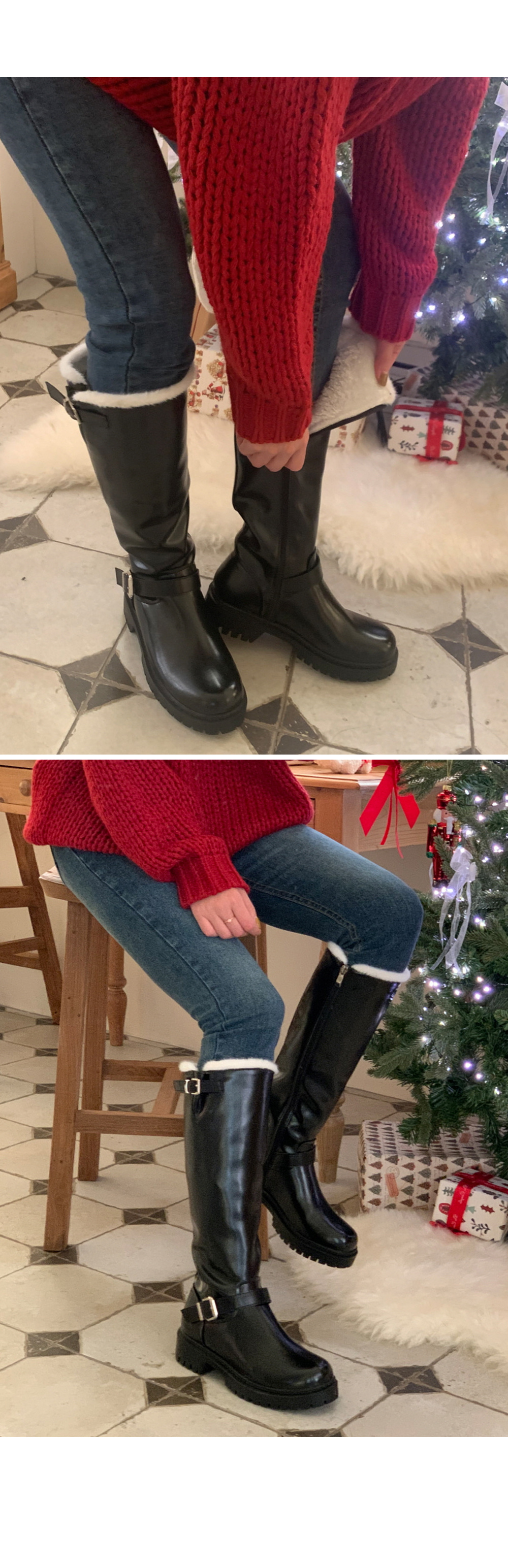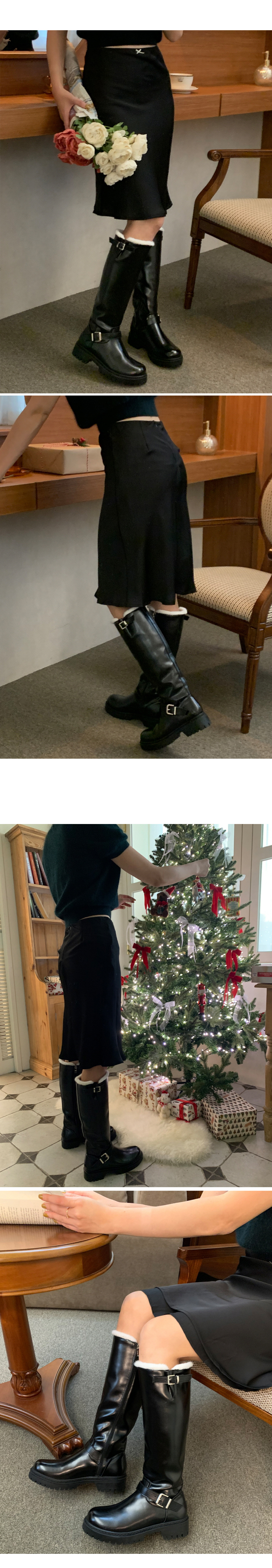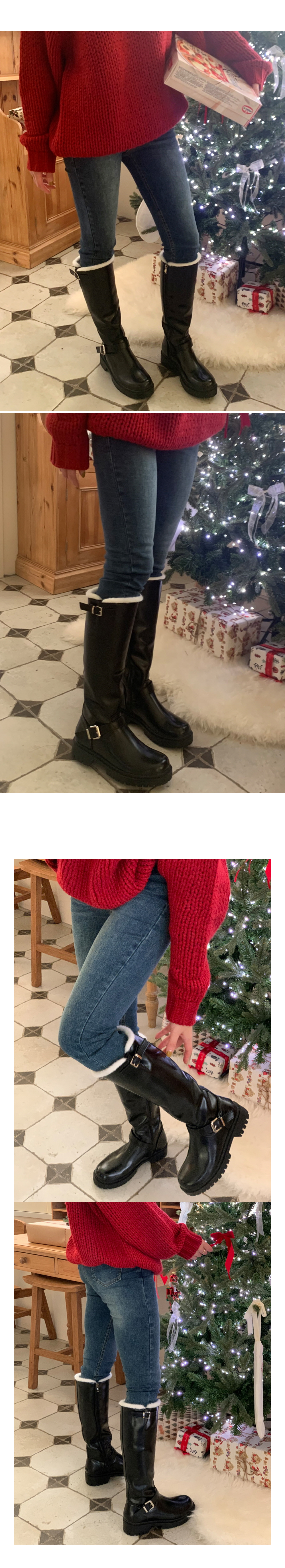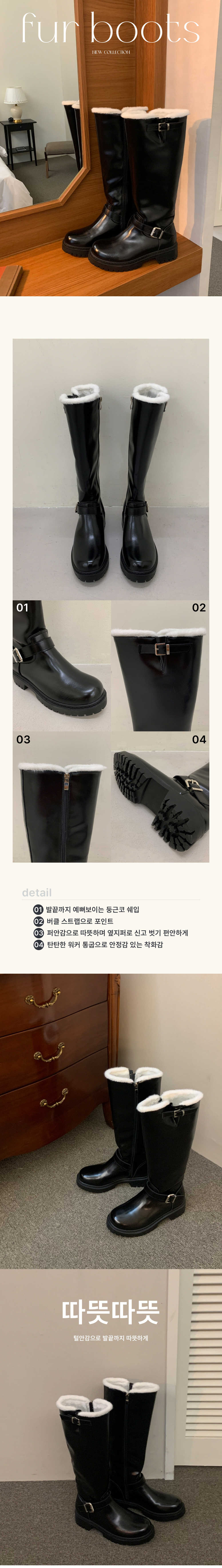 론더 겨울 털안감 버클 무스탕 통굽 롱부츠