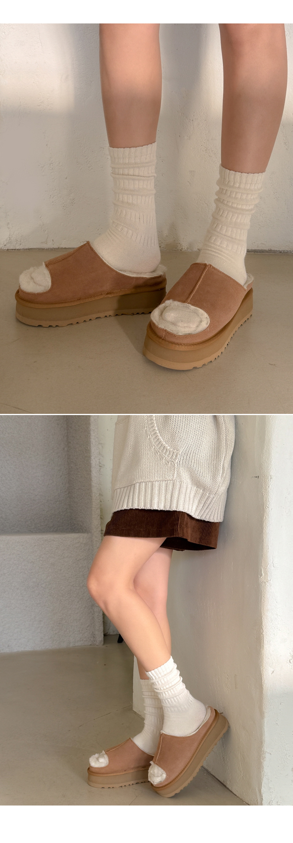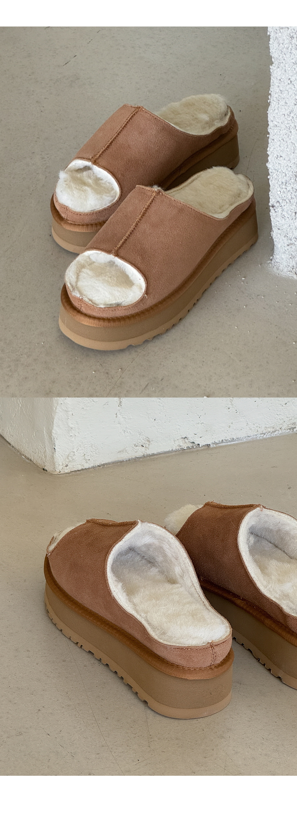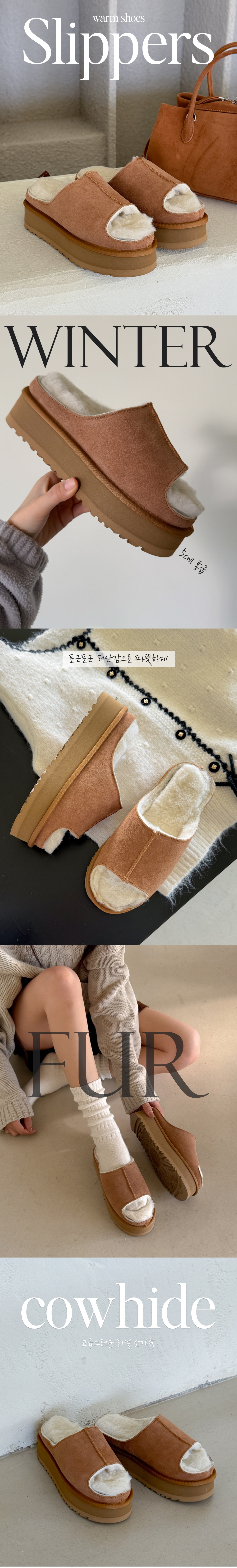 라키 겨울 스웨이드 리얼 소가죽 털안감 키높이 어그 통굽 슬리퍼