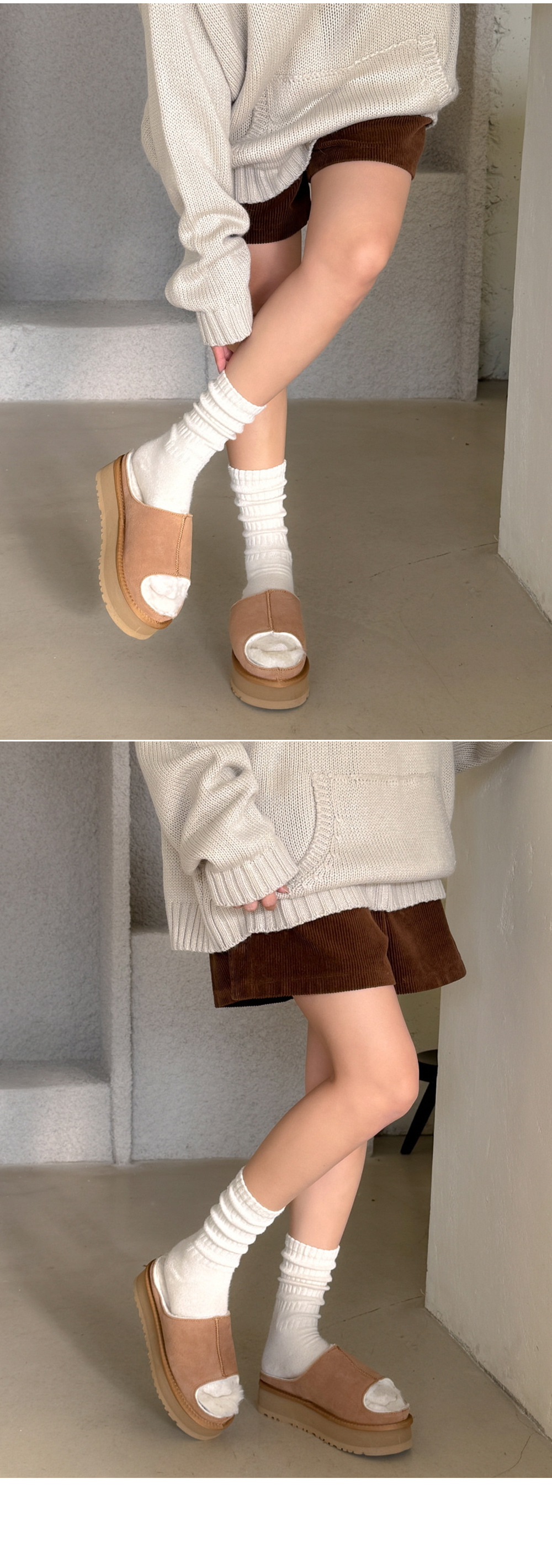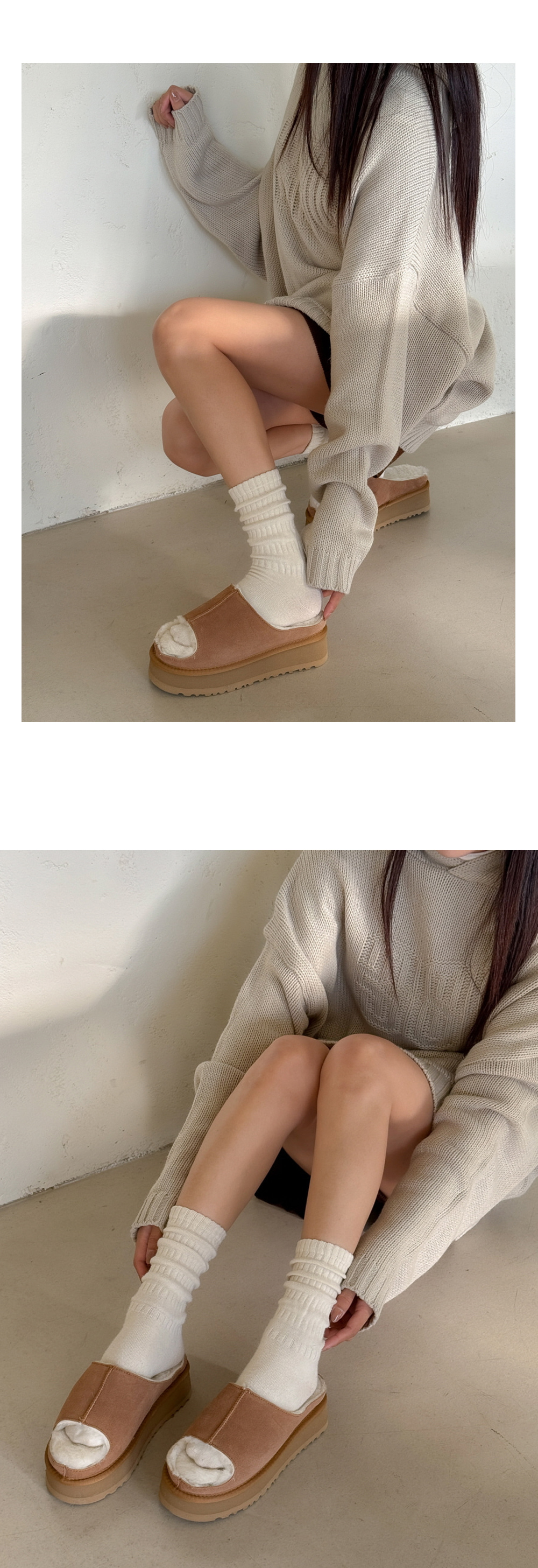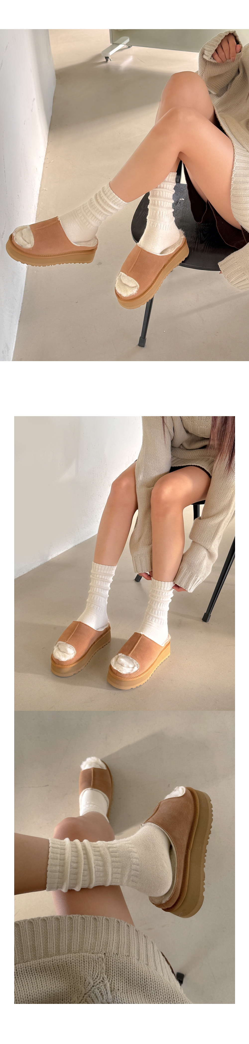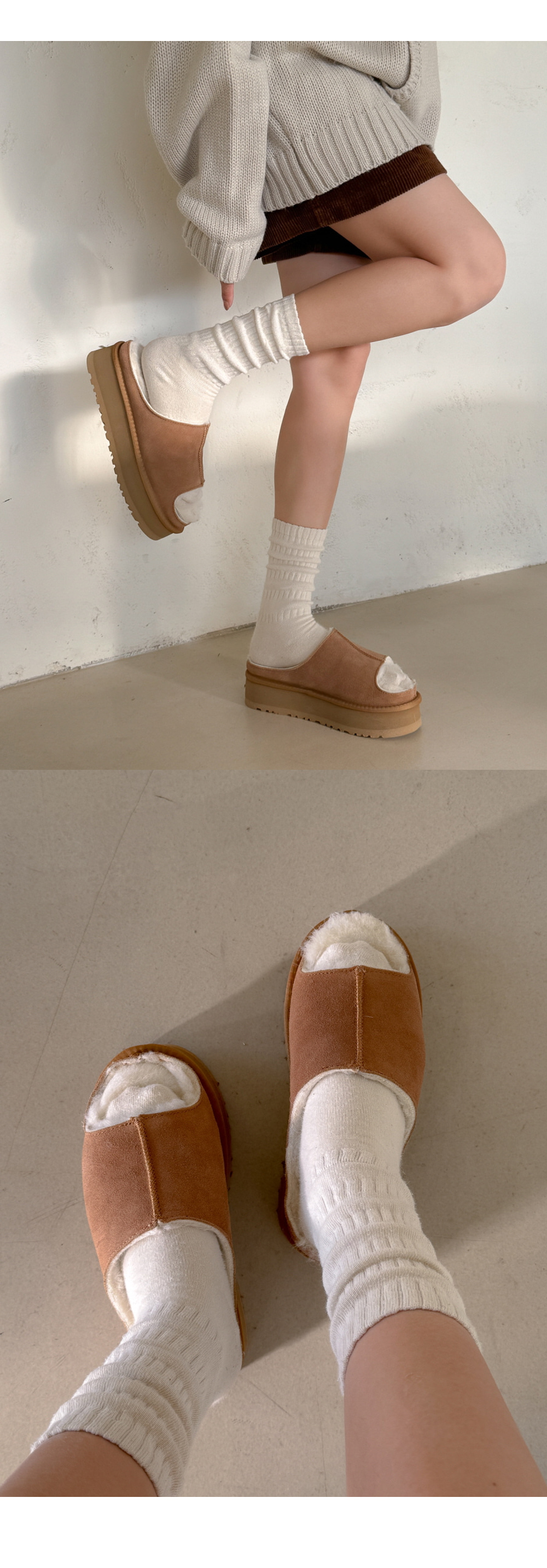 라키 겨울 스웨이드 리얼 소가죽 털안감 키높이 어그 통굽 슬리퍼