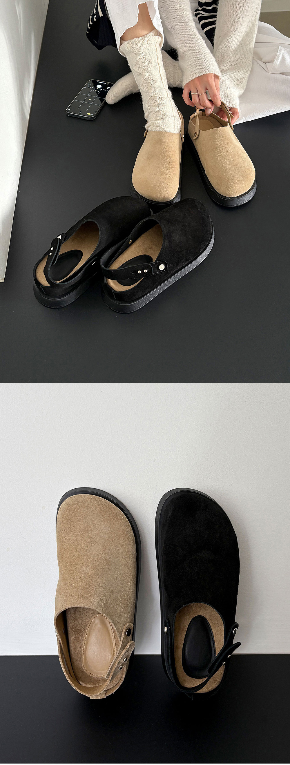 엔드 2way 천연소가죽 스웨이드 통굽 뮬 블로퍼 클로그 슬링백