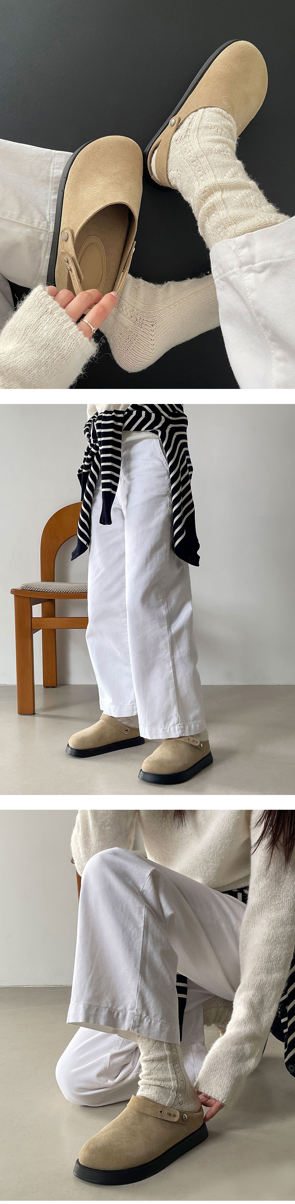 뒷꿈치를 잡아주는 "슬링백" 형식으로 스타일링해도 귀여워요!