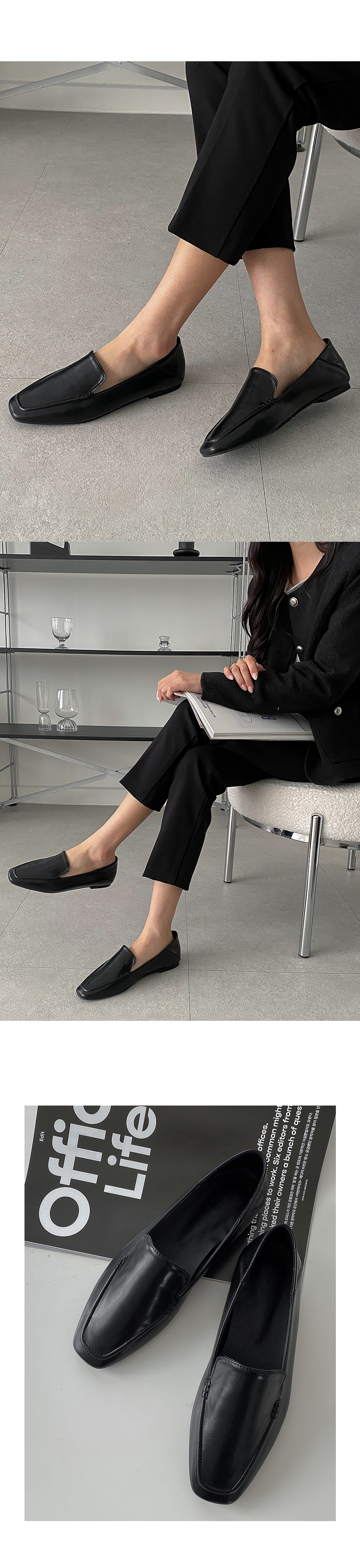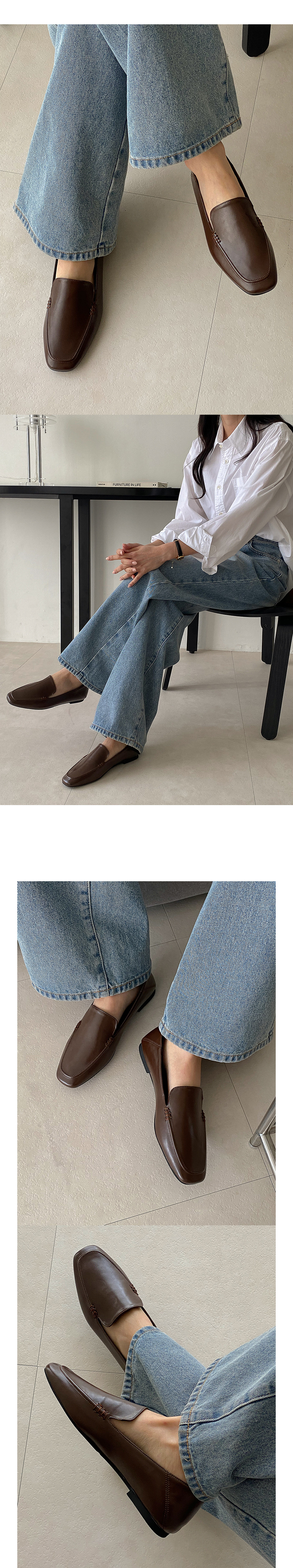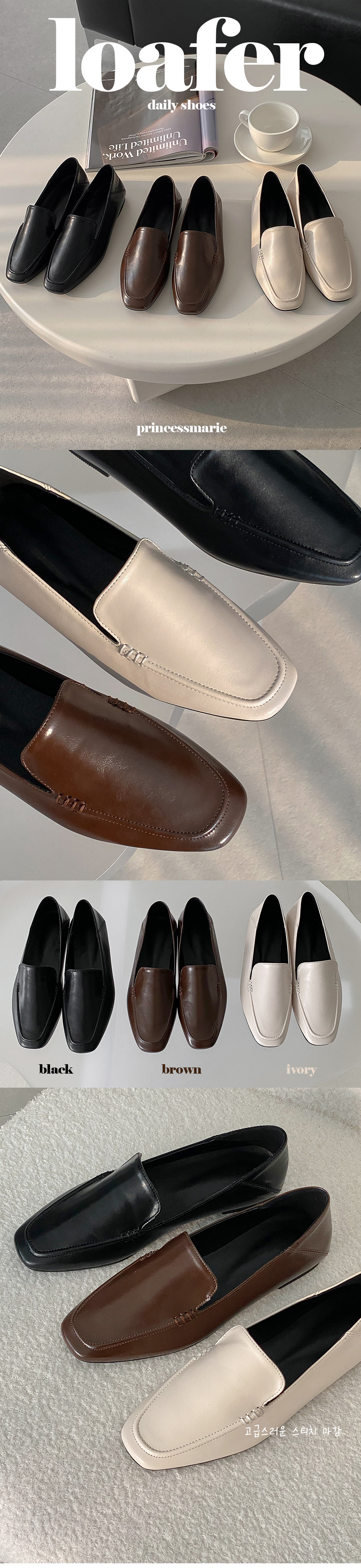 디안느 스퀘어 사이드 스티치 클래식 낮은굽 플랫 로퍼