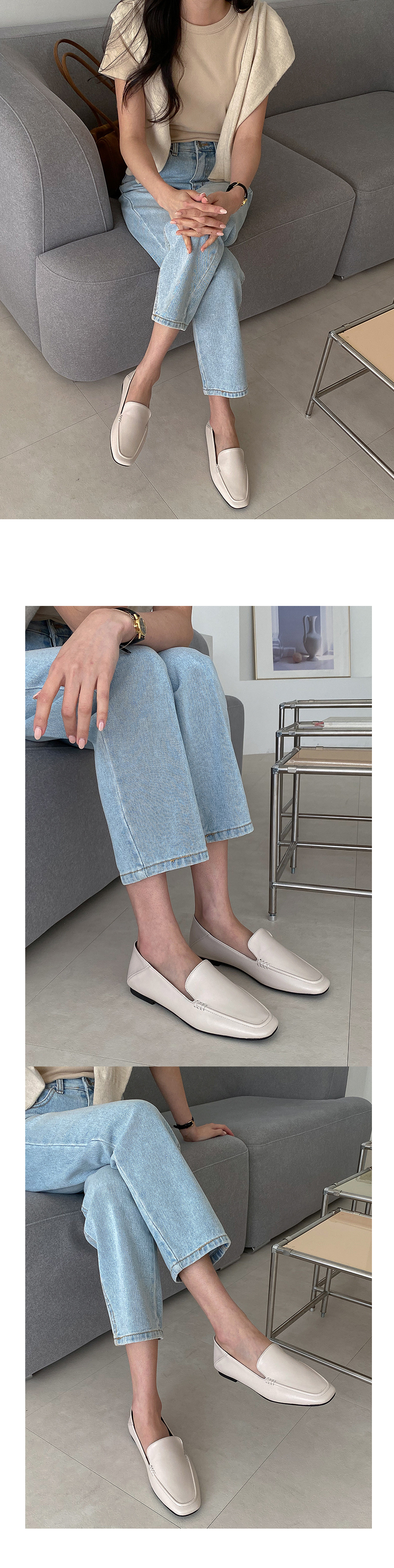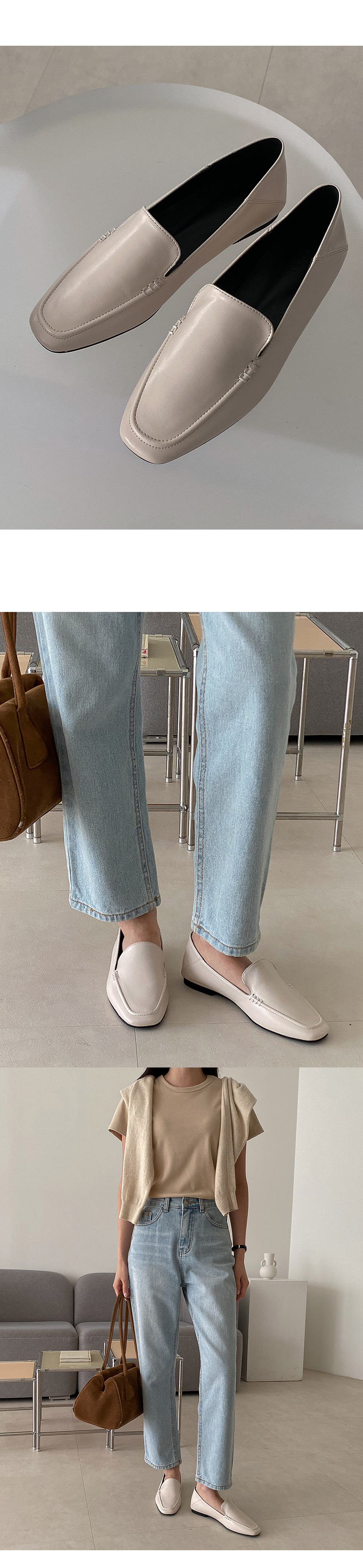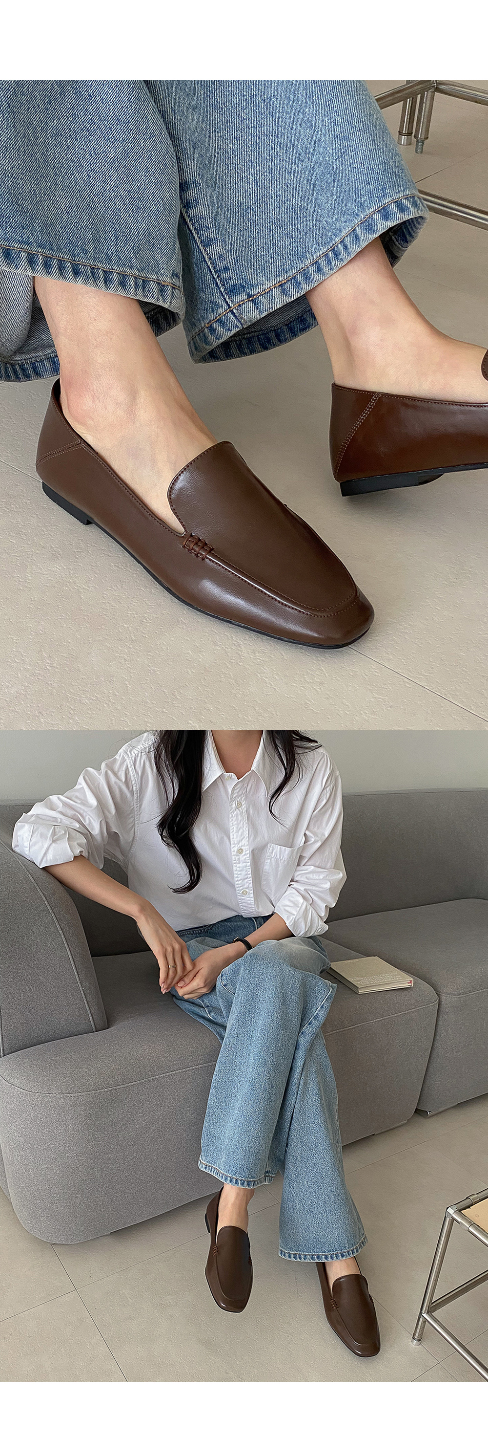 디안느 스퀘어 사이드 스티치 클래식 낮은굽 플랫 로퍼