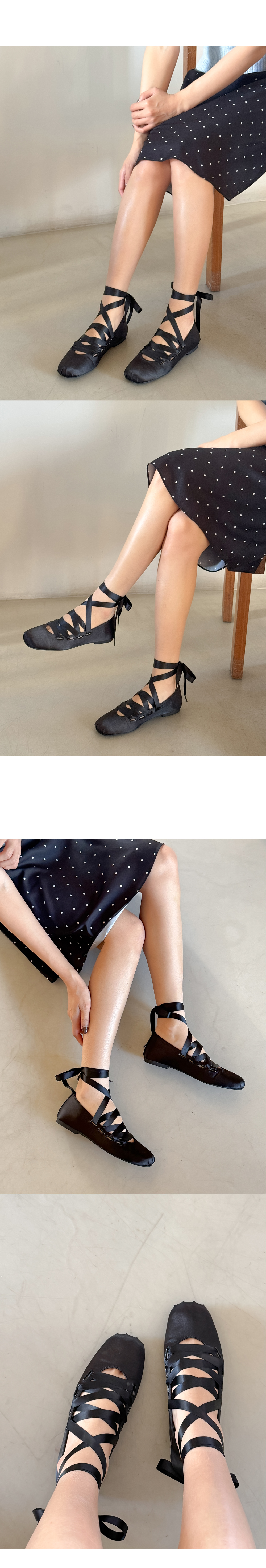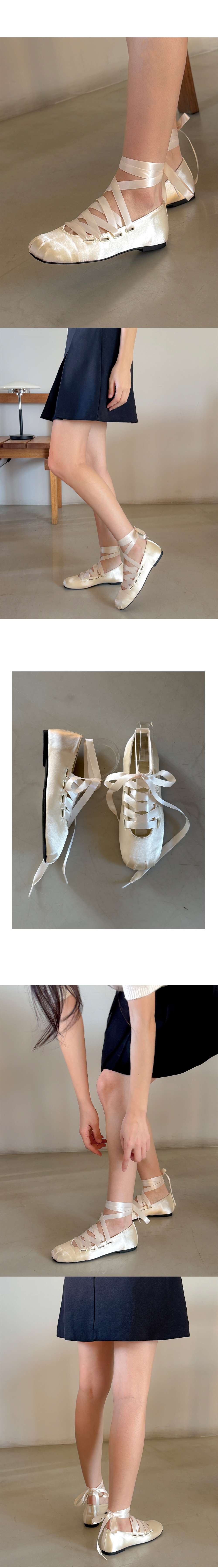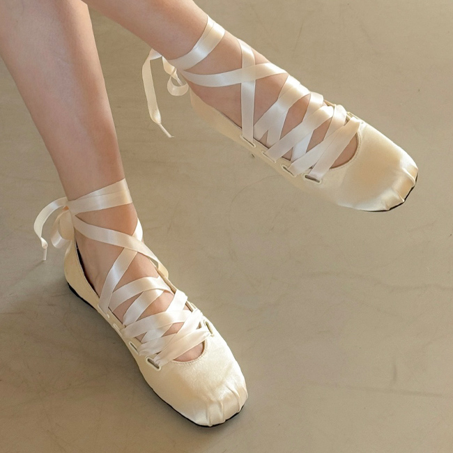 리나 러블리 발레코어 새틴 리본끈 레이스업 플랫슈즈