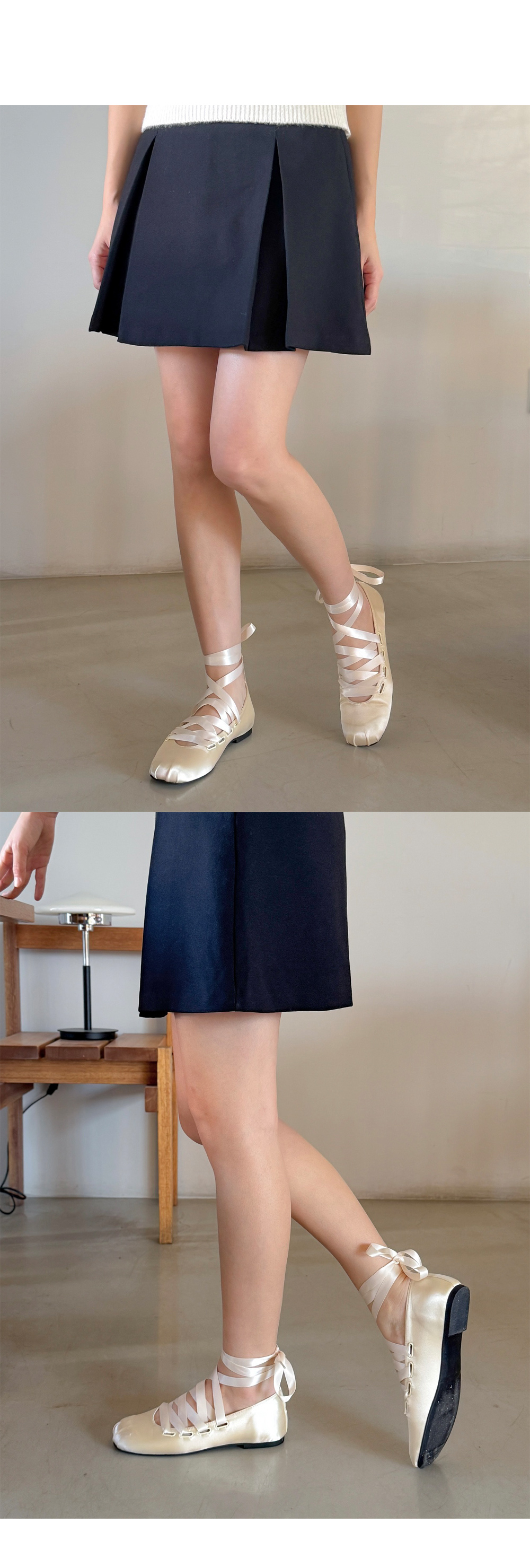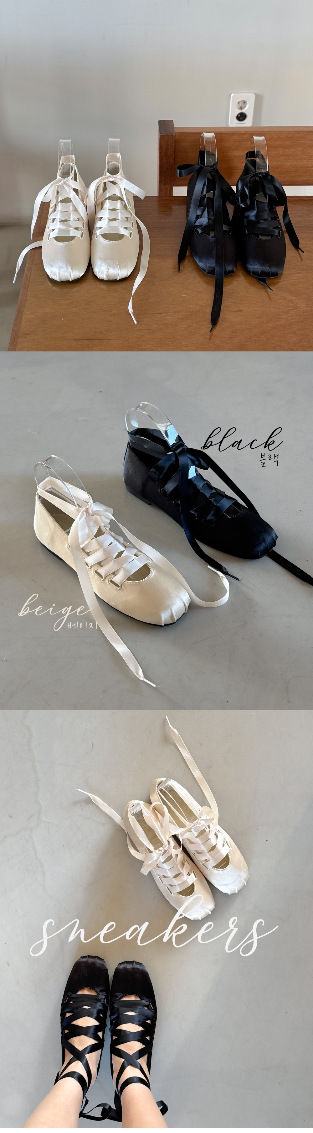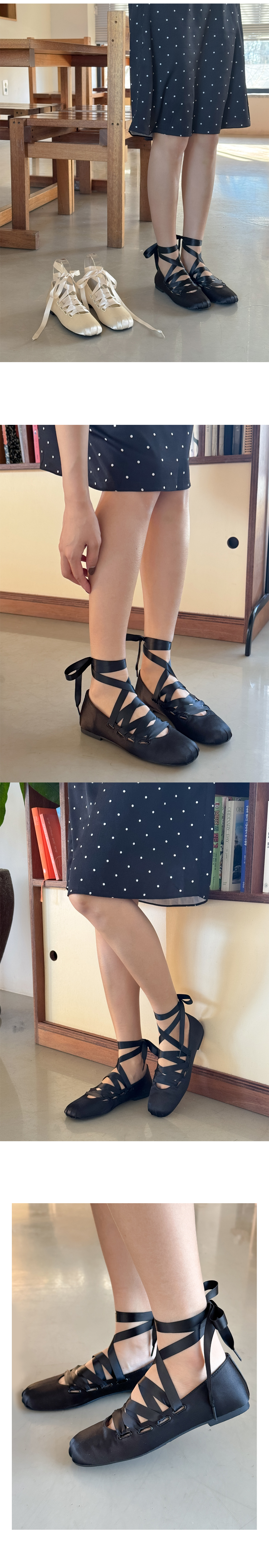 리나 러블리 발레코어 새틴 리본끈 레이스업 플랫슈즈
