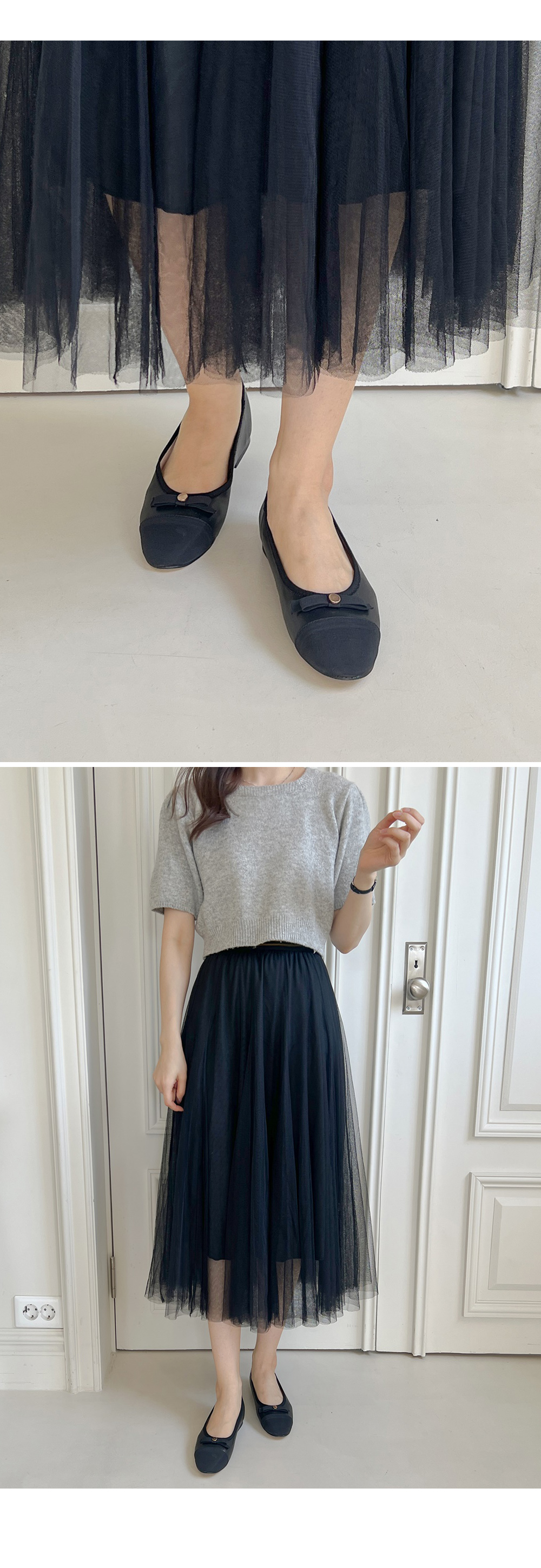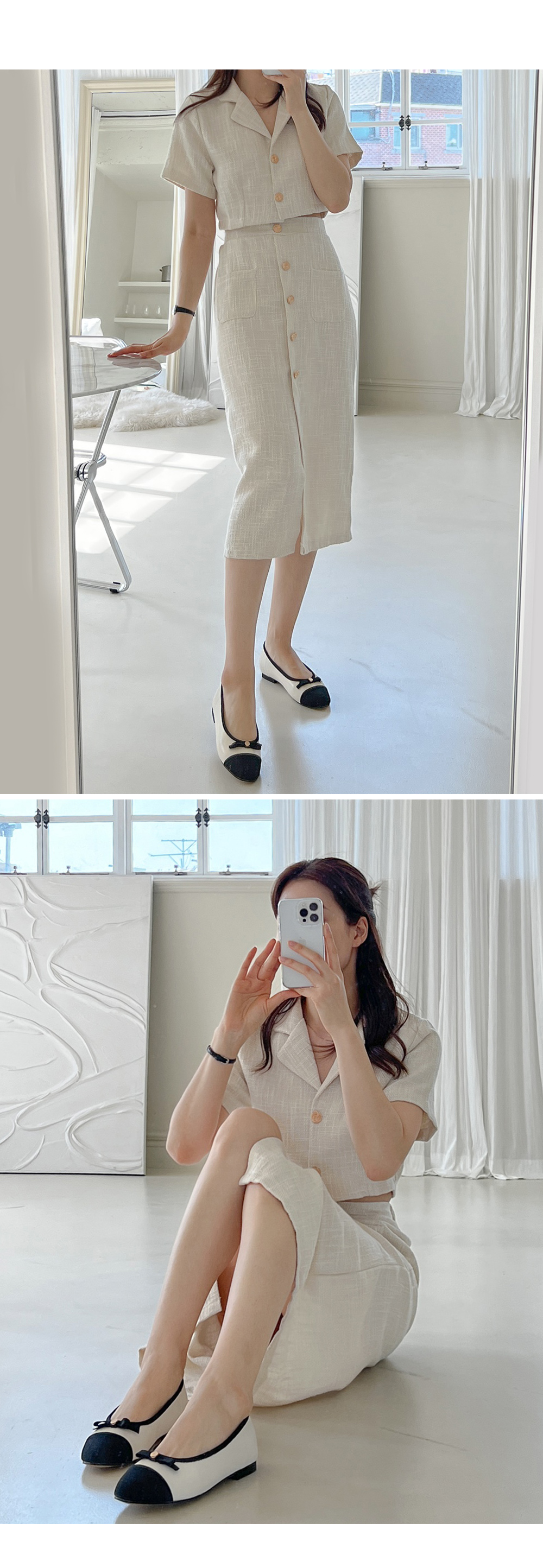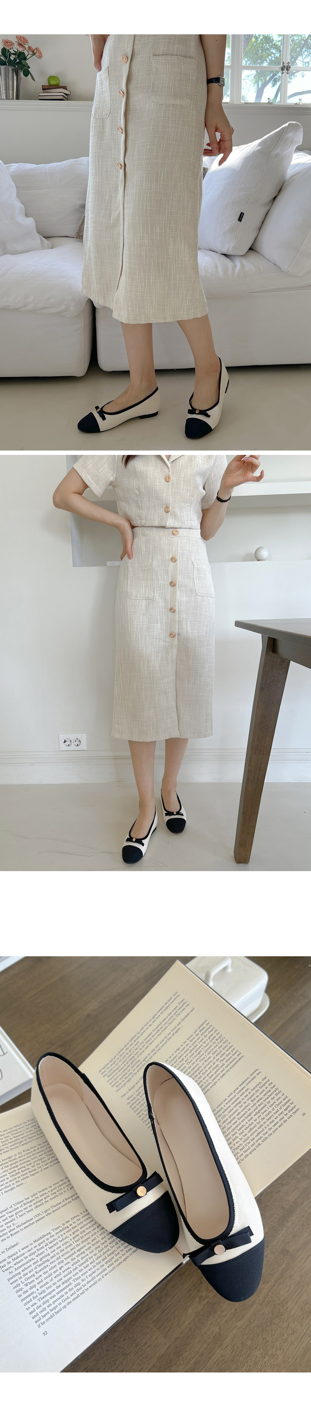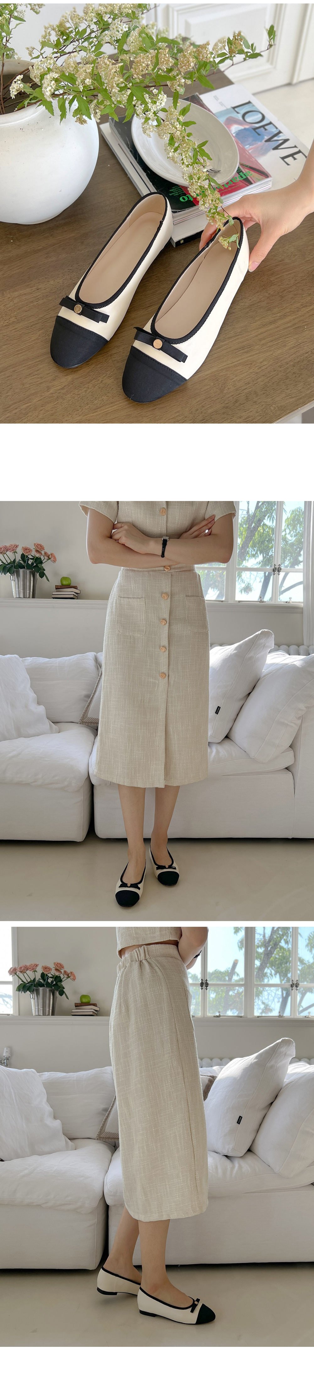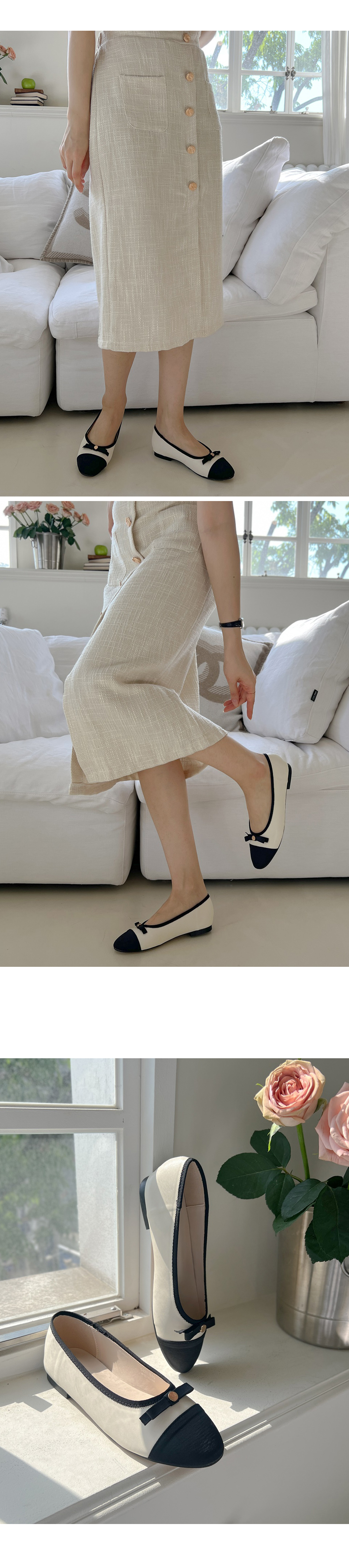 모니아 콤비 투톤 골드버튼 리본 플랫슈즈