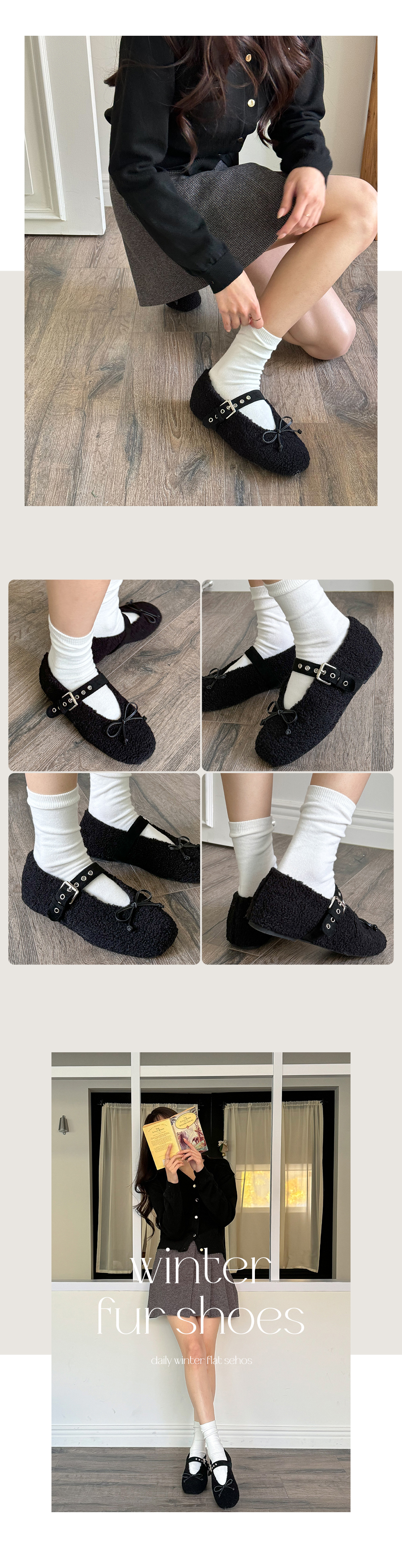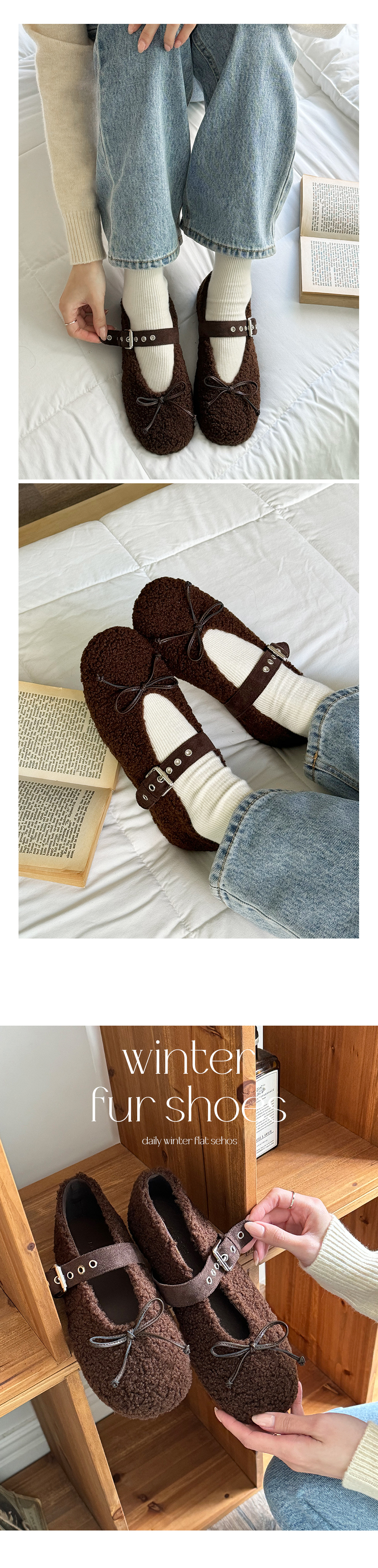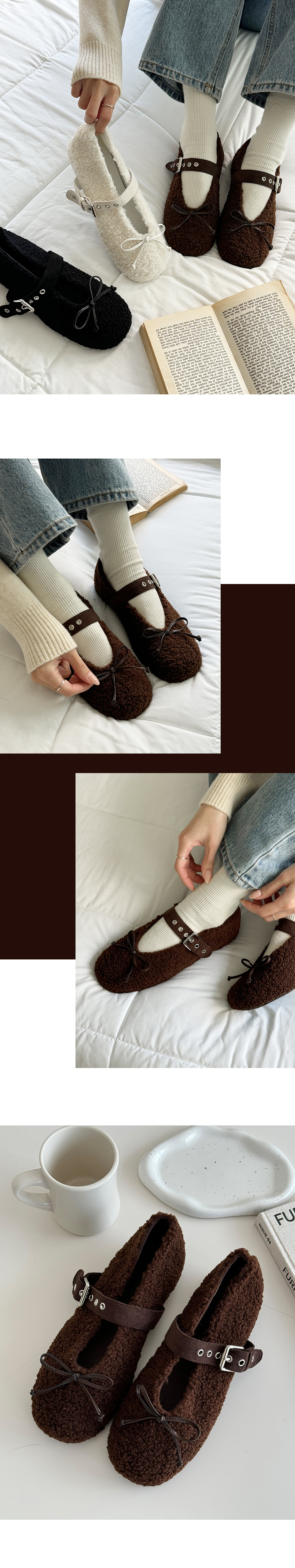 아일렛 뽀글이 양털 버클 메리제인 털단화 플랫슈즈