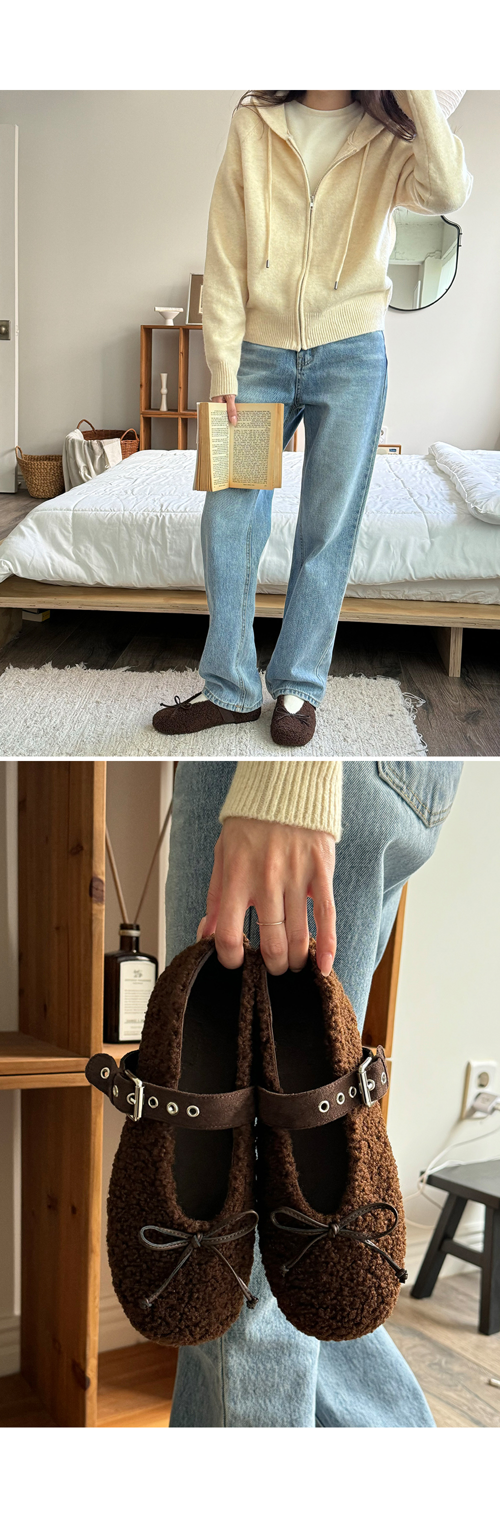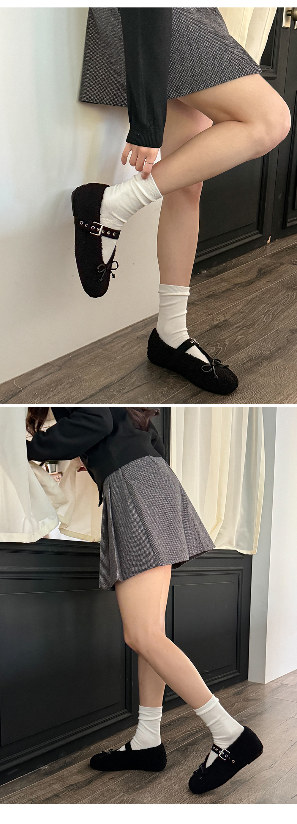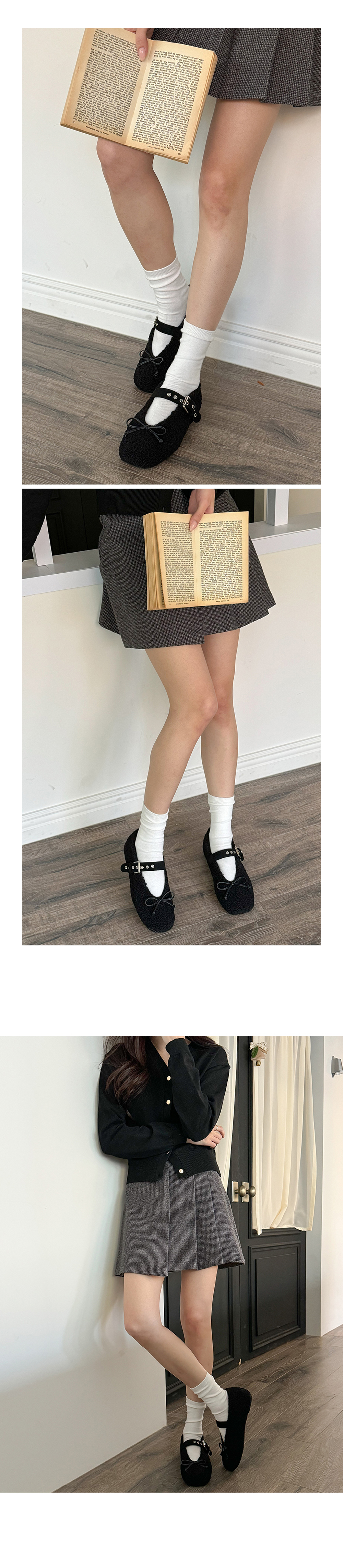 아일렛 뽀글이 양털 버클 메리제인 털단화 플랫슈즈