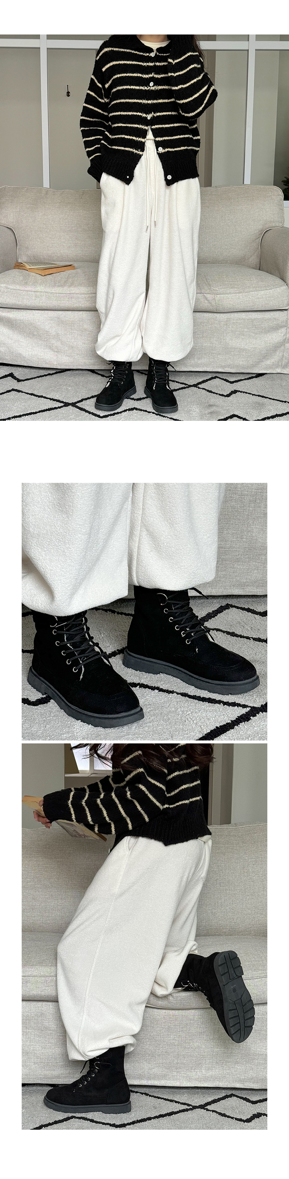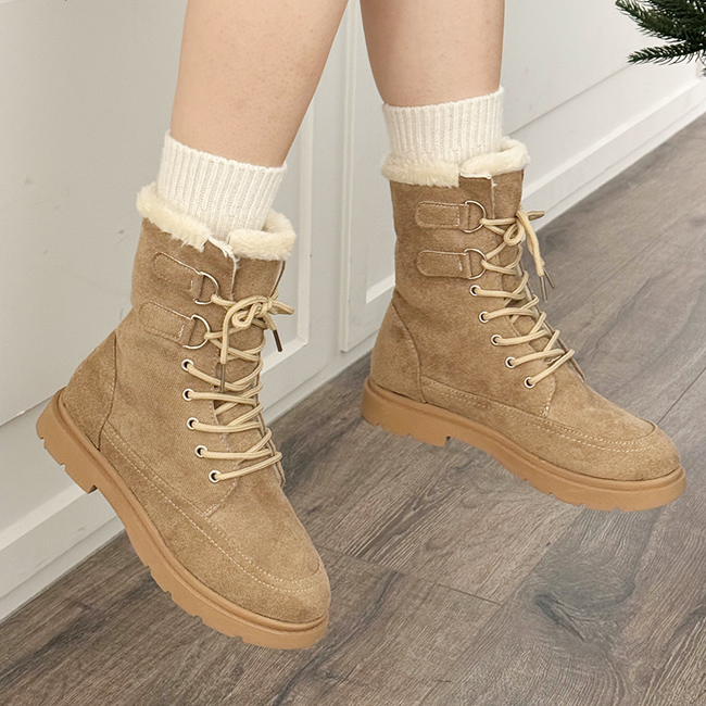 파우다 스웨이드 털안감 레이스업 통굽 워커 앵클부츠