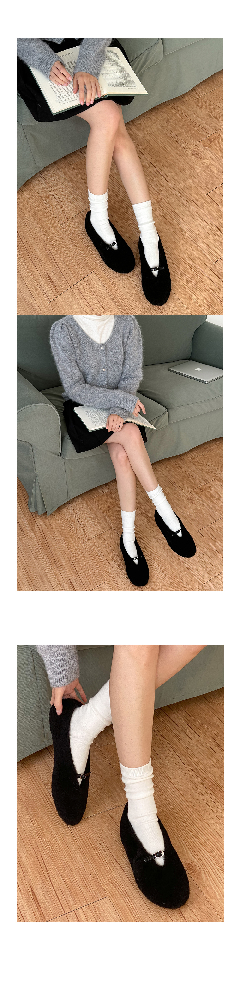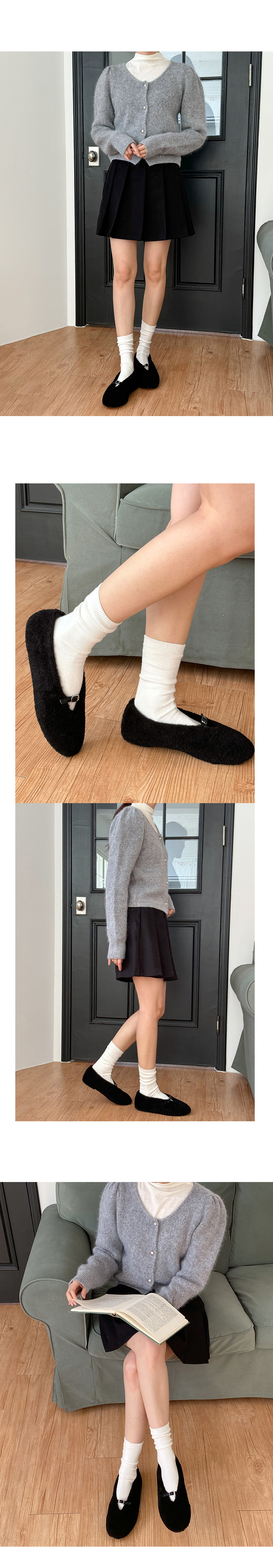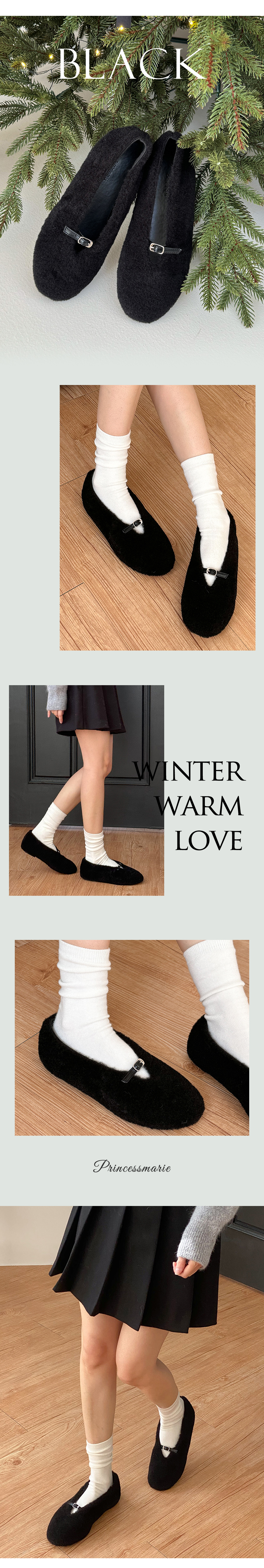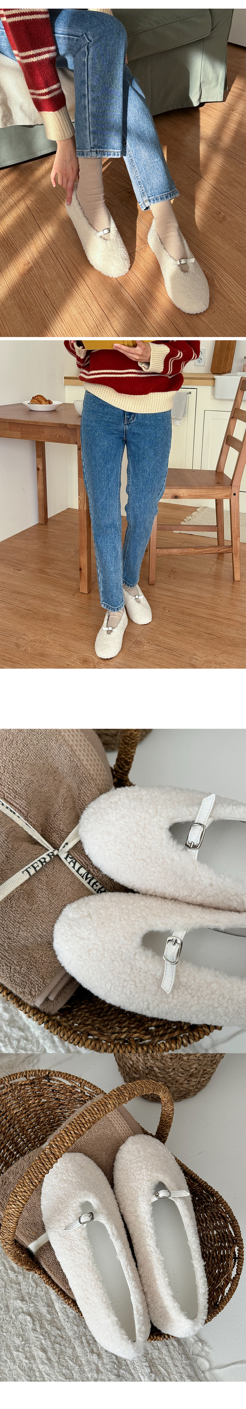 몽그루 뽀글이 양털 미니 버클 메리제인 털단화 플랫슈즈