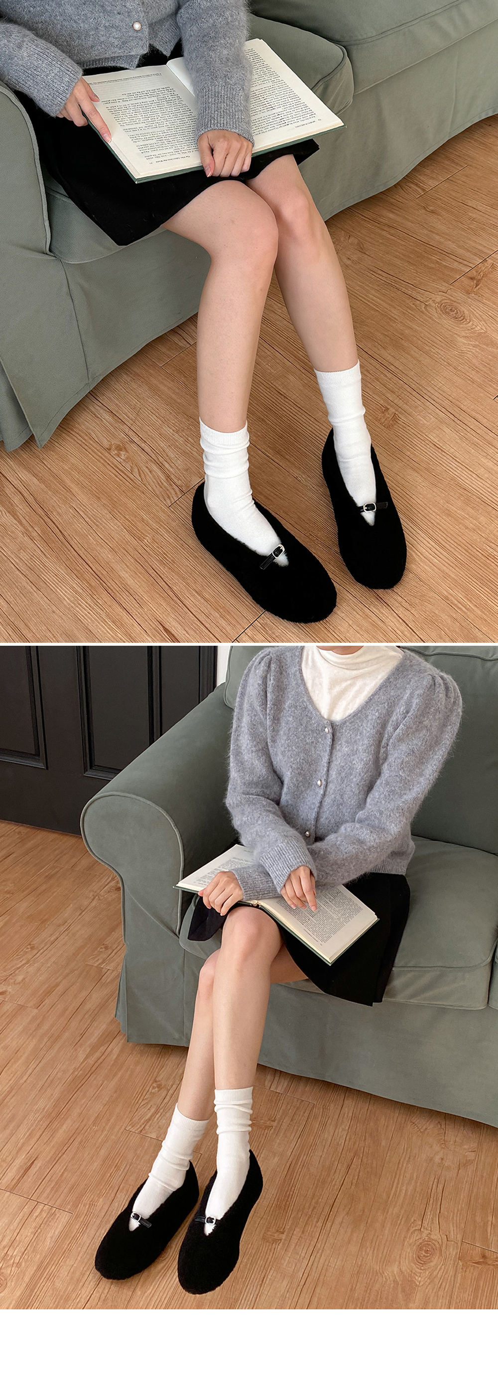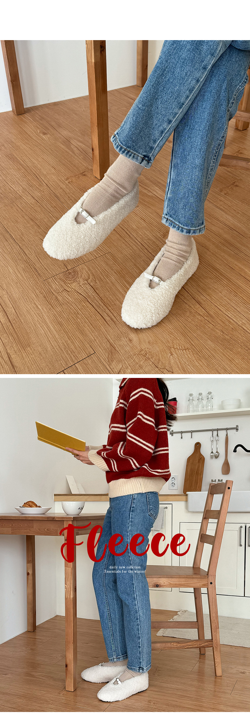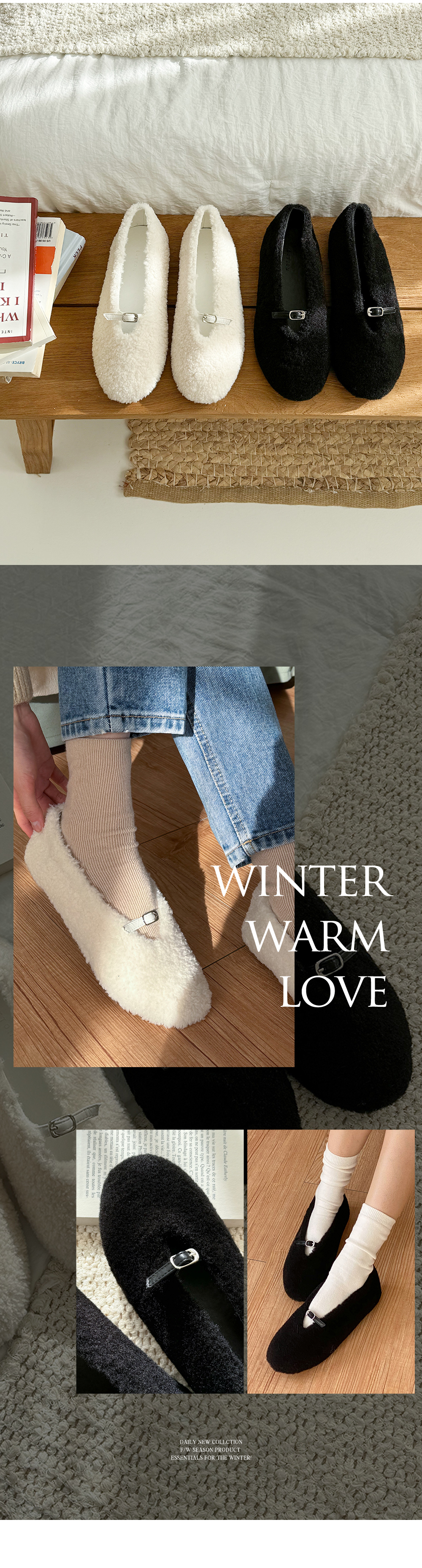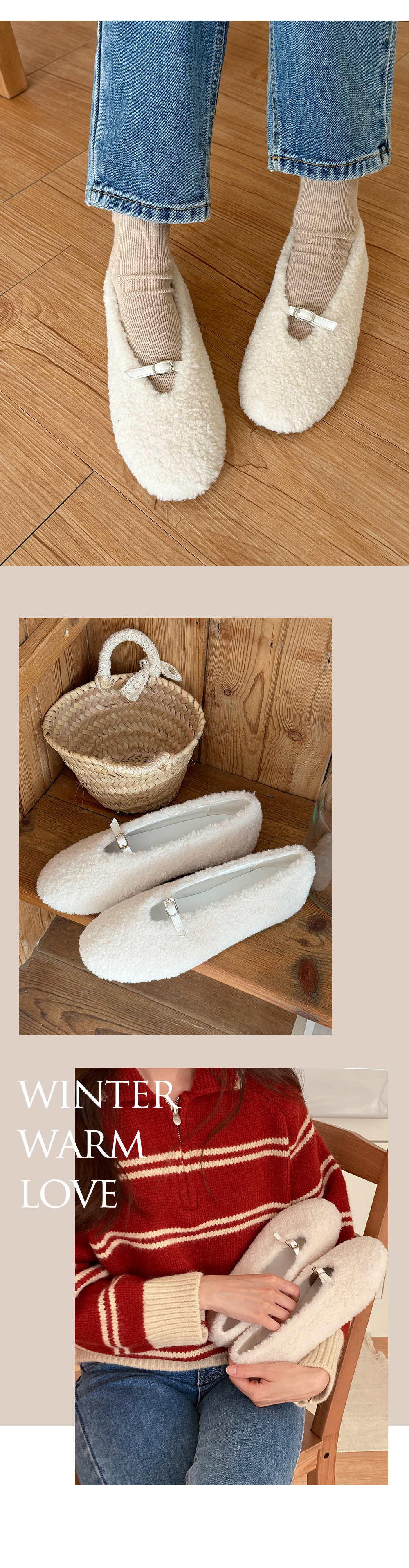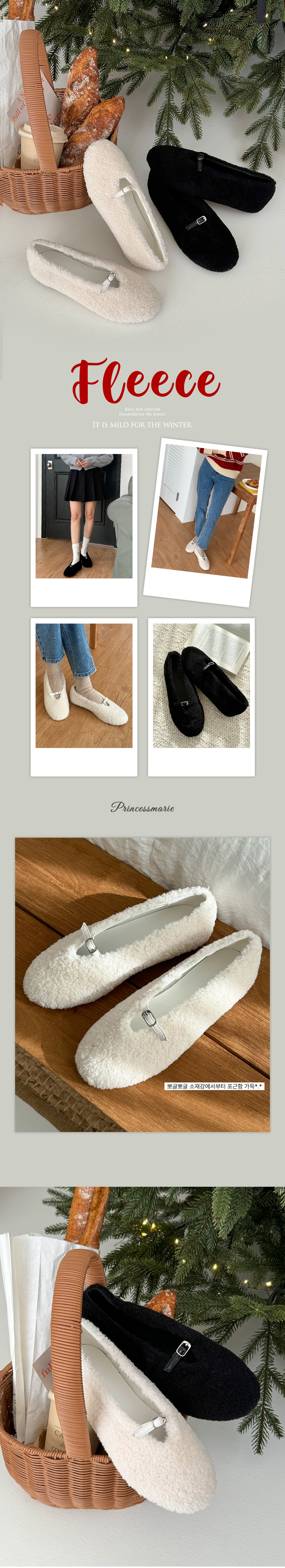 몽그루 뽀글이 양털 미니 버클 메리제인 털단화 플랫슈즈