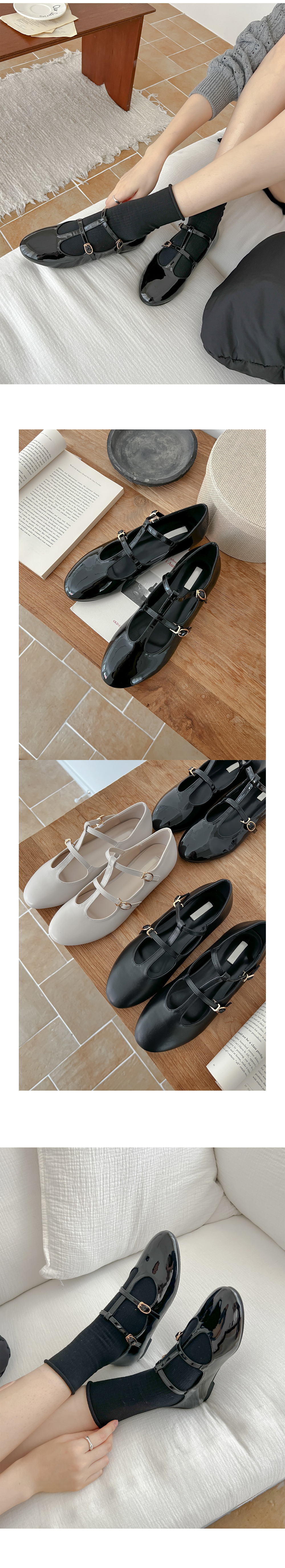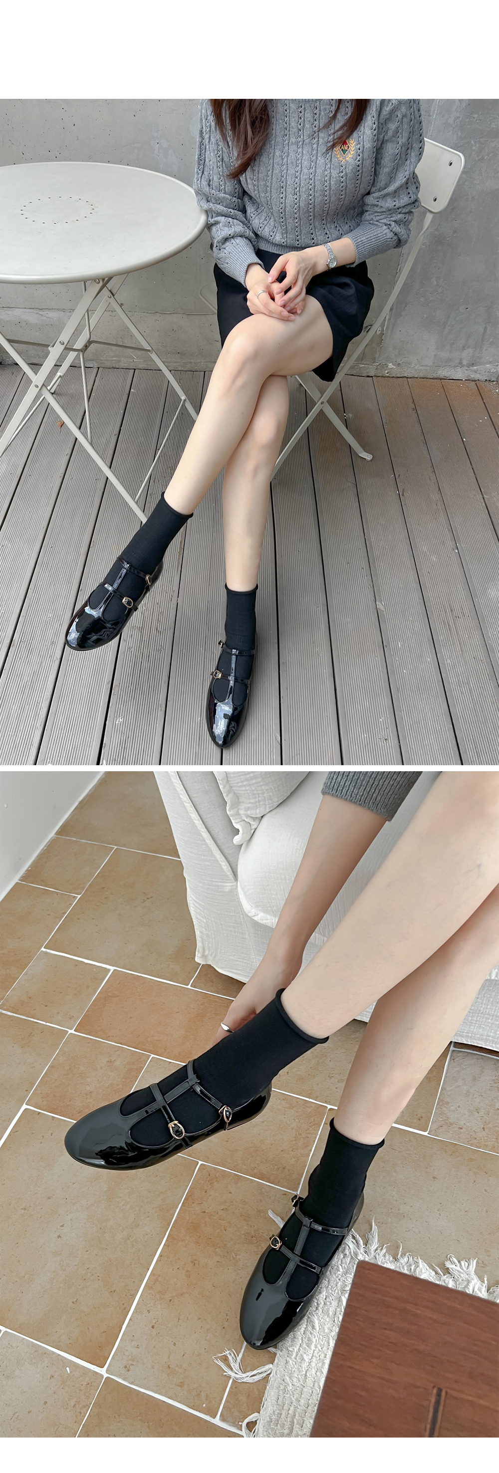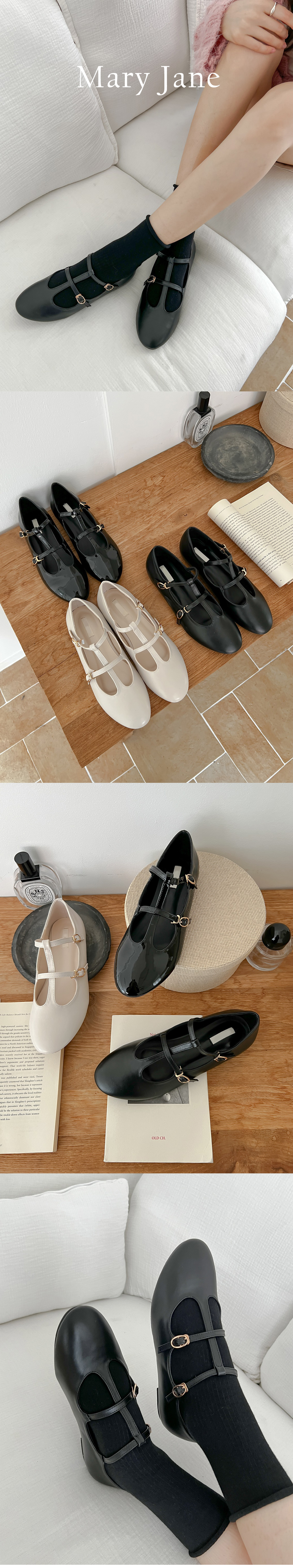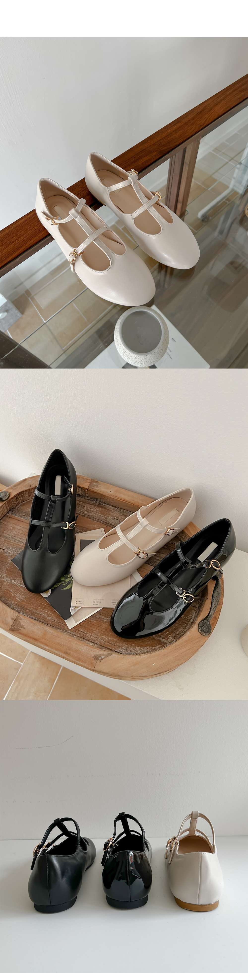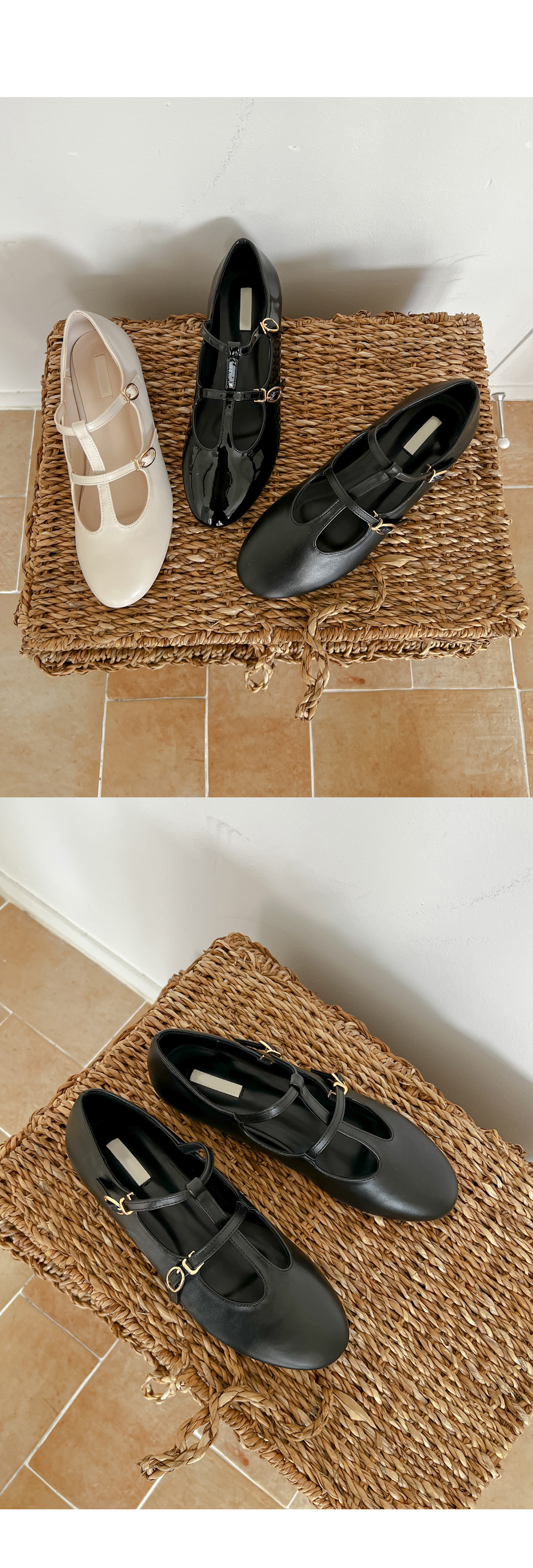 티로이 에나멜 투 버클 메리제인 플랫슈즈