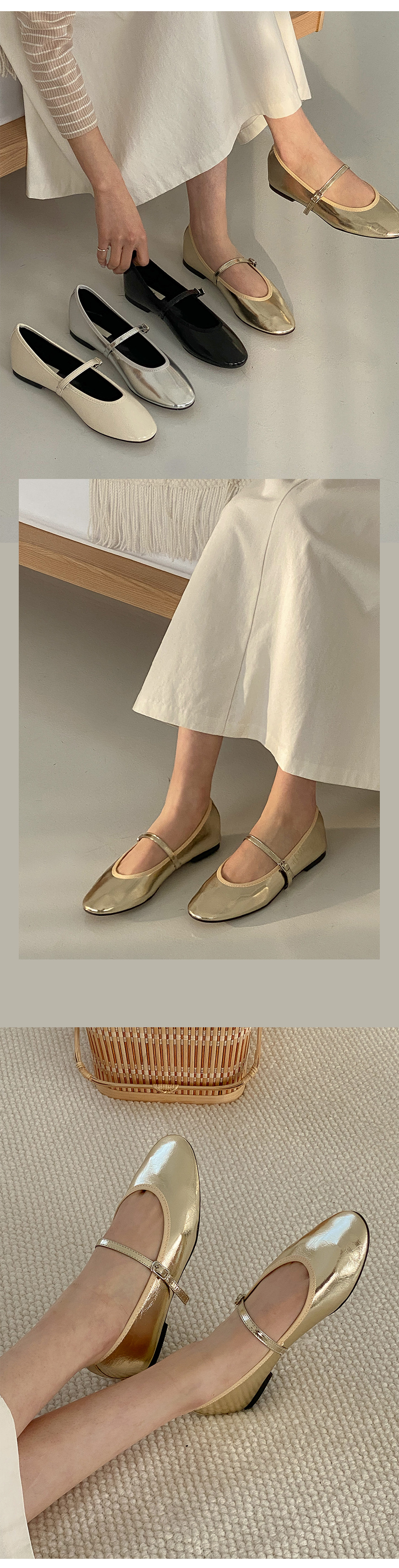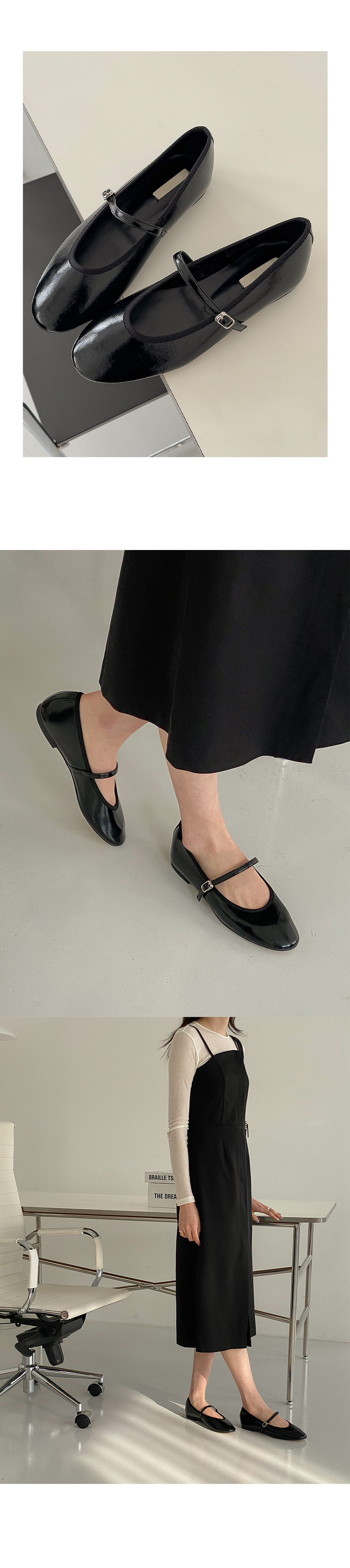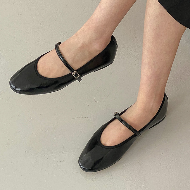 크랙 크링클 둥근코 메리제인 플랫슈즈