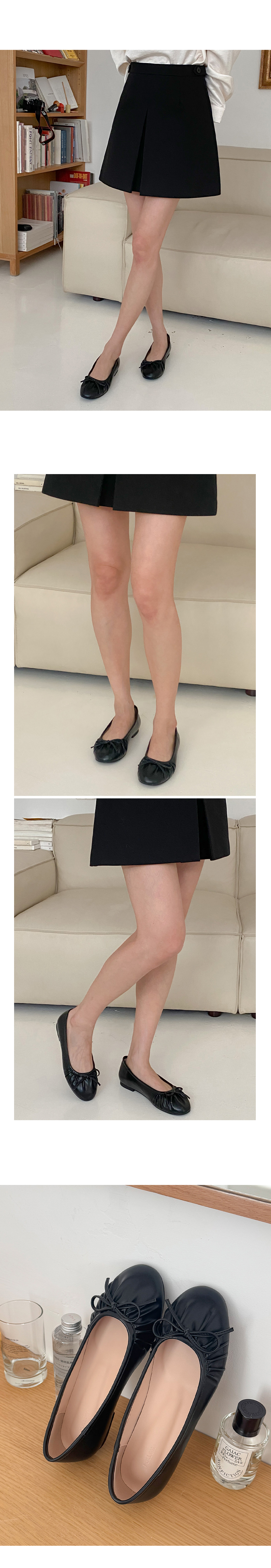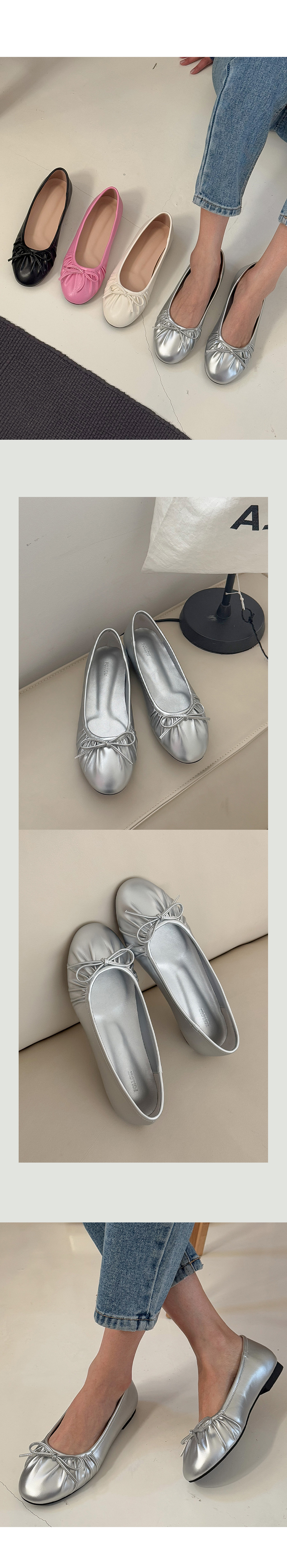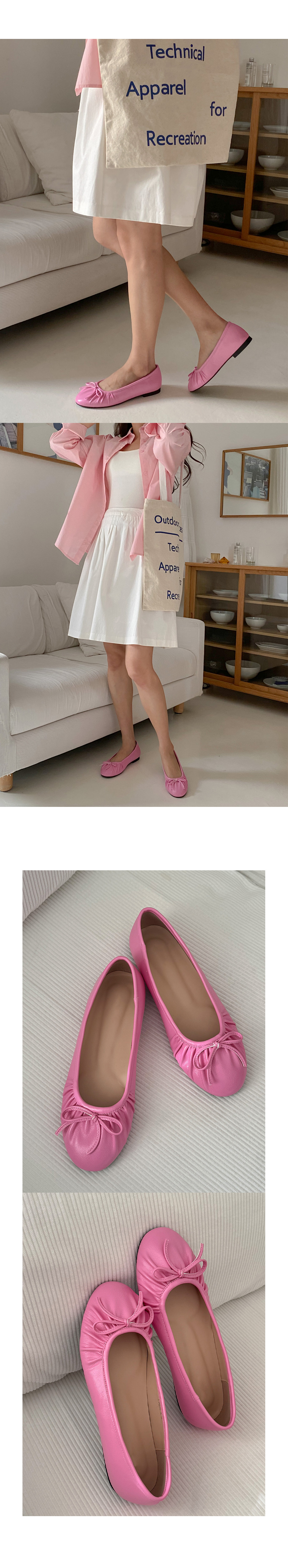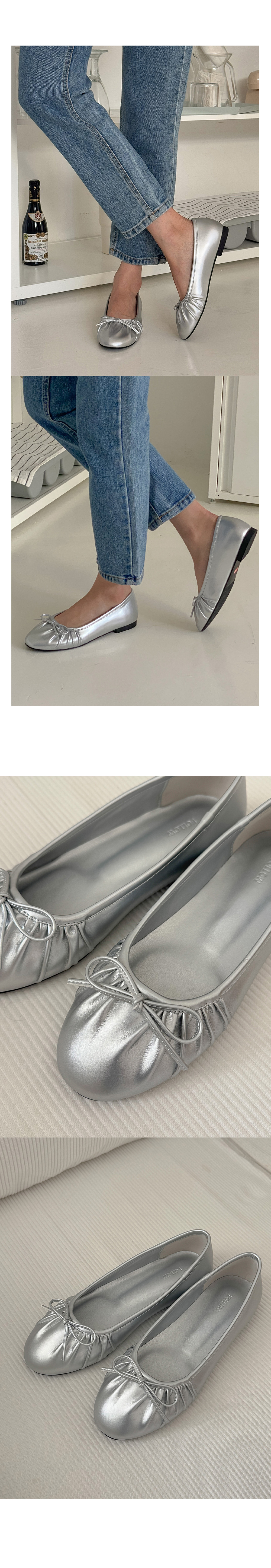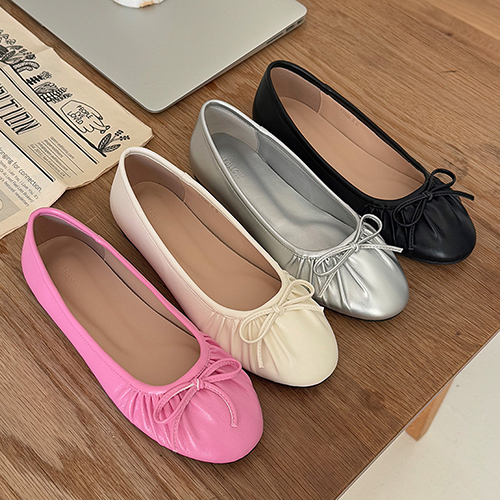 아몬드 말랑 주름 셔링 쿠션중창 리본 플랫슈즈