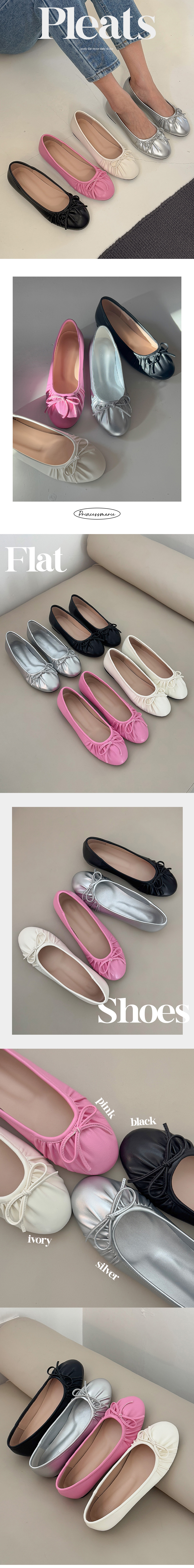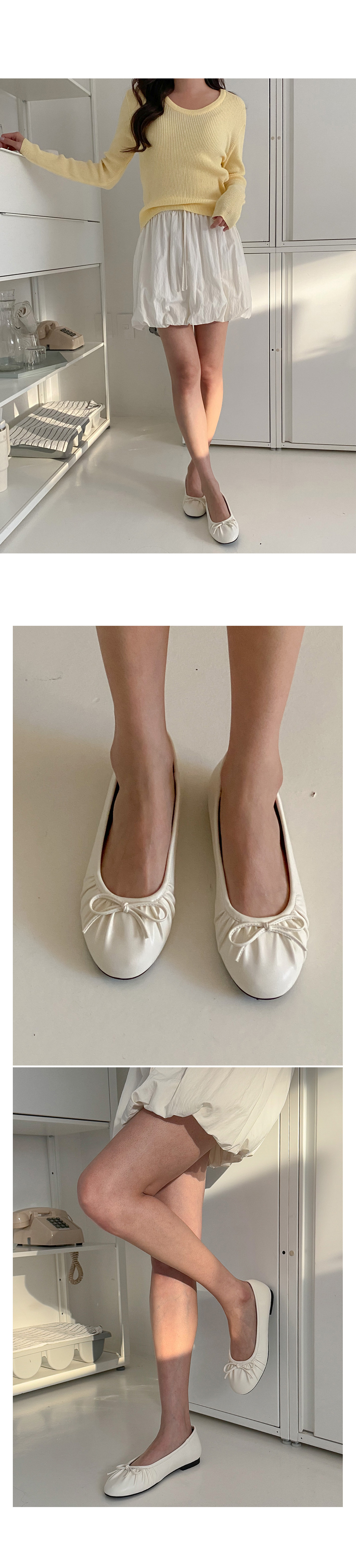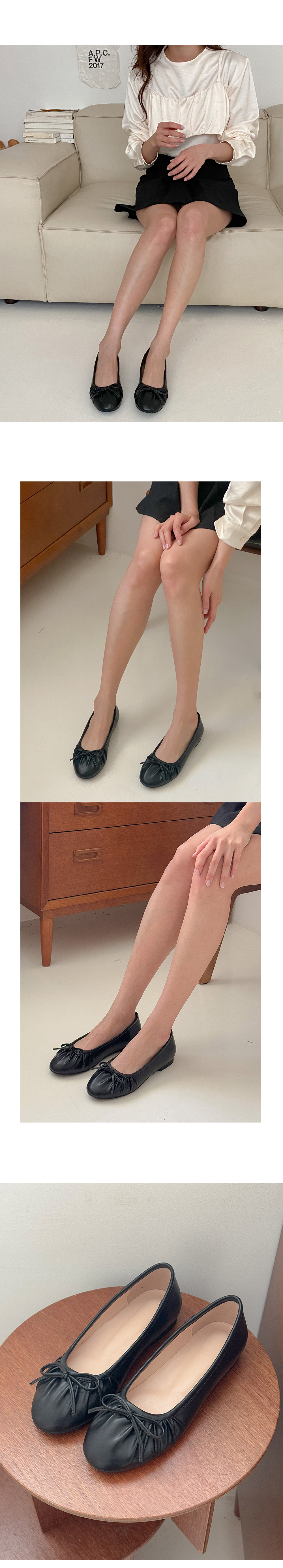 아몬드 말랑 주름 셔링 쿠션중창 리본 플랫슈즈